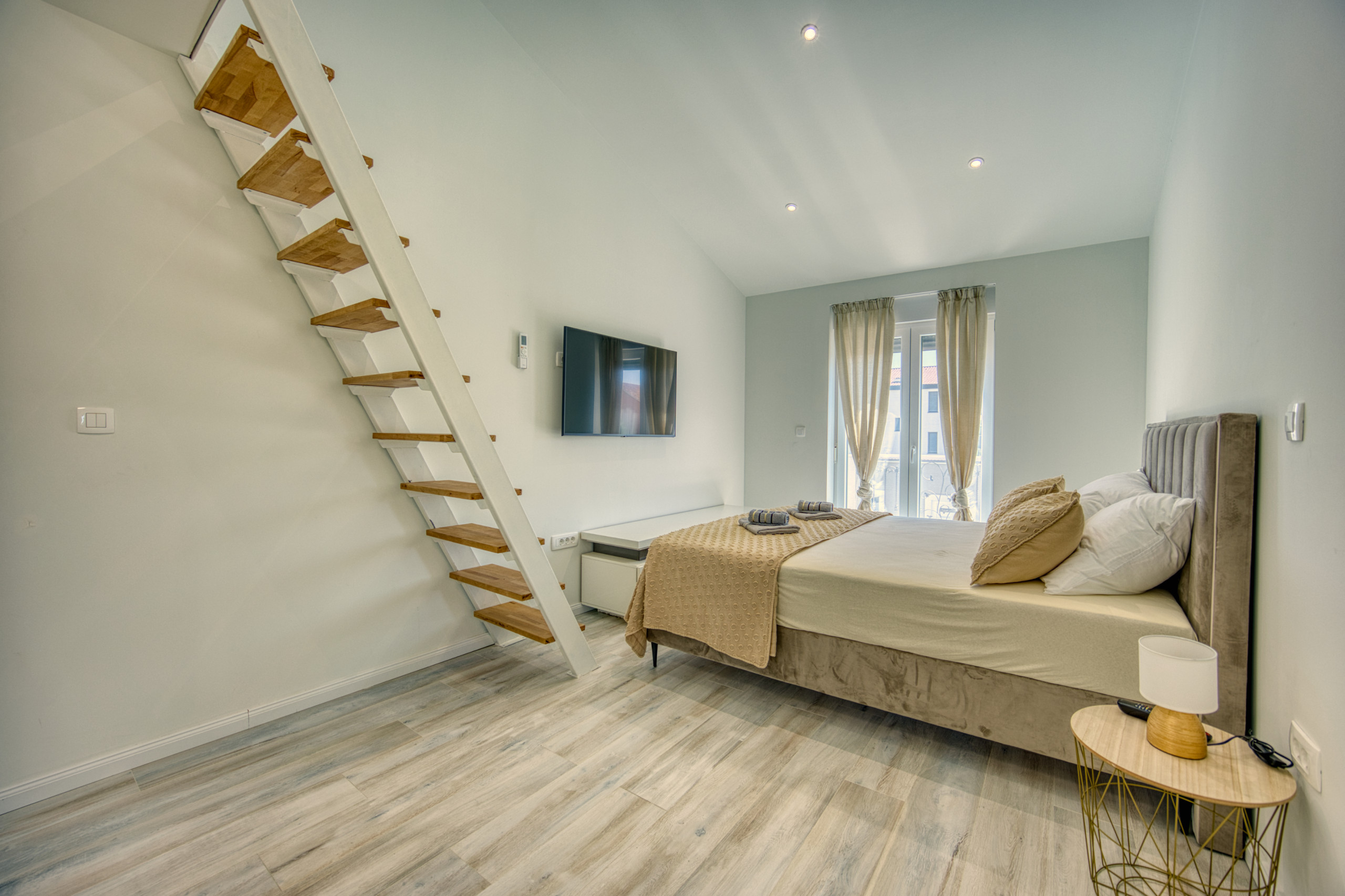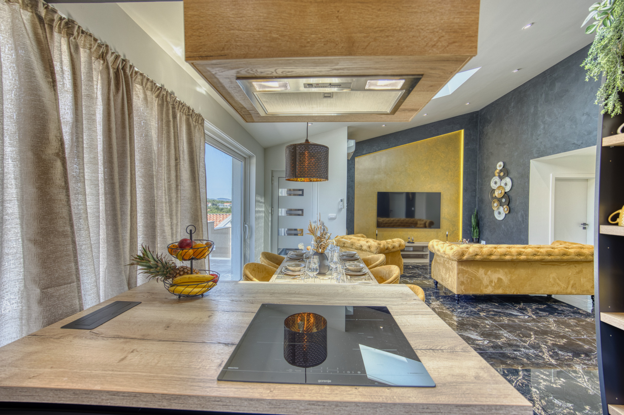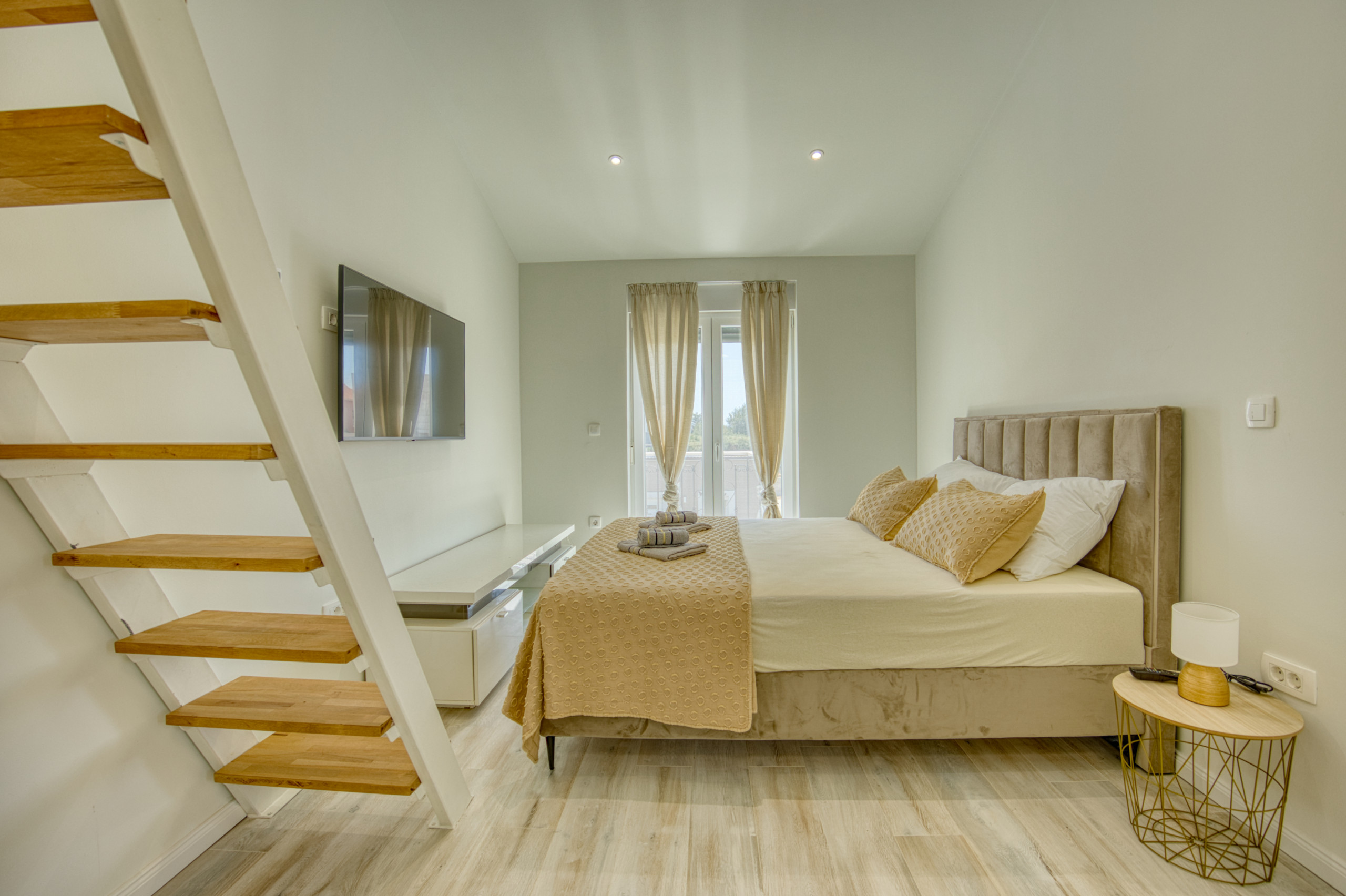 Das Apartment im ersten Stock ist über eine Außentreppe zugänglich. Man gelangt zunächst auf einen wunderschönen Balkon mit einer entspannenden Sitzgelegenheit, und die Aussicht ist sehr offen und absolut perfekt für einen Morgenkaffee oder ein Abendgetränk. Das Innere wird Ihnen den Atem rauben und wirkt grenzenlos. Die Einrichtung des Apartments ist schlichtweg atemberaubend und mit luxuriösen Details und Verzierungen gefüllt. Es gibt drei weitere Schlafzimmer, zwei davon mit Betten in wunderbaren Galerien, sowie drei weitere Badezimmer. Mit insgesamt drei Doppelbetten und zwei Einzelbetten in Galerien bietet dieses Apartment bequem Platz für 8 Gäste.