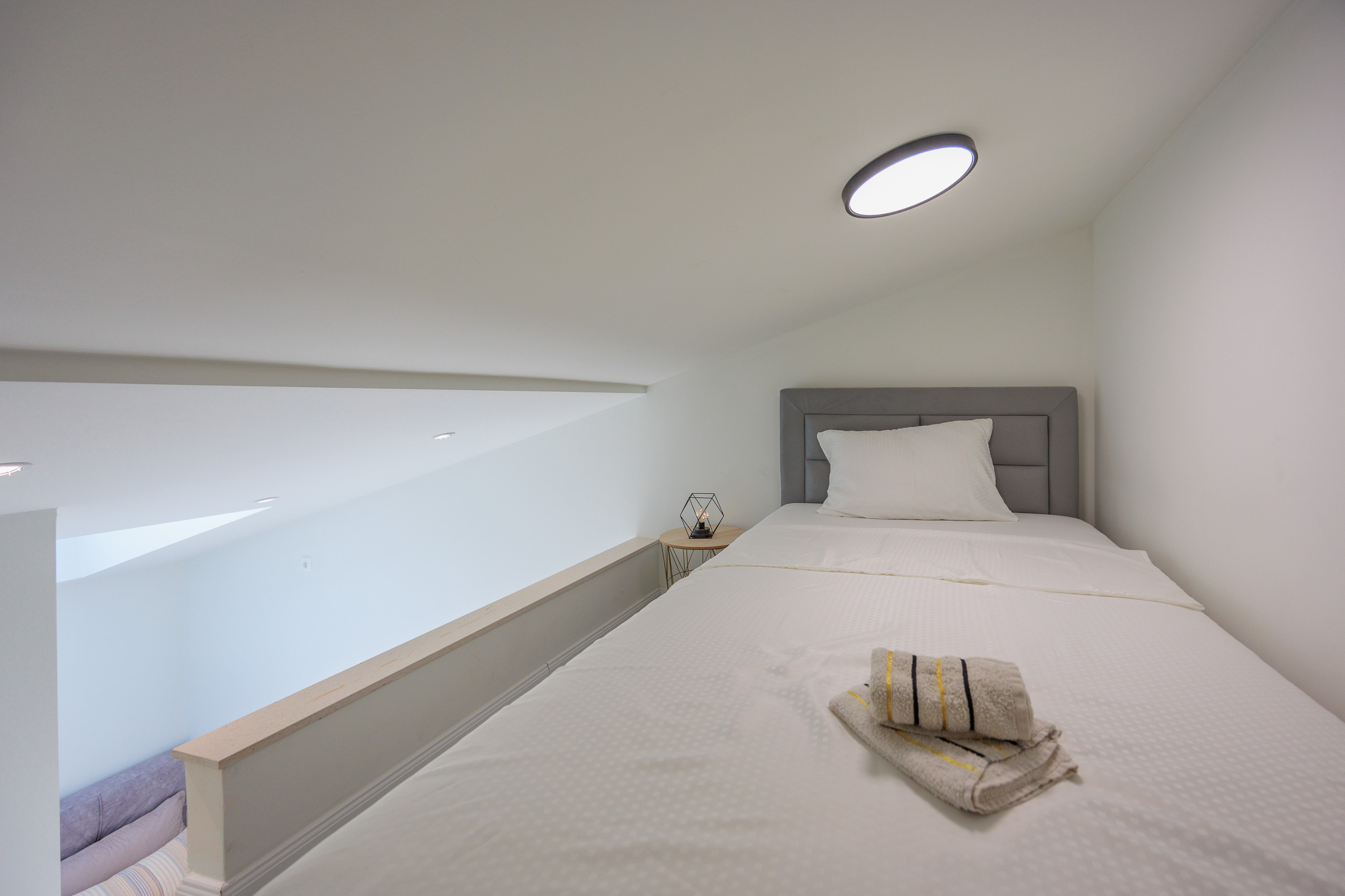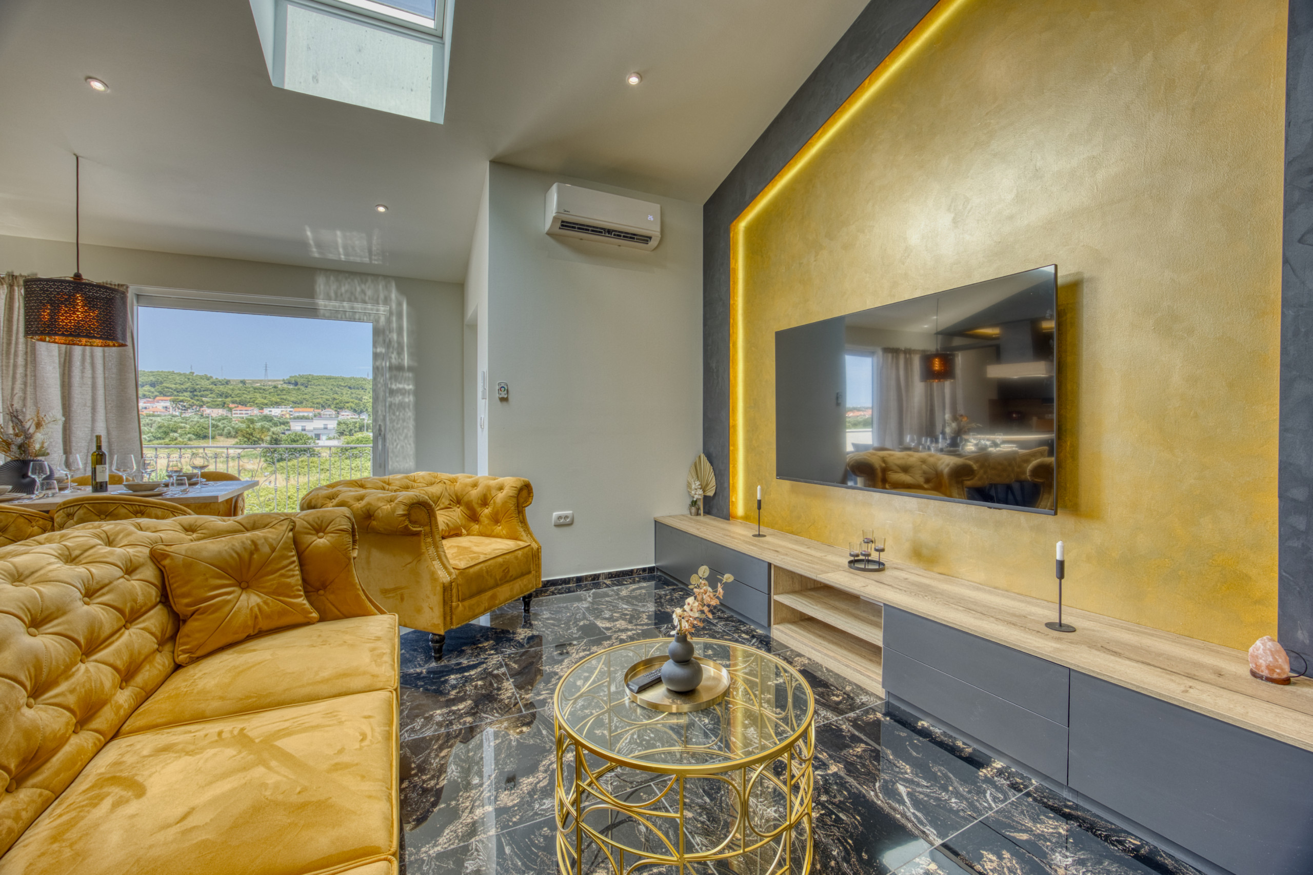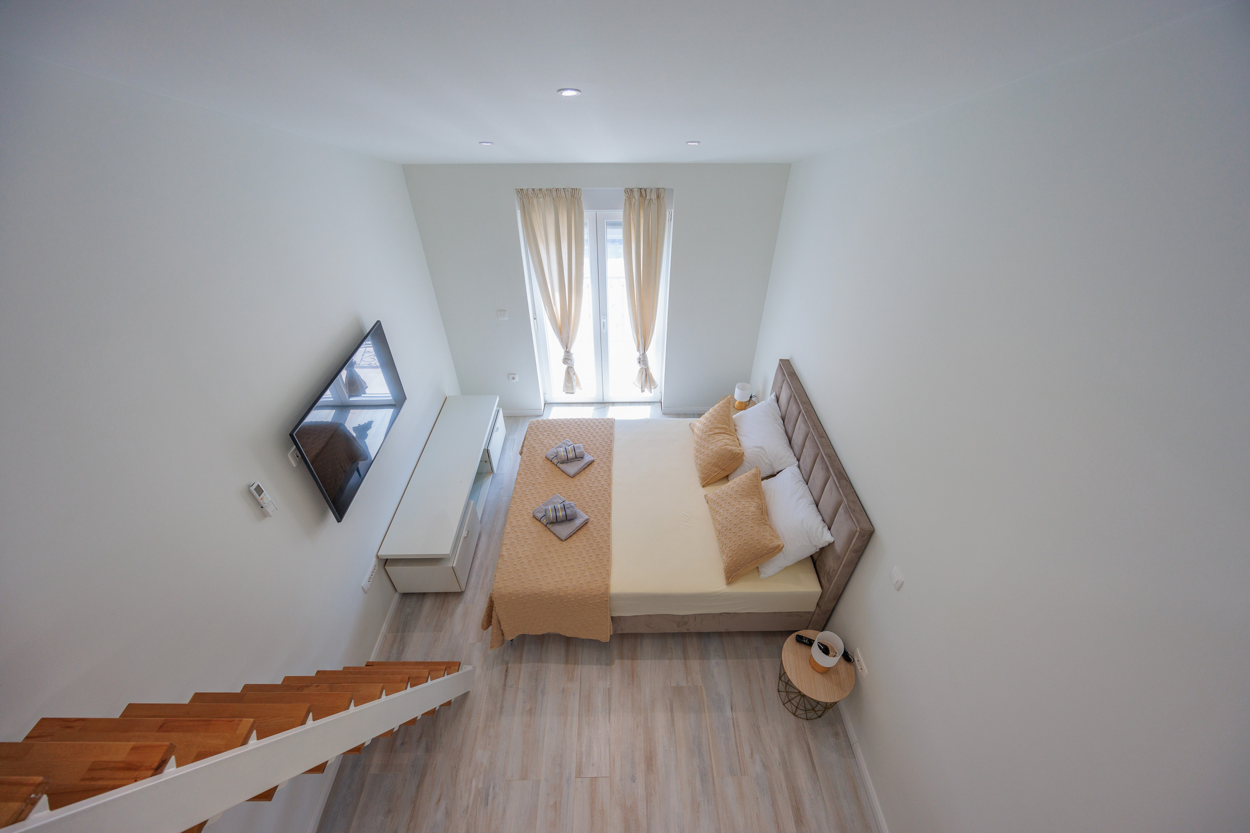 Das Apartment im ersten Stock ist über eine Außentreppe zugänglich. Man gelangt zunächst auf einen wunderschönen Balkon mit einer entspannenden Sitzgelegenheit, und die Aussicht ist sehr offen und absolut perfekt für einen Morgenkaffee oder ein Abendgetränk. Das Innere wird Ihnen den Atem rauben und wirkt grenzenlos. Die Einrichtung des Apartments ist schlichtweg atemberaubend und mit luxuriösen Details und Verzierungen gefüllt. Es gibt drei weitere Schlafzimmer, zwei davon mit Betten in wunderbaren Galerien, sowie drei weitere Badezimmer. Mit insgesamt drei Doppelbetten und zwei Einzelbetten in Galerien bietet dieses Apartment bequem Platz für 8 Gäste.