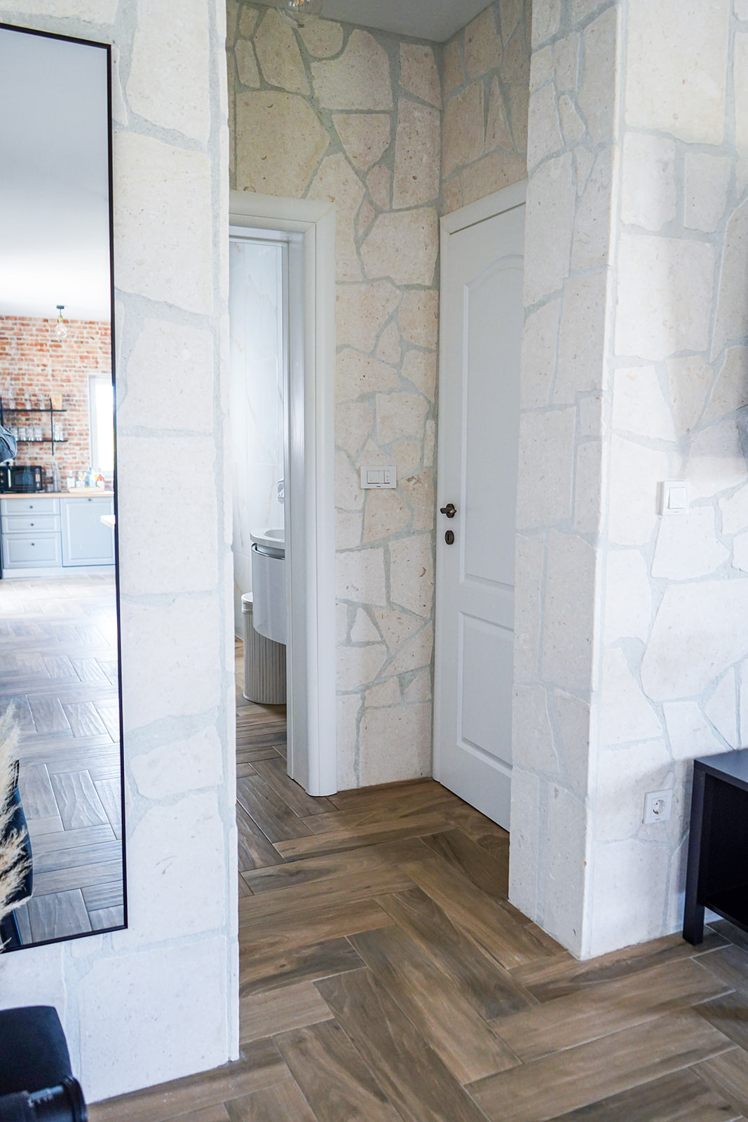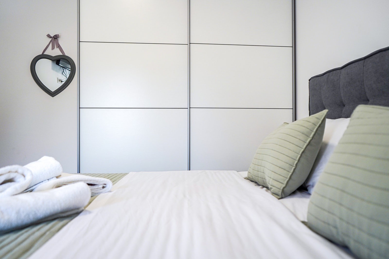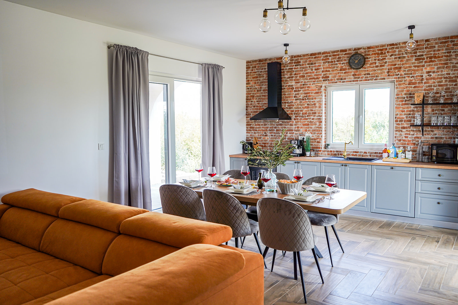 Das Haus bietet Platz für bis zu sechs Personen und ist ideal für Familien oder kleinere Freundesgruppen. Es verfügt über zwei komfortable Schlafzimmer mit Doppelbetten und Fernsehern sowie ein Schlafsofa im Wohnzimmer für eine zusätzliche Person. Ein drittes Zimmer mit einem Einzelbett befindet sich außerhalb des Haupthauses und hat einen separaten Eingang – perfekt für Gäste, die mehr Privatsphäre wünschen. Die moderne Küche ist vollständig ausgestattet und bietet alles, was Sie zum Kochen benötigen. Das Wohnzimmer mit Kamin und der angrenzende Essbereich schaffen eine gemütliche Atmosphäre für gemeinsame Stunden.