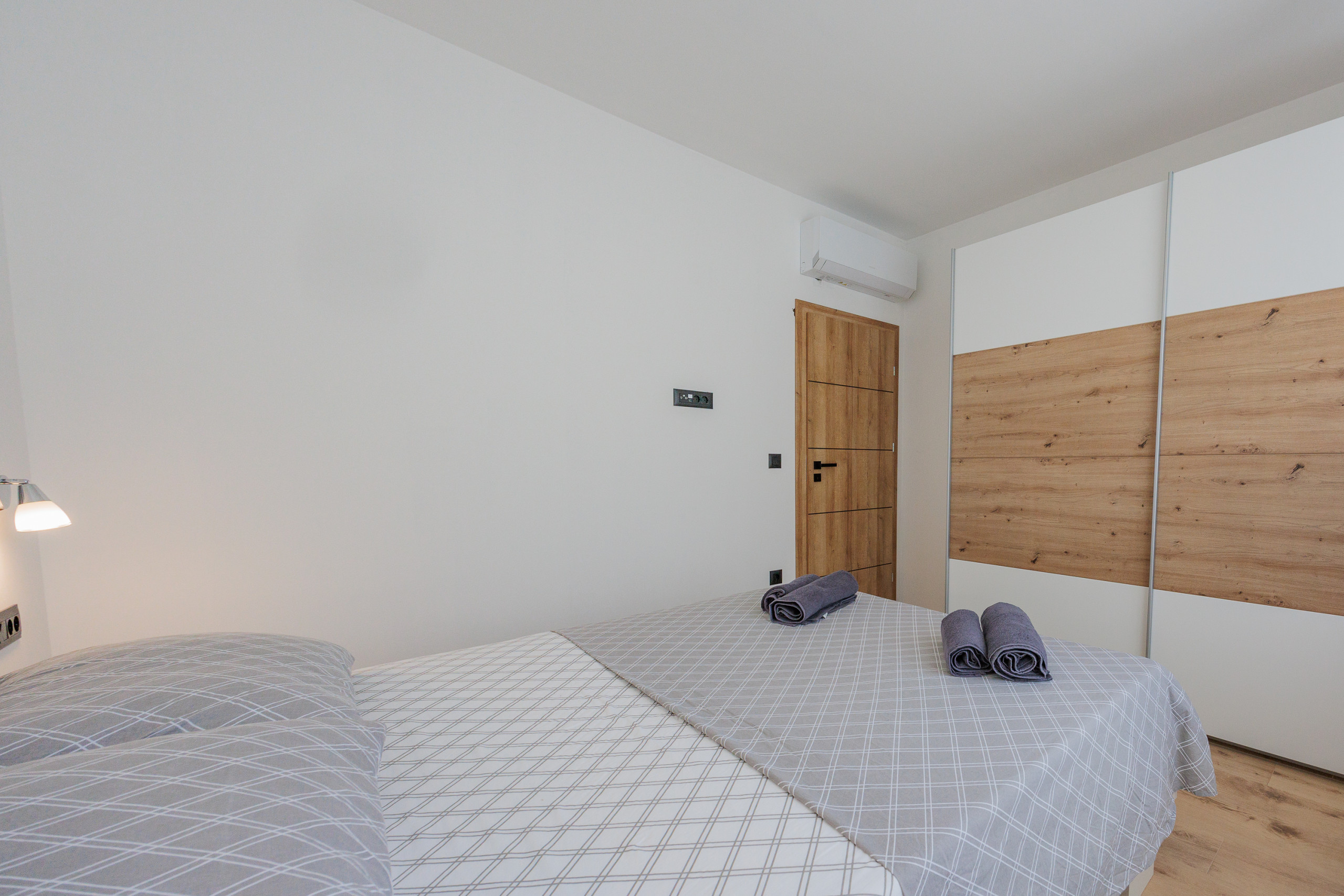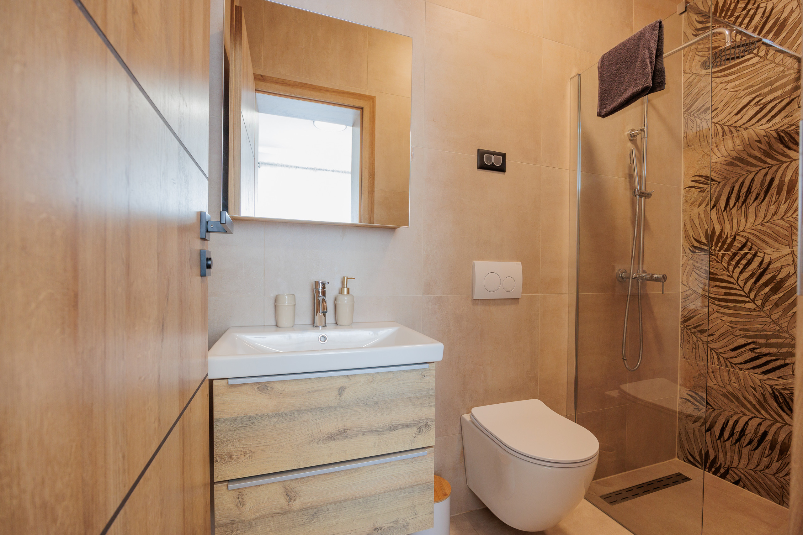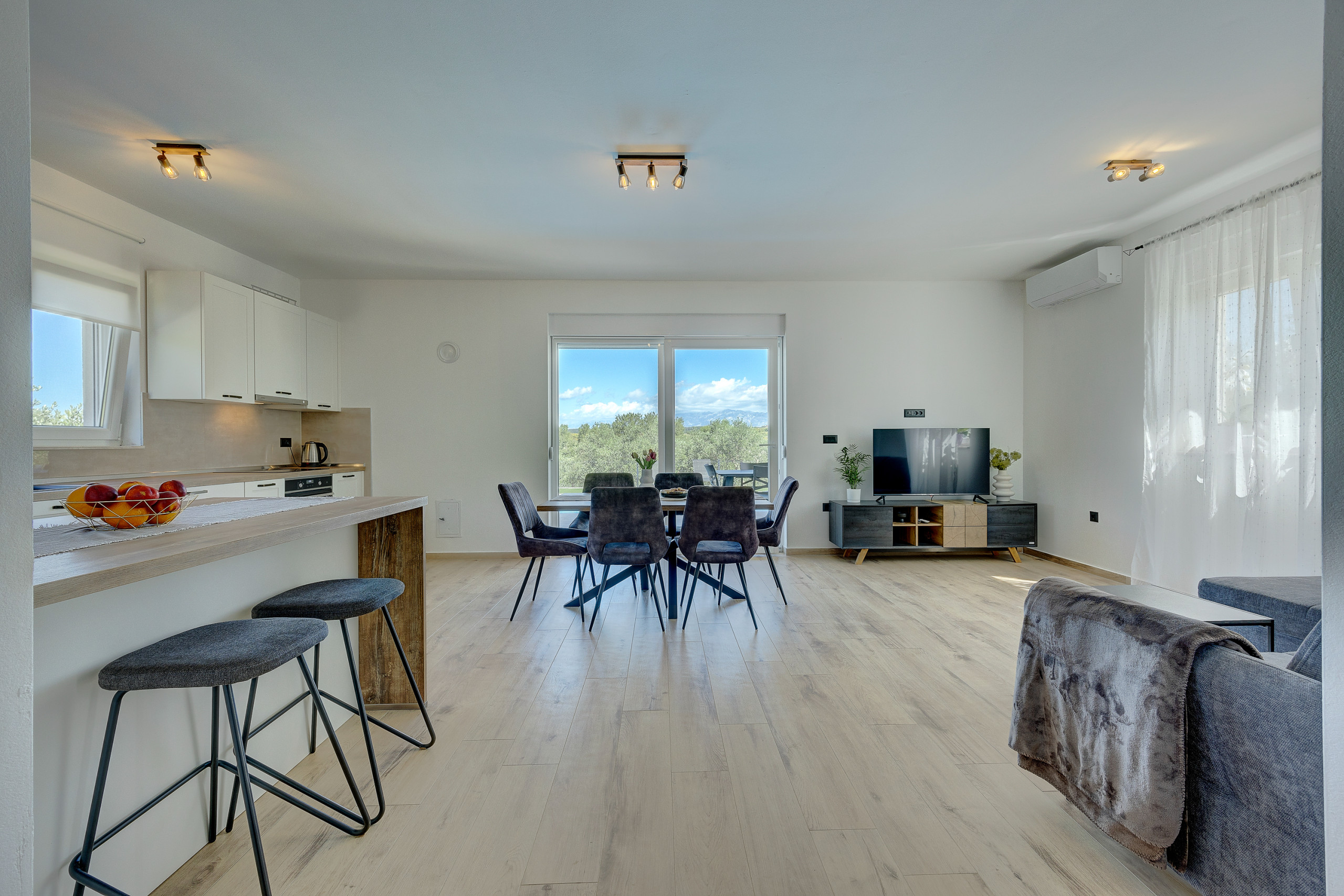 Das Haus befindet sich vollständig im Erdgeschoss und bietet einen offenen Wohnbereich sowie zwei schöne Schlafzimmer und zwei Badezimmer mit Dusche. Das Haus ist voll klimatisiert und verfügt über individuell regulierbare Klimaanlagen in den Schlafzimmern.