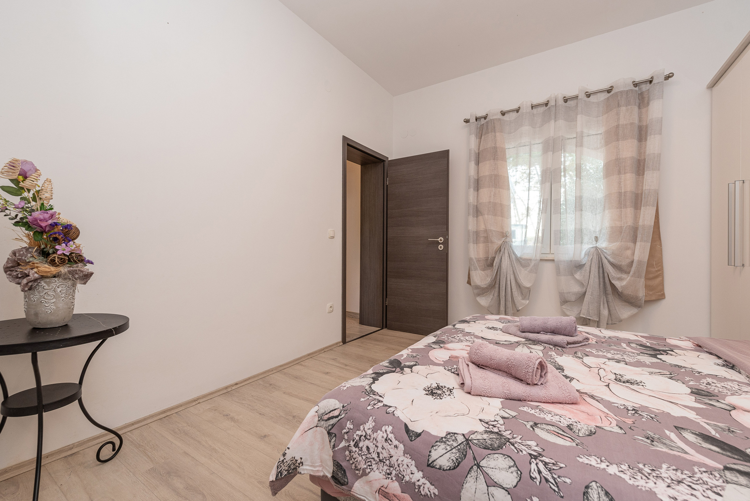 Das Haus bietet Platz für 6 bis 7 Personen und verfügt über drei geräumige Schlafzimmer mit Doppelbetten, alle mit Meerblick. Es gibt zwei Badezimmer mit Dusche und Toilette - ein Badezimmer befindet sich im Schlafzimmer, das andere ist vom Flur aus zugänglich. Eines von ihnen verfügt auch über eine Waschmaschine. Der Wohn- und Essbereich sind geräumig und hell, mit einem großen Tisch für gemeinsame Mahlzeiten und verbunden mit einer modernen Küche, die mit allem ausgestattet ist, was man braucht. Gäste haben Zugang zu kostenlosem WLAN, SAT/TV und Klimaanlage im Wohnzimmer, die auch zur Beheizung im Frühjahr und Herbst genutzt werden kann.