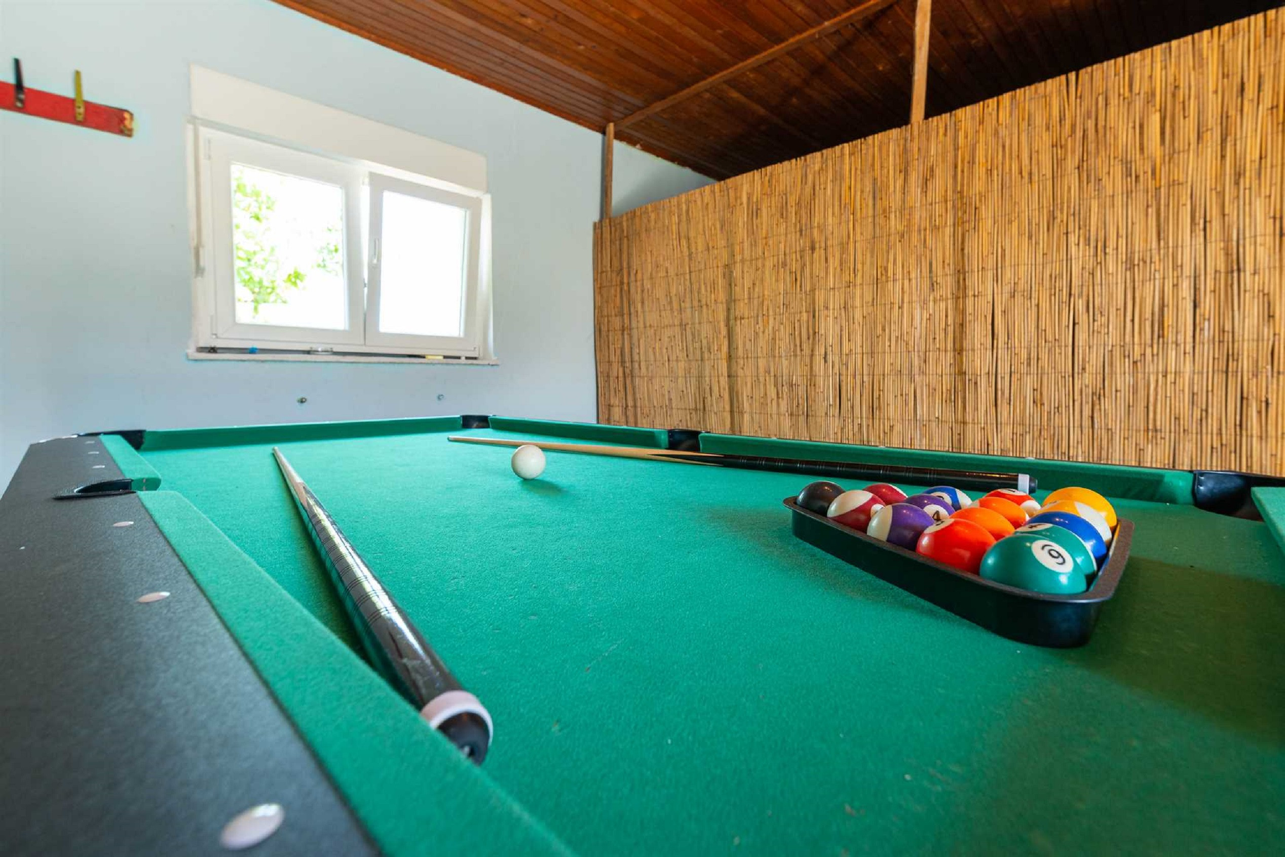 Im Dachgeschoss befindet sich ein Spielzimmer mit Billard, Tischtennis, Tischfußball usw.