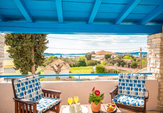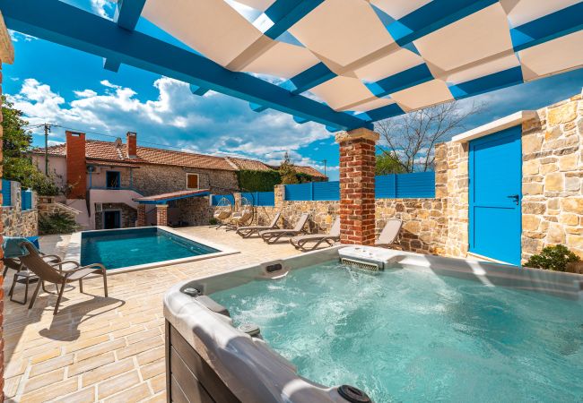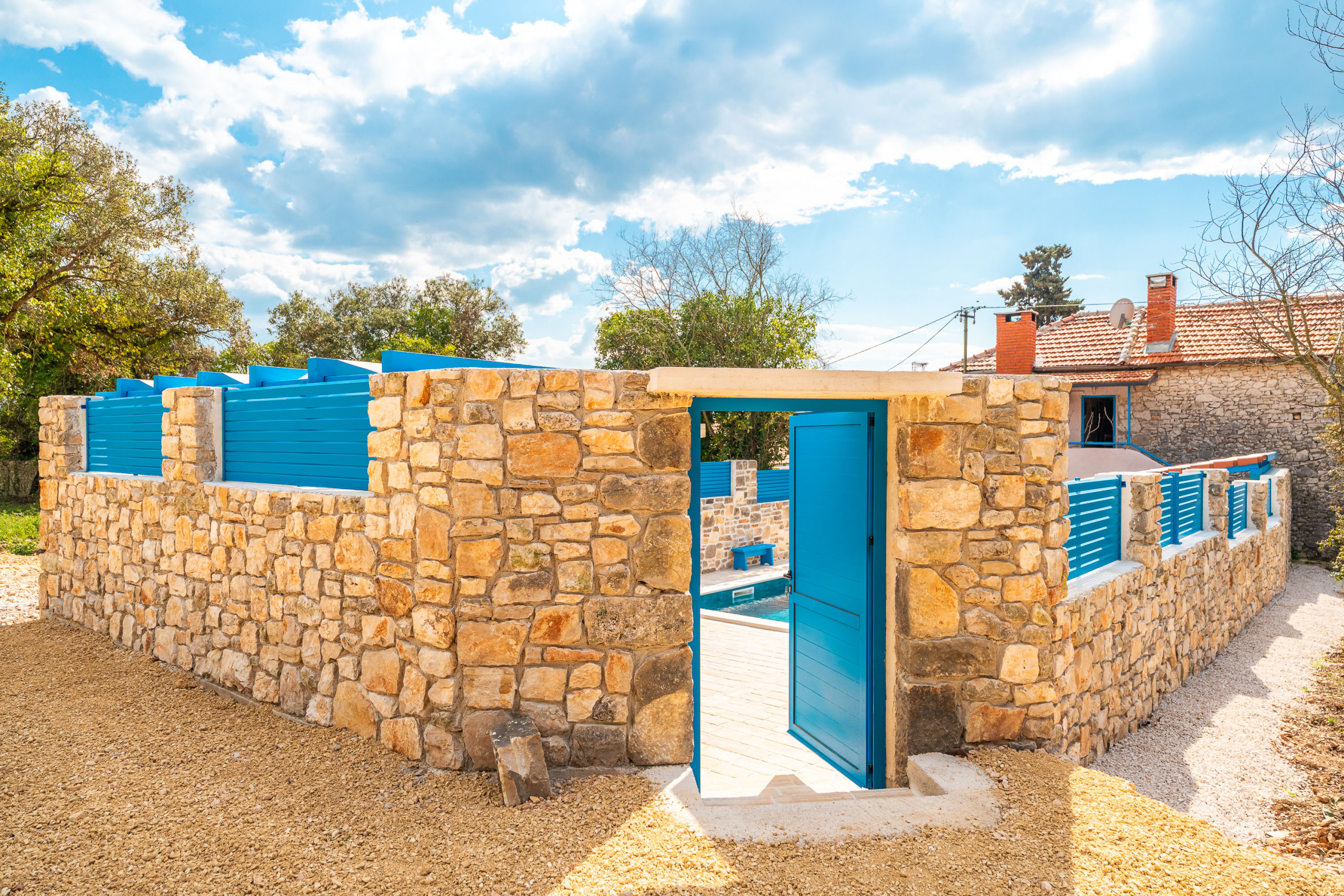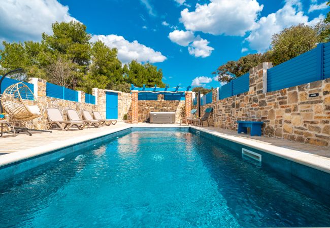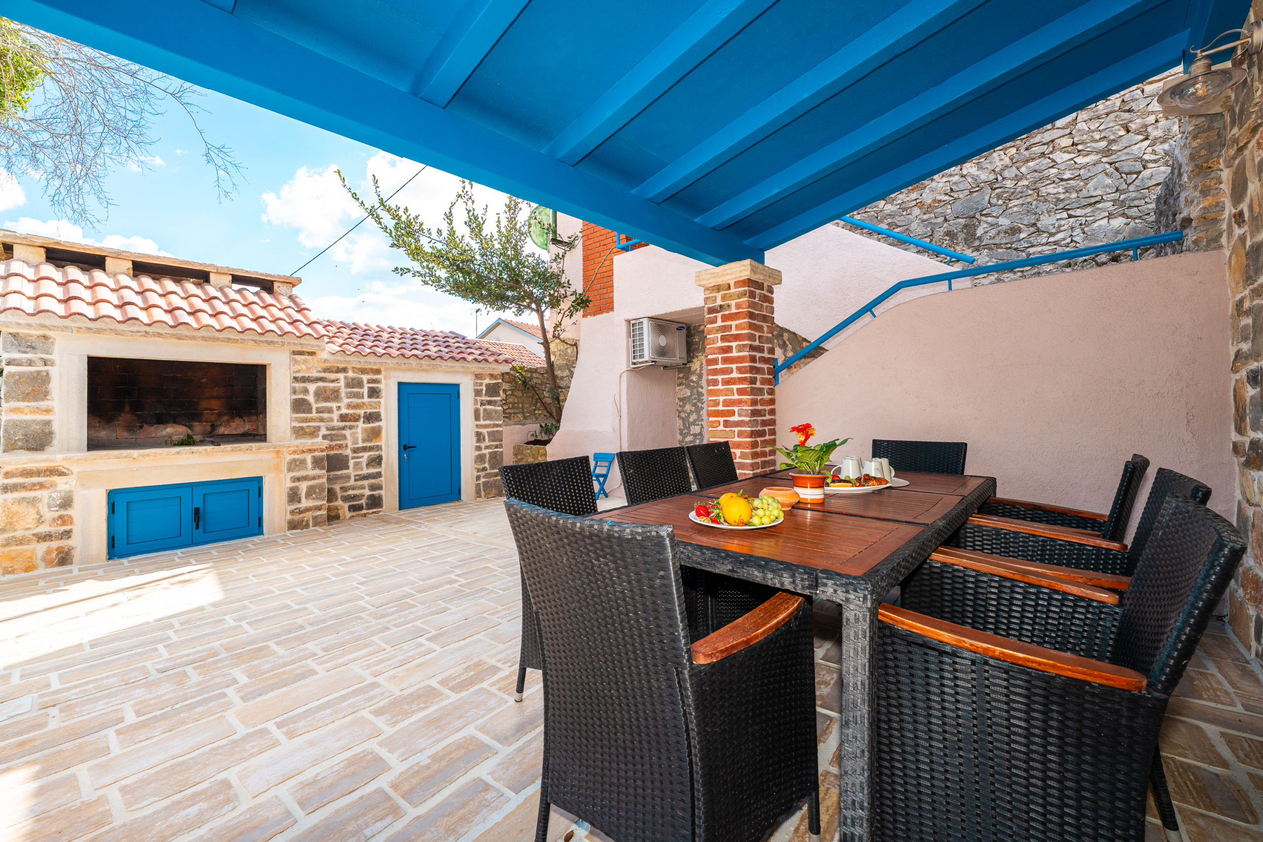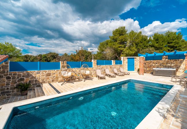 Erleben Sie das authentische mediterrane Lebensgefühl in dieser wunderschön gestalteten dalmatinischen Steinvilla in Sukošan, nur wenige Gehminuten vom Meer entfernt, mit teilweisem Meerblick. Die Kombination aus traditioneller Steinarchitektur, leuchtend blauen Details und warmen Holzelementen verleiht der Villa Zara einen besonderen Charme und zeitlose Eleganz.