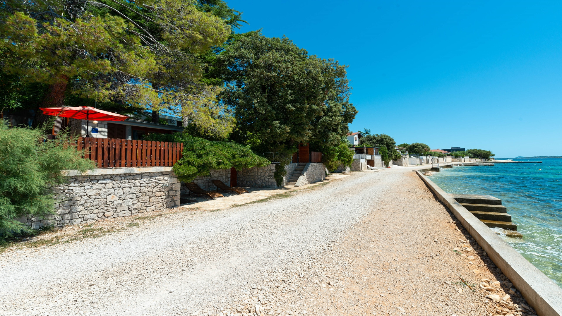 Dieses charmante Strandhaus Kondura liegt in dem kleinen Fischerort Sveti Petar na Moru, ganz in der Nähe von Biograd na Moru. Schon der private Strandzugang, umgeben von Pinien, ist ein Genuss für mediterrane Ruhe, Entspannung und angenehmen Schatten an heißen Sommertagen.