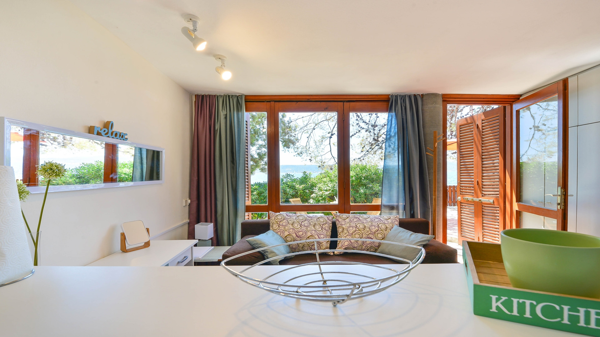 Das 60 m² große Haus bietet eine voll ausgestattete Küche, einen offenen Wohn- und Essbereich mit Sat-TV, Klimaanlage und WLAN. Vom Wohnbereich aus genießen Sie einen atemberaubenden Meerblick und gelangen auf die Terrasse, wo Sie Ihre selbst zubereiteten Grillgerichte genießen und Zeit mit Familie oder Freunden verbringen können. Ein Glas kroatischen Weins zum Sonnenuntergang ist ein absolutes Muss.