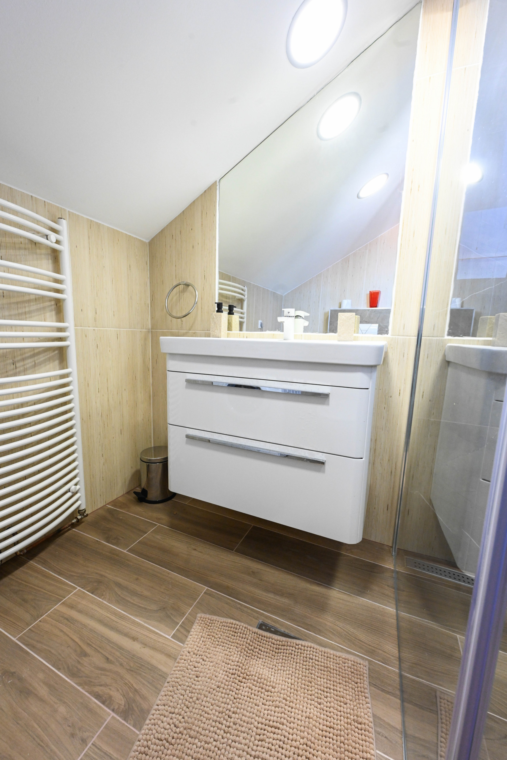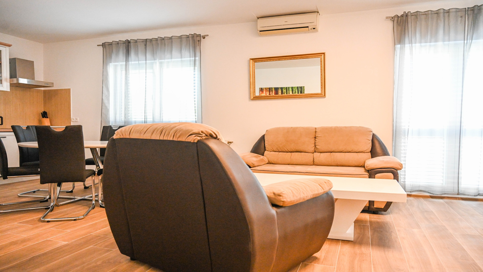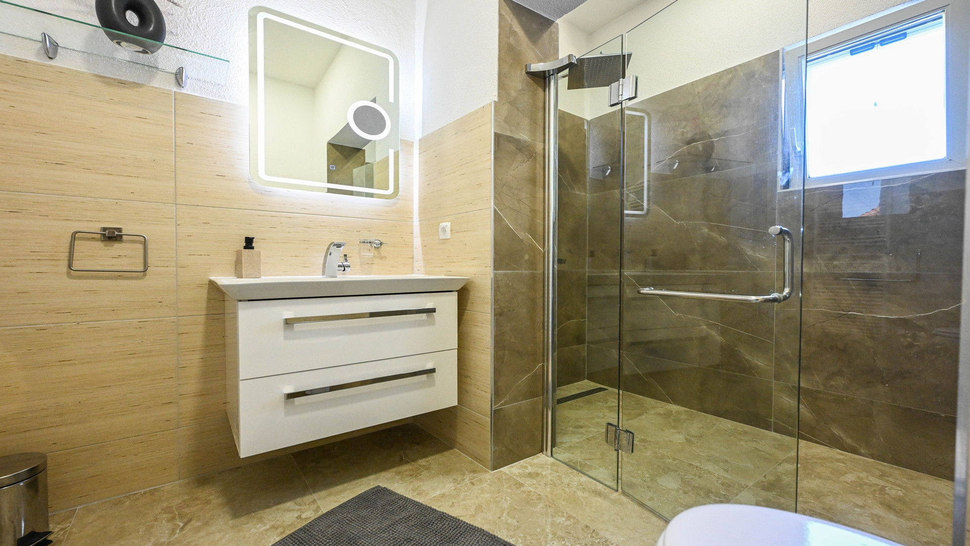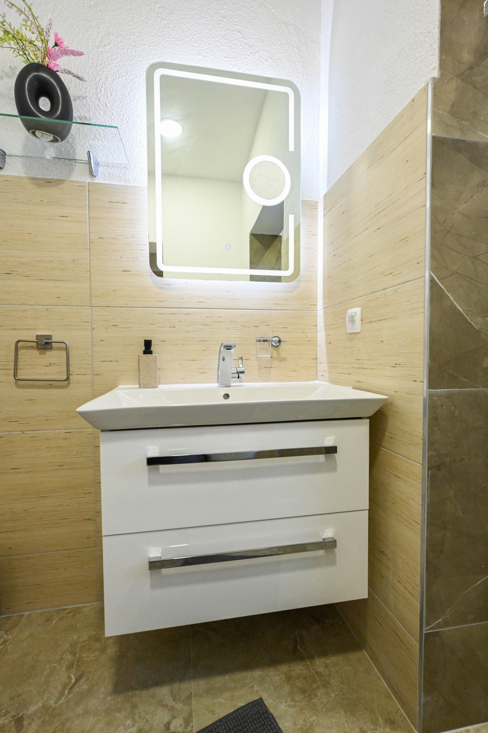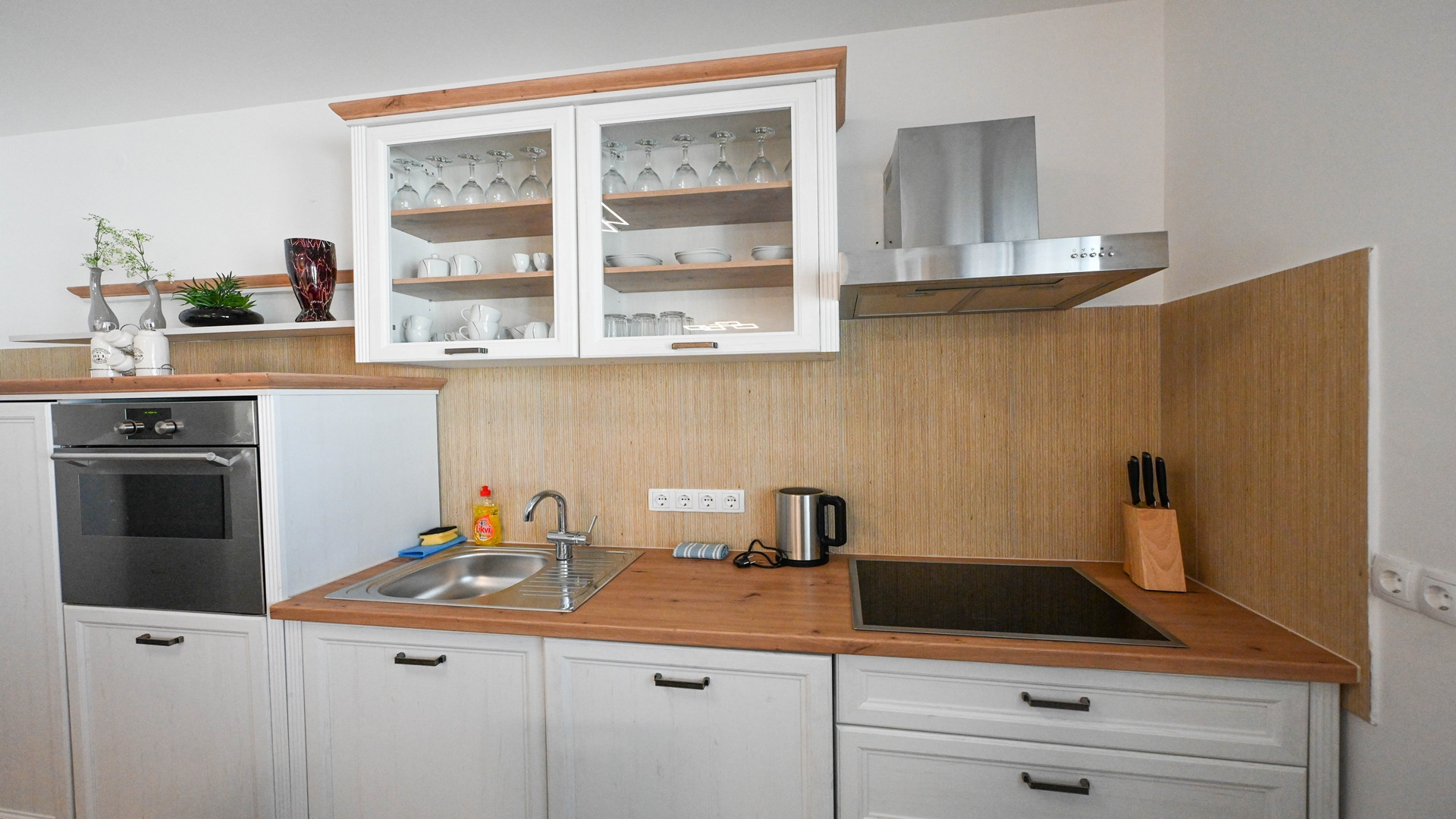 Wenn Sie sich im schönen Poolbereich vergnügen, schwimmen oder sonnenbaden, können Sie alle auf einer bezaubernden Terrasse im dalmatinischen Tavernendekor zusammenkommen. Gemeinsam Mahlzeiten zubereiten, mit Familie und Freunden speisen oder einfach abends in vertrauter Gesellschaft ein Glas Wein trinken – darum geht es.