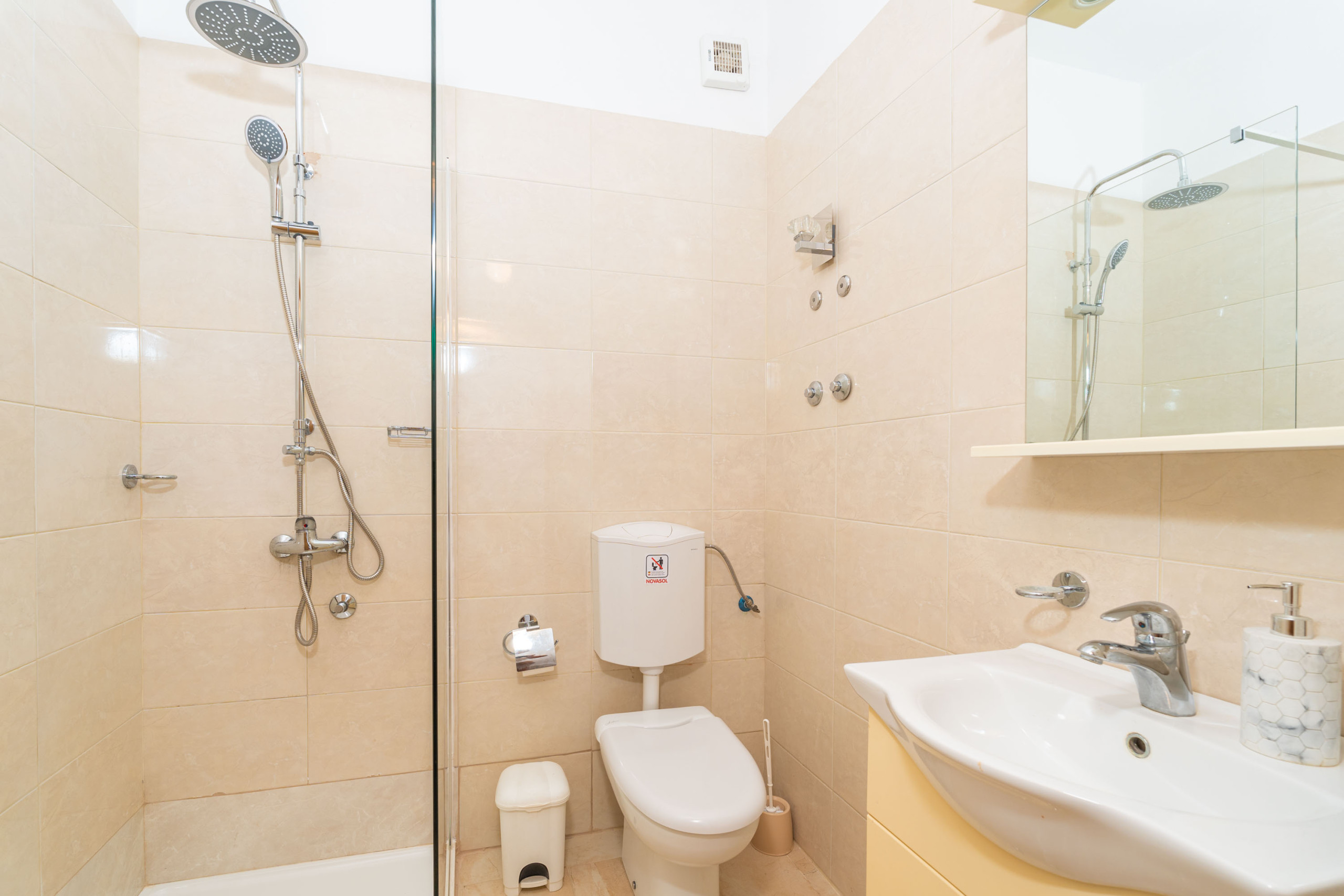 Die Wohnung verfügt über ein charmantes Wohnzimmer, Esszimmer und eine Küche sowie drei Schlafzimmer und drei Badezimmer, die unseren Gästen zur Verfügung stehen. Zusammen mit dem ausziehbaren Doppelsofa im Wohnbereich eignet sie sich perfekt für maximal 8 Gäste.