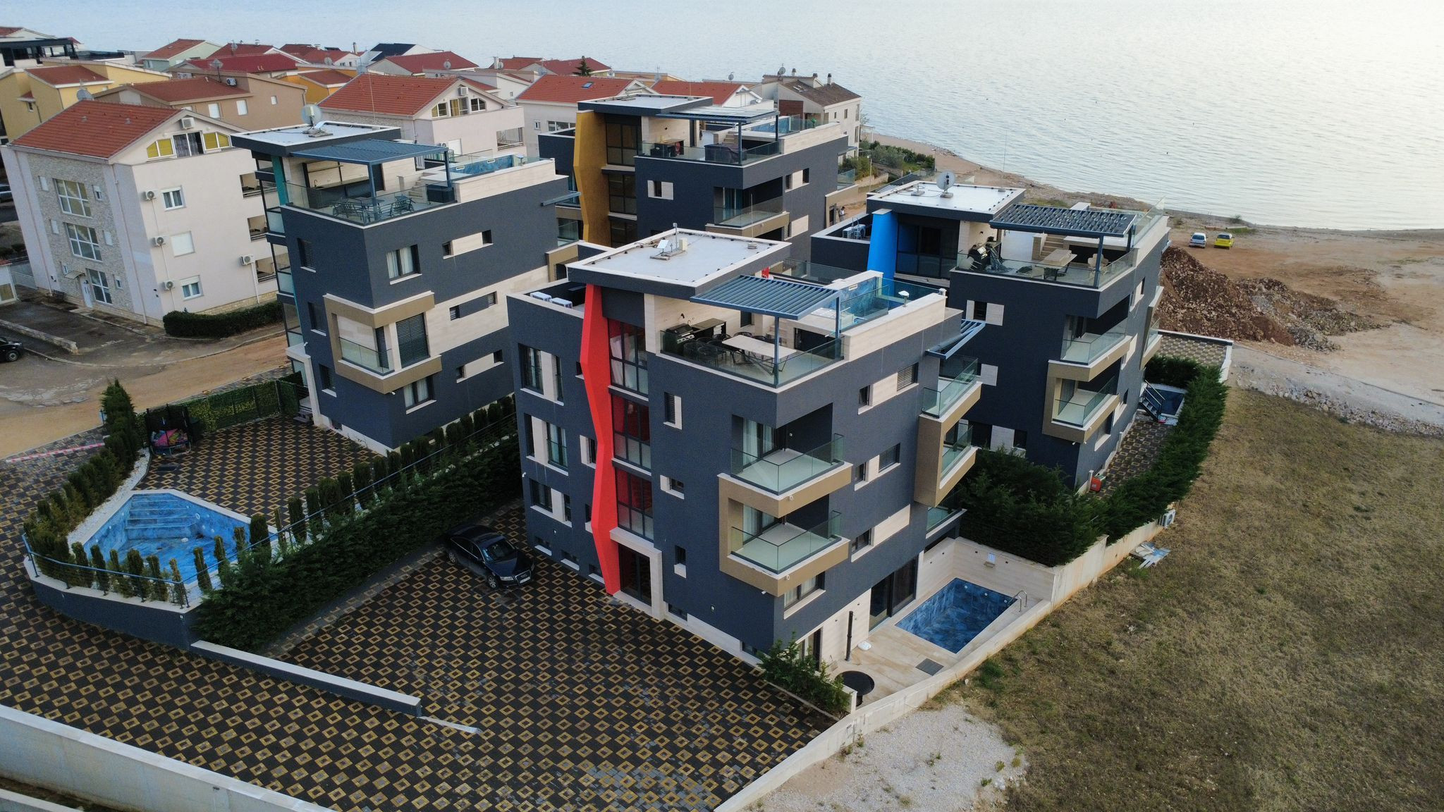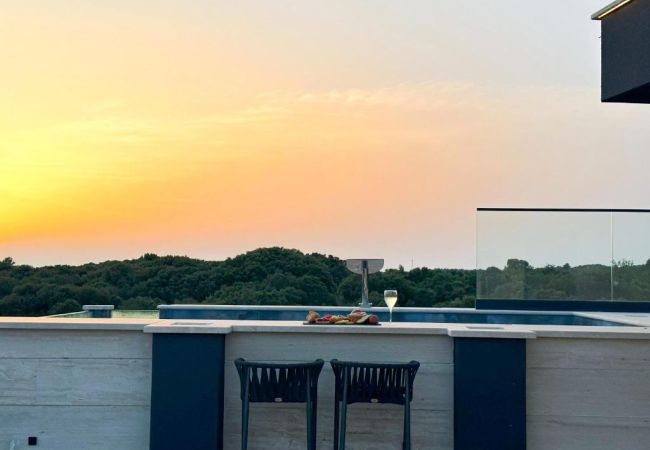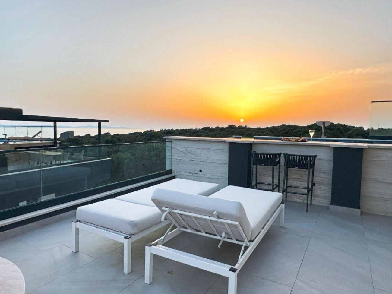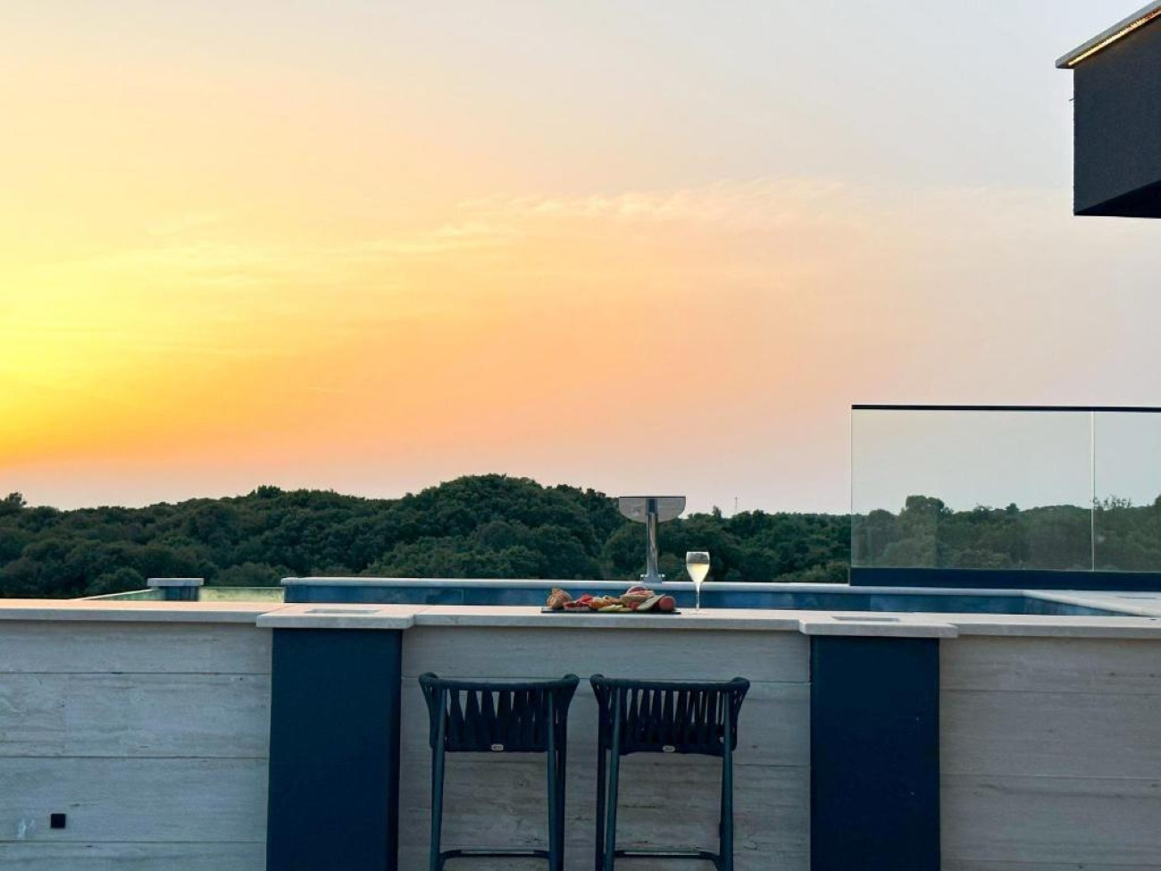 Eine voll ausgestattete, moderne Küche wird selbst die anspruchsvollsten Gäste zufriedenstellen, während der Außenbereich das Erlebnis auf ein ganz neues Niveau hebt. Die Dachterrasse bietet einen beheizten Infinity-Pool (3 x 6 m), eine Außenküche, einen Grillplatz und eine geräumige Lounge – perfekt, um unvergessliche Sonnenuntergänge über der Adria zu genießen.