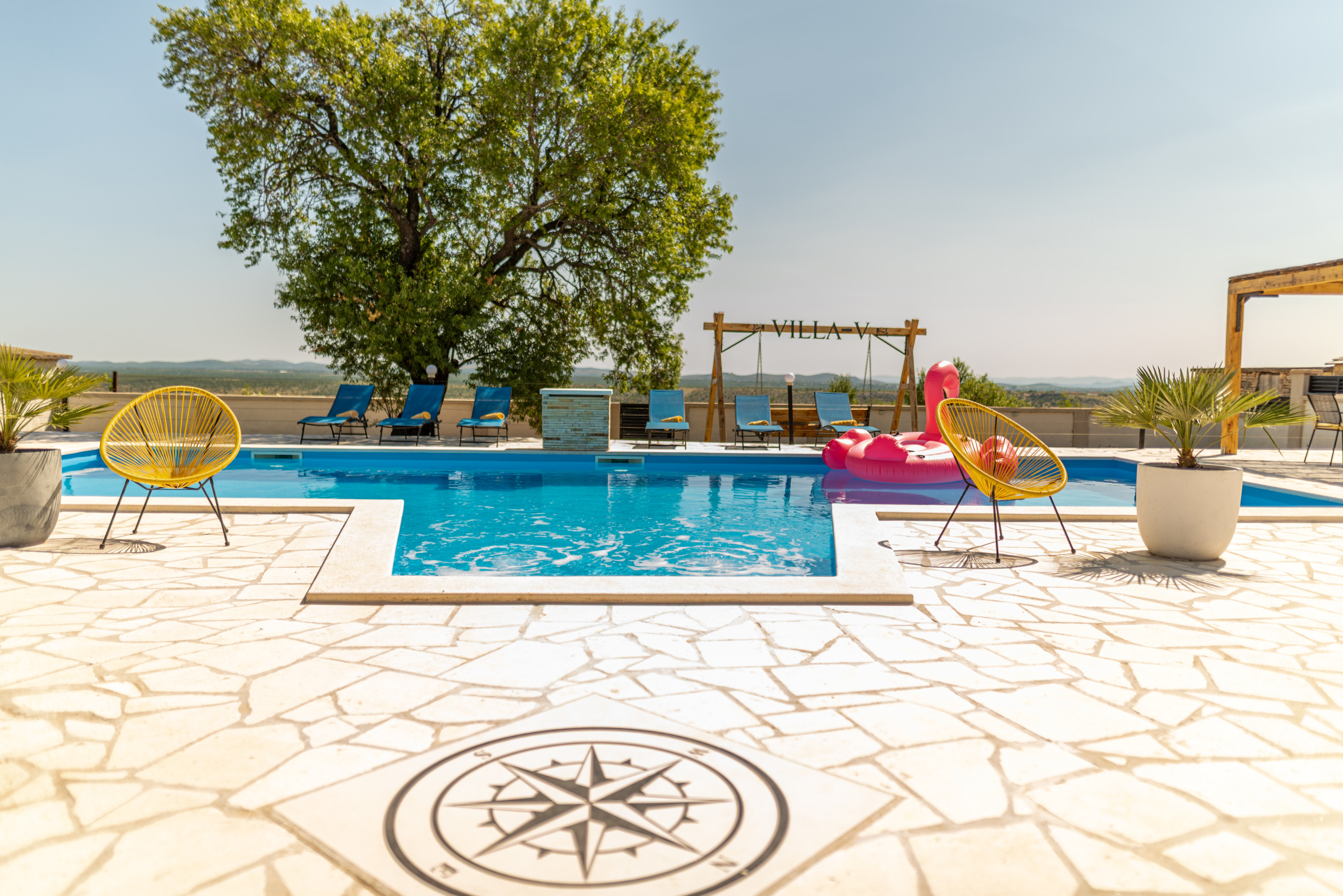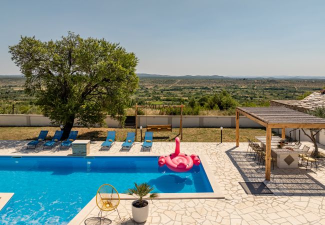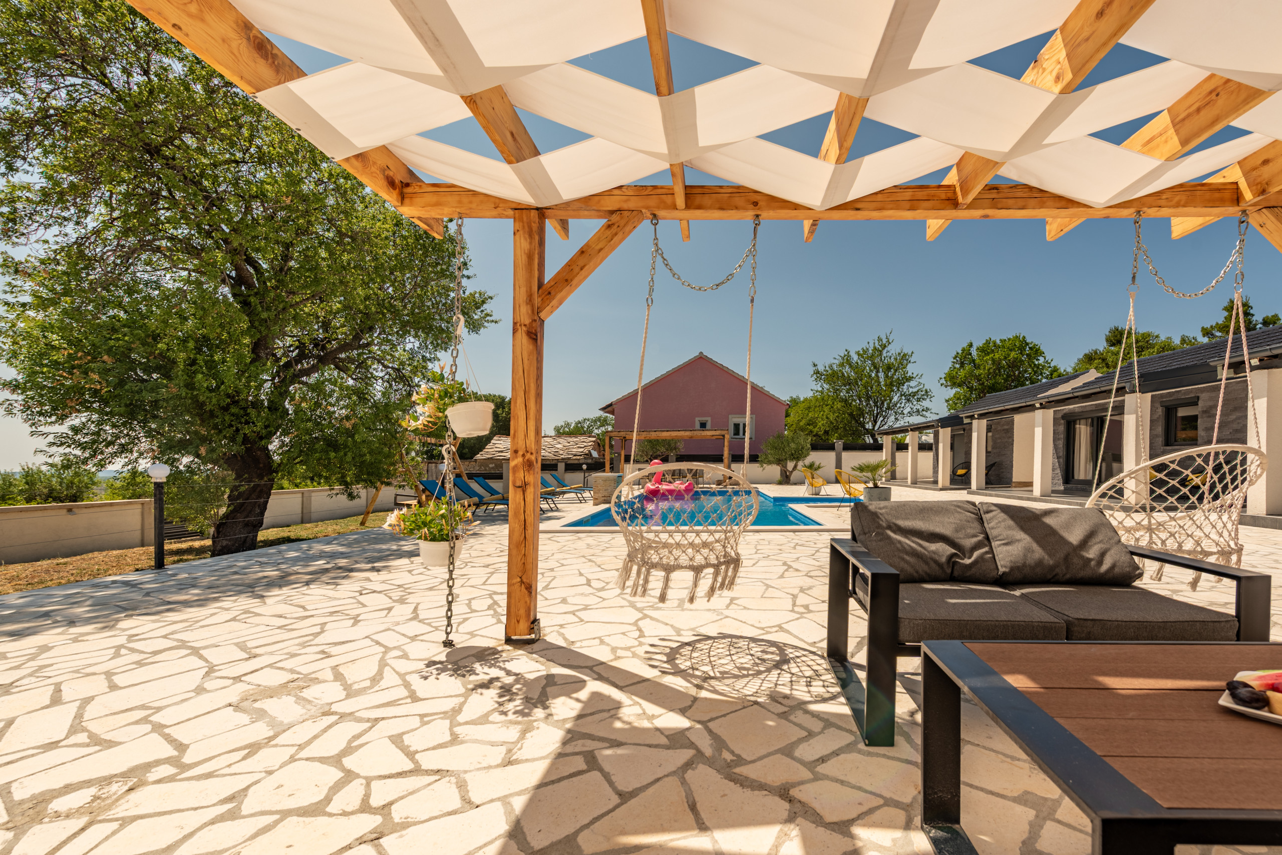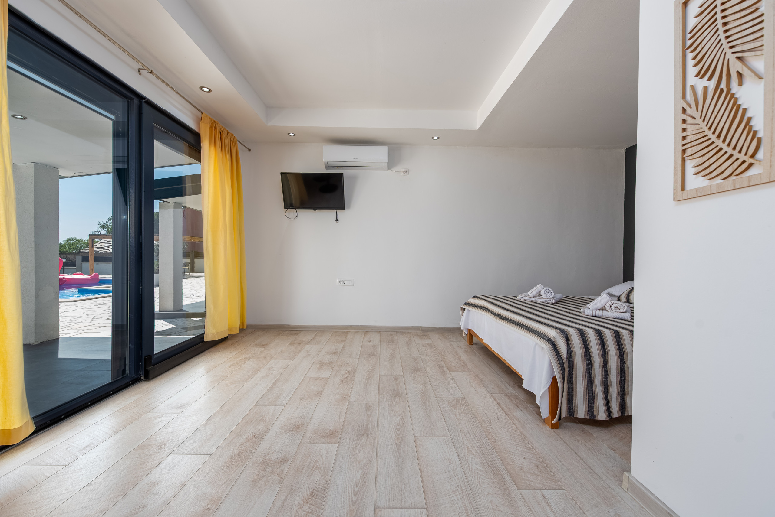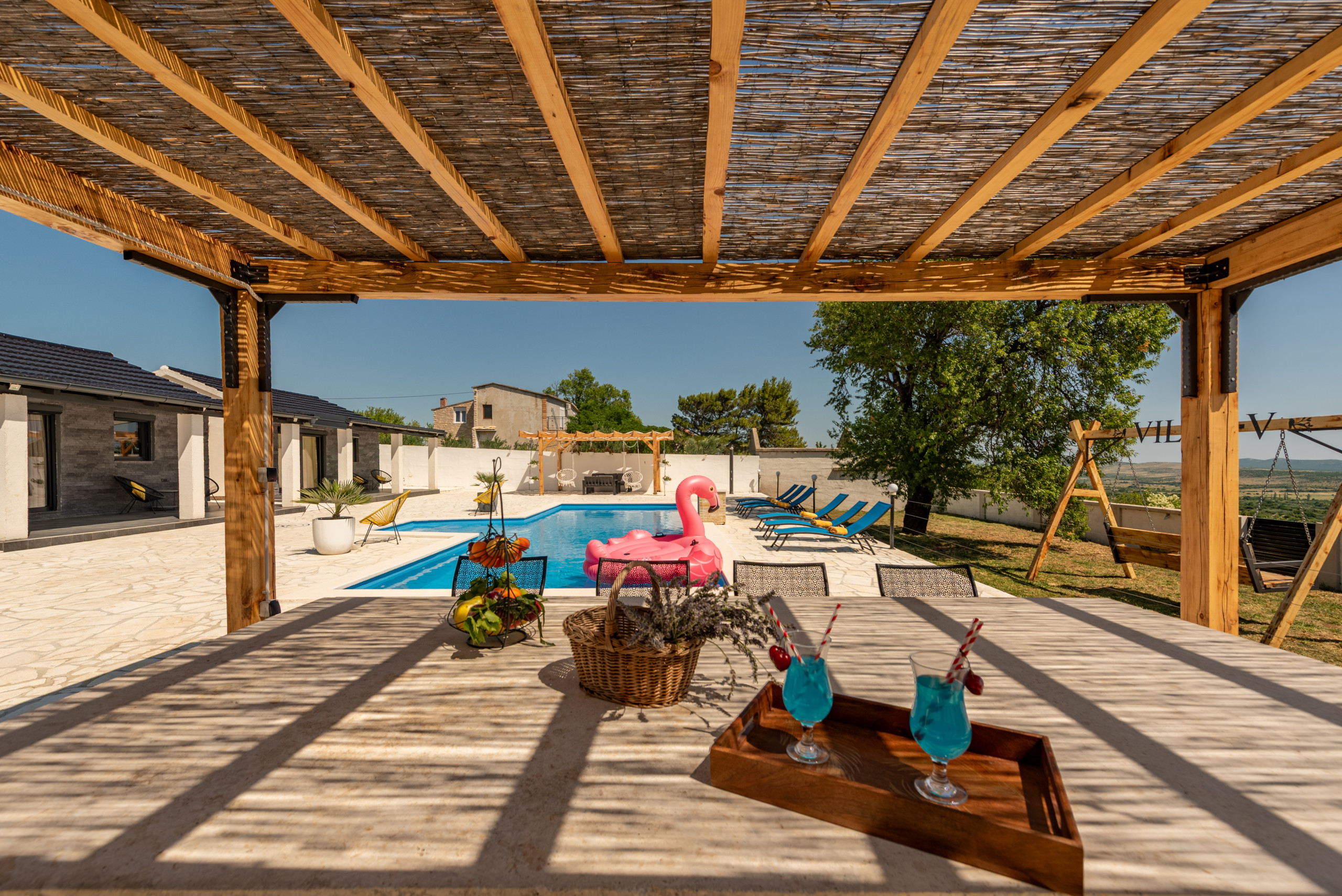 Diese charmante Villa mit 3 Wohneinheiten befindet sich in Buković, einem Teil der Stadt Benkovac, die 36 Kilometer von der historischen Stadt Zadar entfernt ist. Das Anwesen besteht aus drei Einheiten und deren Gemeinschaftsbereich, der schönen Terrasse und dem großen Swimmingpool. Jede der Einheiten in der Unterkunft bietet ein Doppelbett und bei Bedarf ein zusätzliches Einzelbett, was sie zum perfekten Ort für 9 Gäste macht, die eine Portion Privatsphäre in ihrer Unterkunft schätzen. Der perfekte Ort, um sich zu versammeln, ist die Terrasse und der Poolbereich, wo Sie Erfrischungen und Aktivitäten genießen können, alles in der friedlichen Umgebung dieses Anwesens, die einen ruhigen Urlaub, Frieden und Ruhe garantiert. Den Gästen stehen auch Grillmöglichkeiten und ein Kinderspielplatz nur 200 m entfernt zur Verfügung.