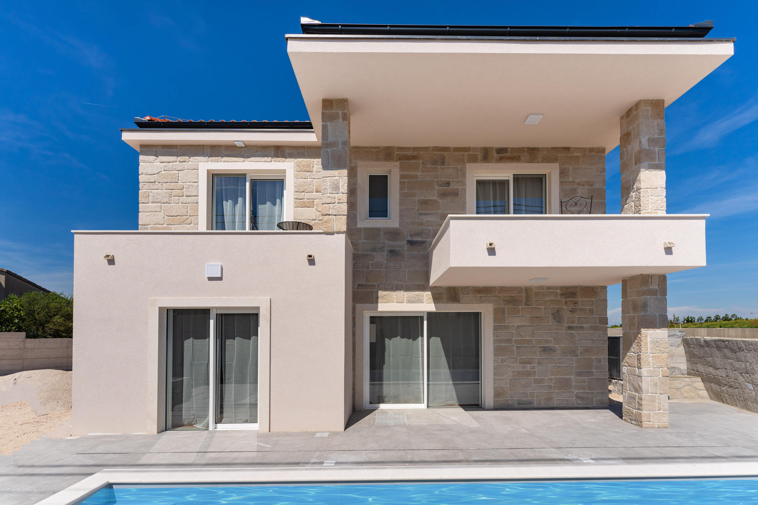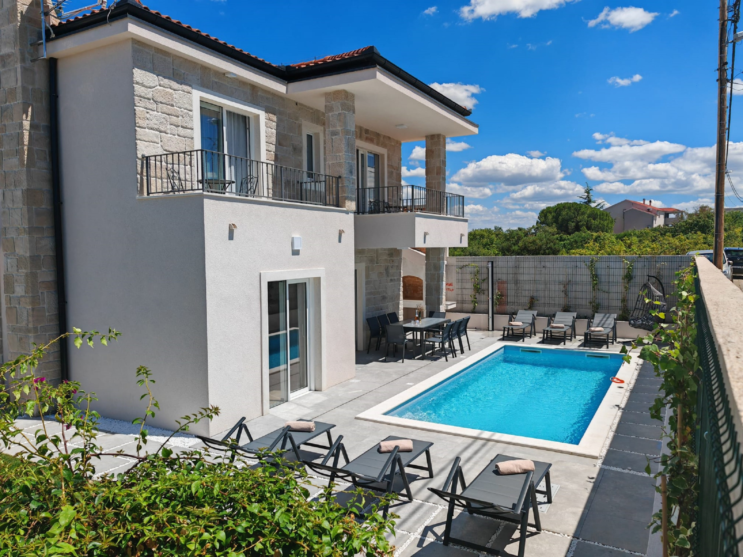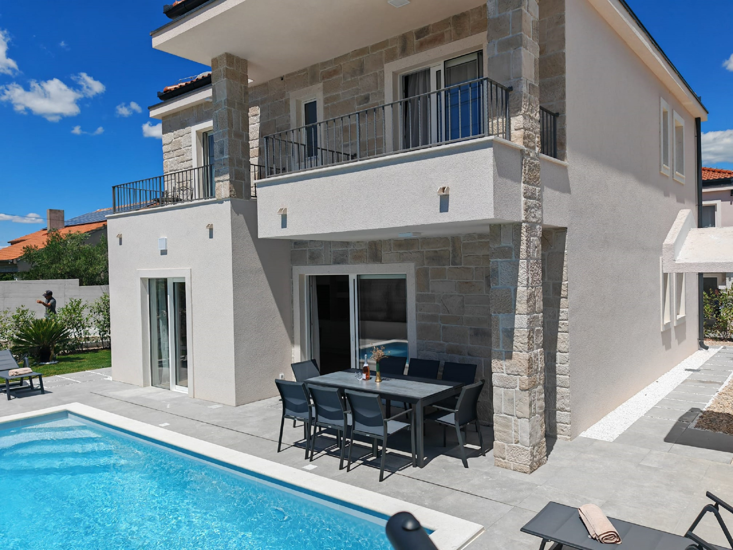Diese brandneue, moderne Villa befindet sich in der Nähe der historischen Stadt Zadar, in einem kleinen dalmatinischen Dorf namens Crno. Crno liegt am Stadtrand von Zadar (7 km), was Villa Enna zur perfekten Wahl für diejenigen macht, die Ruhe und Stille während ihres Aufenthalts genießen möchten, während sie gleichzeitig das reiche touristische Angebot von Zadar erleben können. Villa Ena ist eine echte brandneue moderne Villa, die Entspannung und Luxusgefühl in jeder Ecke ihres Raumes bietet. Insgesamt kann sie 9 Gäste aufnehmen, was sie zur perfekten Wahl für Familien und Freunde macht. Das Innere der Villa erstreckt sich über 140 m² und verfügt über insgesamt fünf Schlafzimmer, von denen vier Schlafzimmer mit Doppelbetten ausgestattet sind und ein Schlafzimmer mit einem Einzelbett. Es gibt auch zwei Badezimmer mit Dusche, ausgestattet mit Grundtoiletteartikel, Waschmaschine und Trockner. Ein Wohnzimmer mit Sofa und Flachbild-TV, eine voll ausgestattete Küche mit hochwertigen Geräten und Ausgang auf eine Terrasse mit Blick auf die friedliche Umgebung werden alle Ihre Urlaubsbedürfnisse erfüllen. Das Äußere der Villa Enna erstreckt sich über ein 670 m² großes eingezäuntes Grundstück, und der hervorgehobene Teil des Außenbereichs ist ein schöner beheizter Swimmingpool und ein kleines Haus neben dem Pool, das einen Indoor-Grill mit Essbereich hat.
