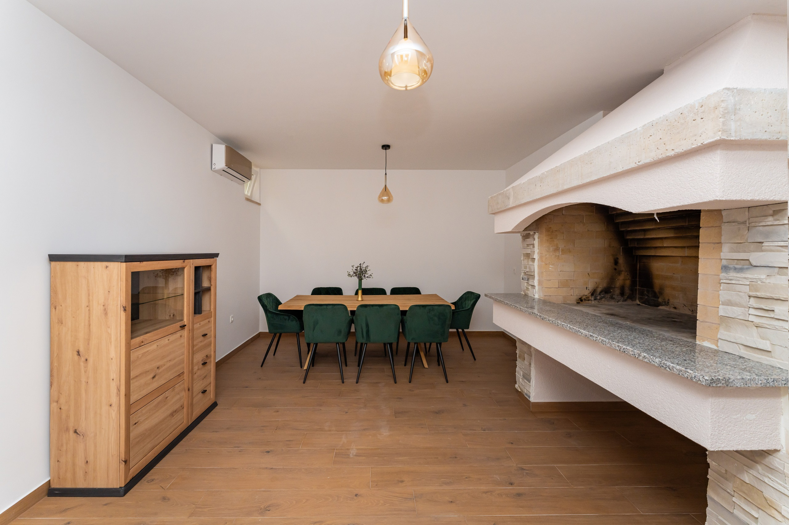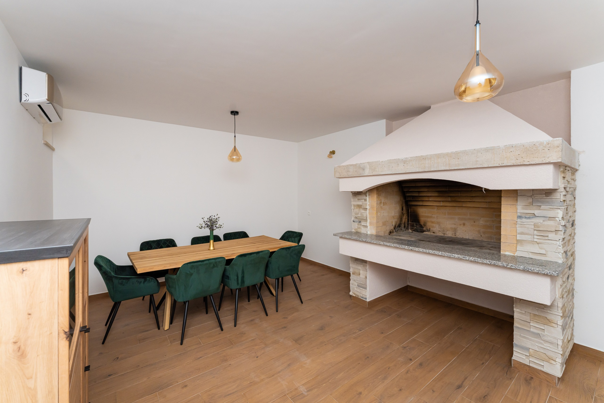 Im Außenbereich befindet sich ein beheizter Pool, der auch außerhalb der Hochsaison zum Schwimmen einlädt, und für Kinder gibt es einen Spielplatz mit Rutsche und Schaukel. Für Feinschmecker steht eine Außenküche mit integriertem Grill zur Verfügung – ideal, um dalmatinische Spezialitäten mit Familie und Freunden zuzubereiten. Haustiere sind auf Anfrage und gegen Aufpreis willkommen.