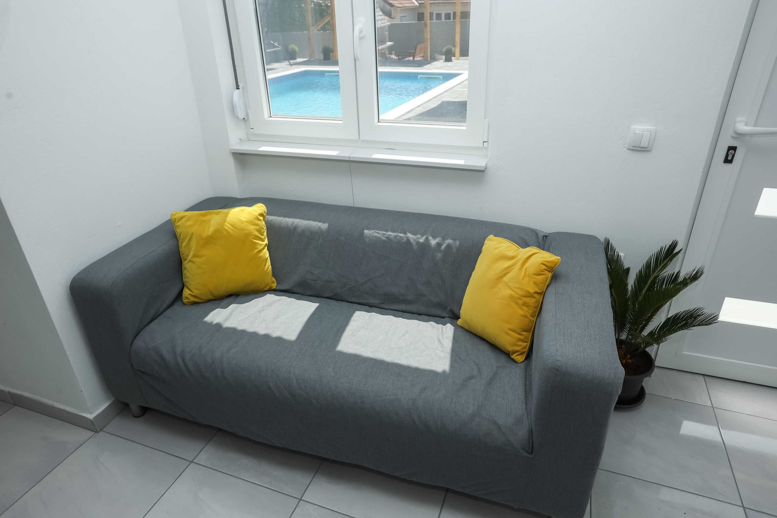 Die Villa bietet Platz für vier Gäste in zwei komfortablen Schlafzimmern mit Doppelbetten. Für zusätzliche Gäste stehen ein Schlafsofa und ein Zustellbett zur Verfügung, sodass insgesamt bis zu sechs Personen untergebracht werden können. Der Innenbereich ist geschmackvoll eingerichtet und sorgt für eine warme und einladende Atmosphäre. Den Gästen steht ein modernes Badezimmer mit Dusche und Waschmaschine zur Verfügung, was besonders bei längeren Aufenthalten sehr praktisch ist.
