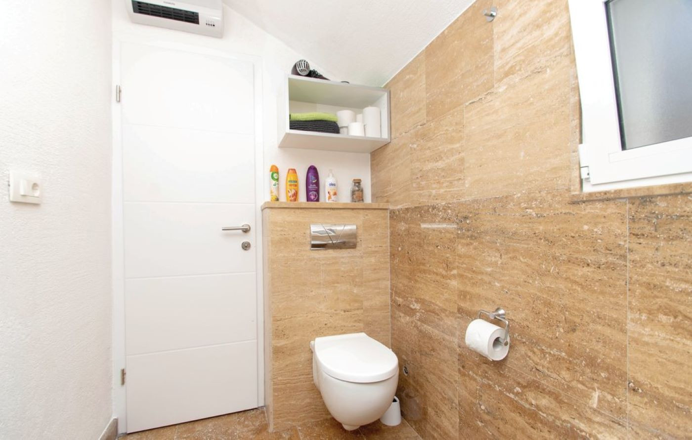 Mit zwei Doppelzimmern und einem ausziehbaren Doppelsofa im Wohnzimmer ist die Villa perfekt für bis zu sechs Gäste. Darüber hinaus gibt es in der Villa zwei Badezimmer: eines mit Badewanne und das andere mit Dusche.