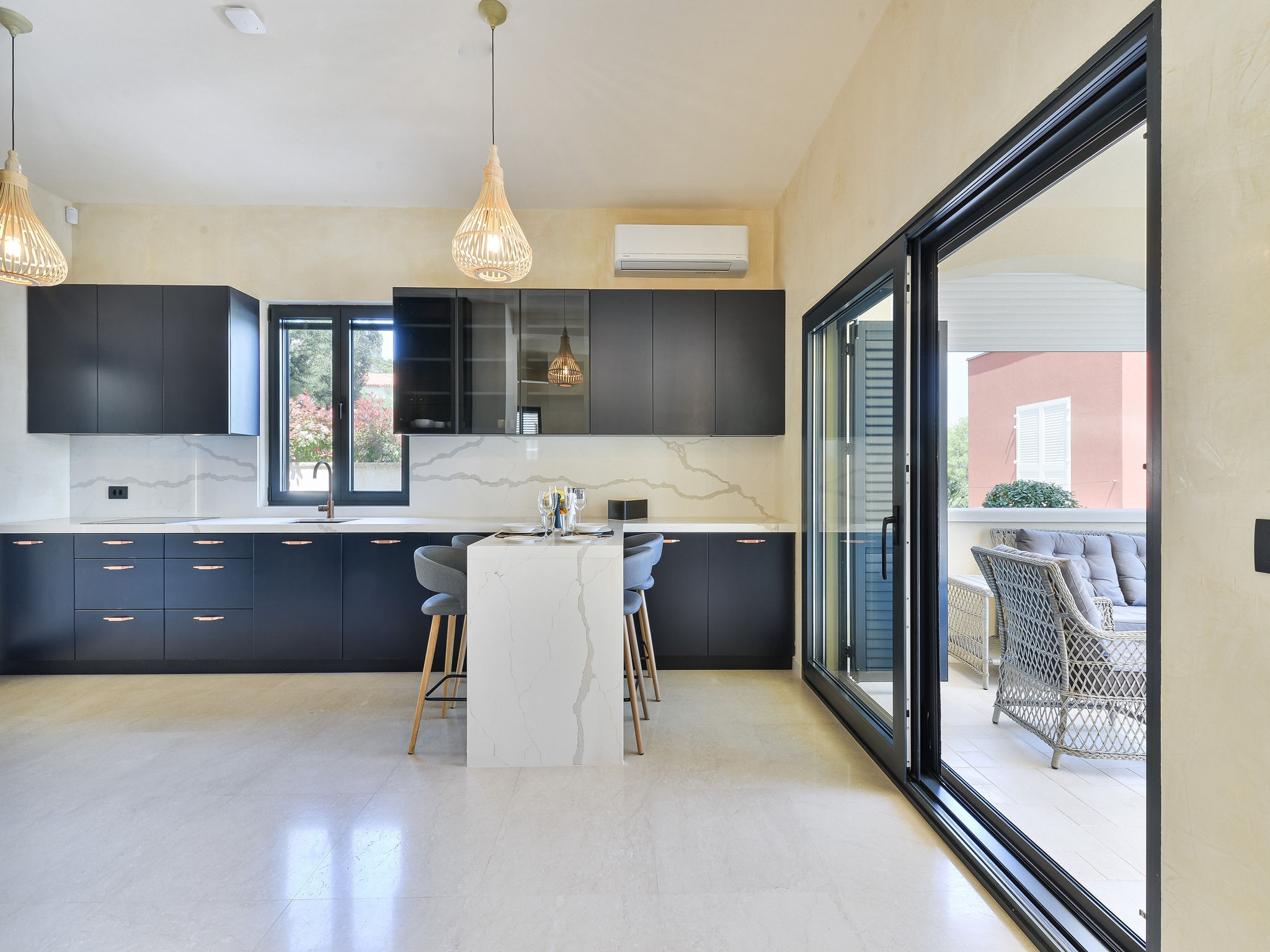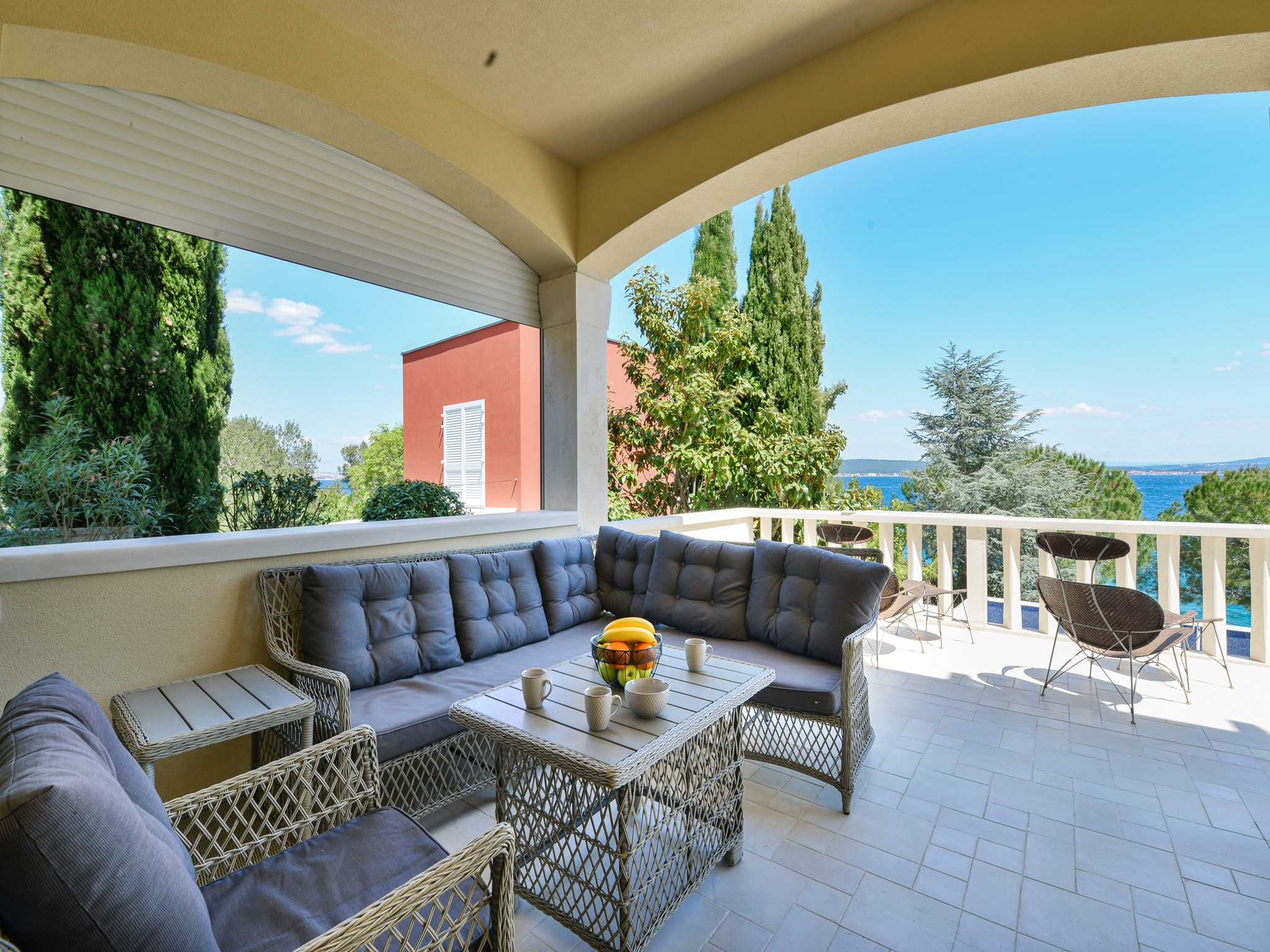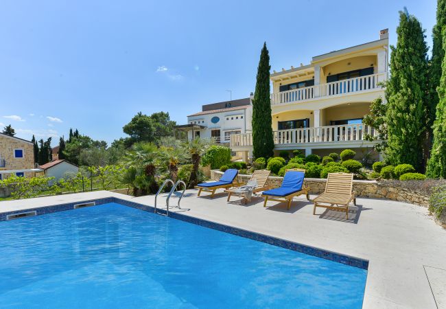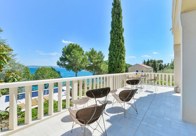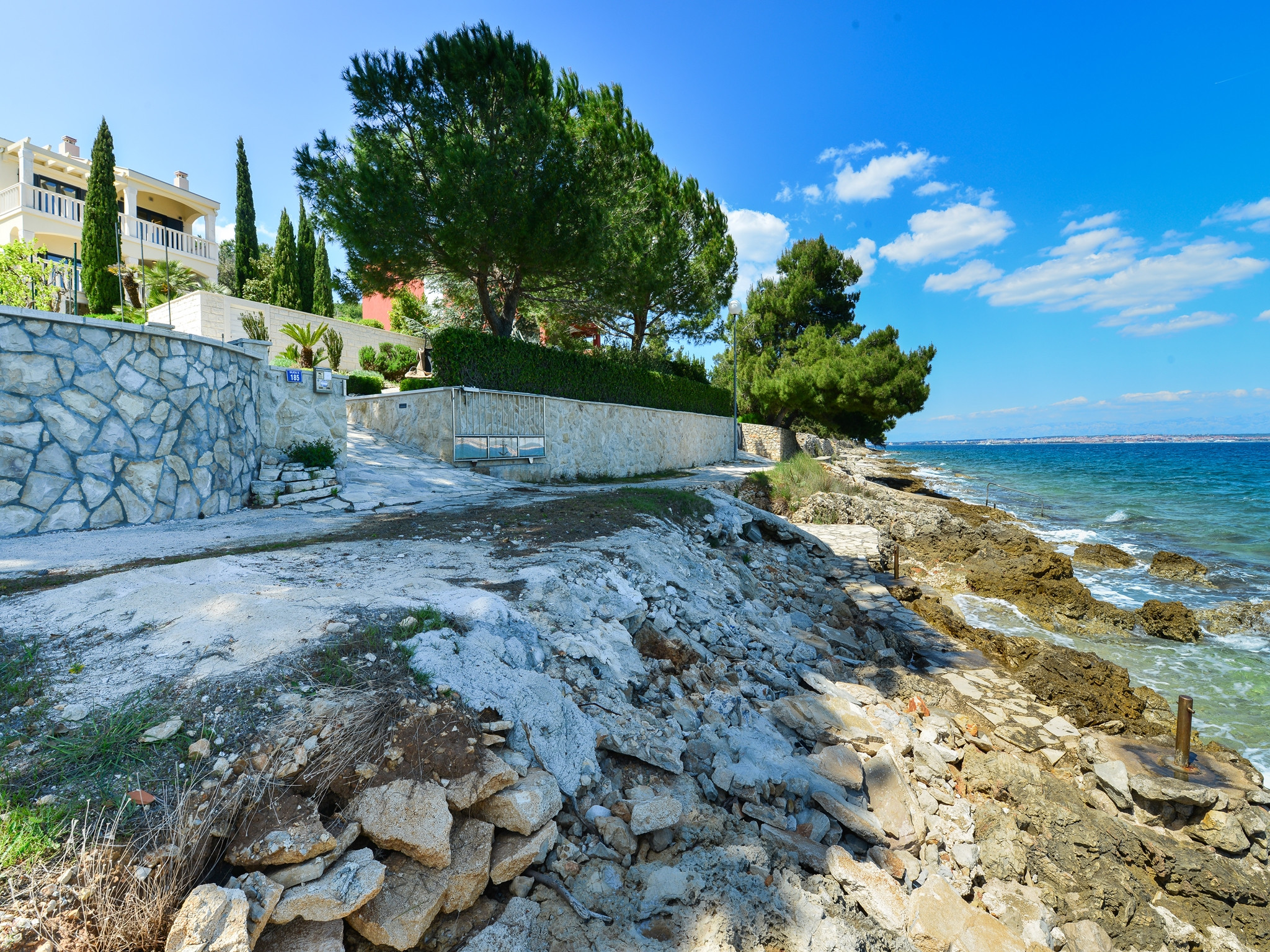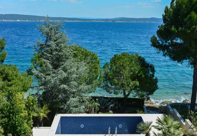 Die hochluxuriöse Villa Mediterranea wird Ihnen einfach den Atem rauben. Nicht nur mit ihrem Interieur auf 270m2, sondern auch mit einem atemberaubenden Meerblick. Die Villa befindet sich an einem kleinen Ort namens Kukljica auf der Insel Ugljan, in der Region Zadar, direkt am Strand. Das Erdgeschoss besteht aus einer vollausgestatteten Küche mit hochwertigen Geräten, einem geräumigen Wohnzimmer mit herrlichem Panorama-Meerblick und Ausgang zur Terrasse, WLAN, TV SAT; Klimaanlage. In diesem Stockwerk befindet sich ein Masterschlafzimmer mit eigenem Badezimmer und zusätzlicher Toilette. Im ersten Stock finden Sie 3 geräumige Schlafzimmer mit Doppelbett, eigenen Badezimmern und Balkon mit atemberaubendem Meerblick. Alle Schlafzimmer sind klimatisiert. Die zweite überdachte Terrasse befindet sich auf der Rückseite des Hauses mit einer Außen-Essecke und Grillstation. Das Grundstück ist vollständig eingezäunt mit einem Garten von 1000m2, großem beheiztem Swimmingpool, Sonnenliegen, Außendusche und privatem Parkplatz. Diese schöne und geräumige Villa ist für Familien oder Freunde geschaffen, die pure Natur genießen möchten. Kiefernbäume werden Ihnen eine Portion mediterraner Ruhe und Entspannung geben. Gäste können Tagesausflüge nach Zadar und Umgebung unternehmen, die Ausflüge bieten, die Geschichtsliebhaber zufriedenstellen werden. Der historische Kern von Zadar ist über 3000 Jahre alt. Hinweis: Villa Mediterranea ist nicht für Menschen mit Behinderungen geeignet.