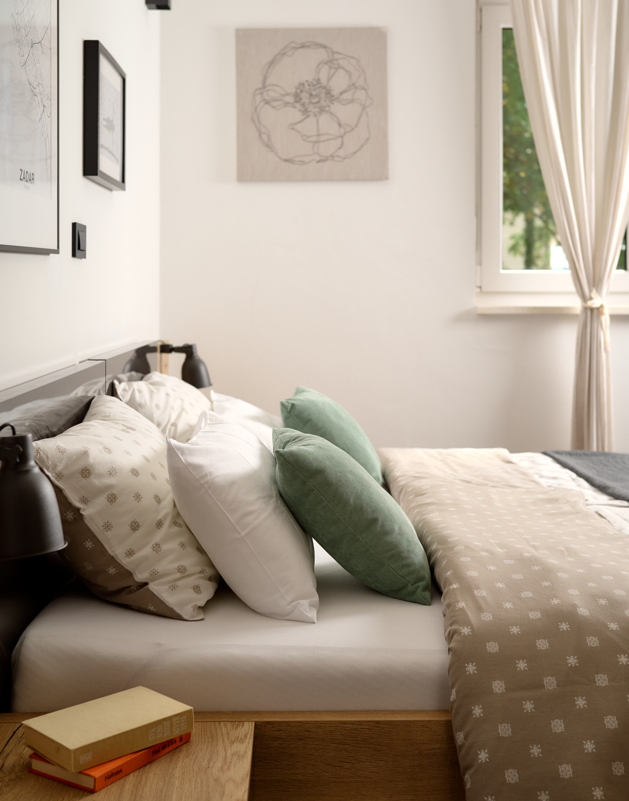 Die Villa Novue kann bis zu 10 Personen beherbergen, sie ist ideal für größere Familien oder Freundesgruppen. Sie verfügt über vier geräumige Schlafzimmer, die jeweils mit komfortablen Doppelbetten und einem privaten Badezimmer mit Dusche ausgestattet sind. Im Wohnzimmer befindet sich ein großes Sofa, das als zusätzliches Bett für zwei Personen genutzt werden kann und somit eine zusätzliche Flexibilität bei der Unterbringung von Gästen bietet.