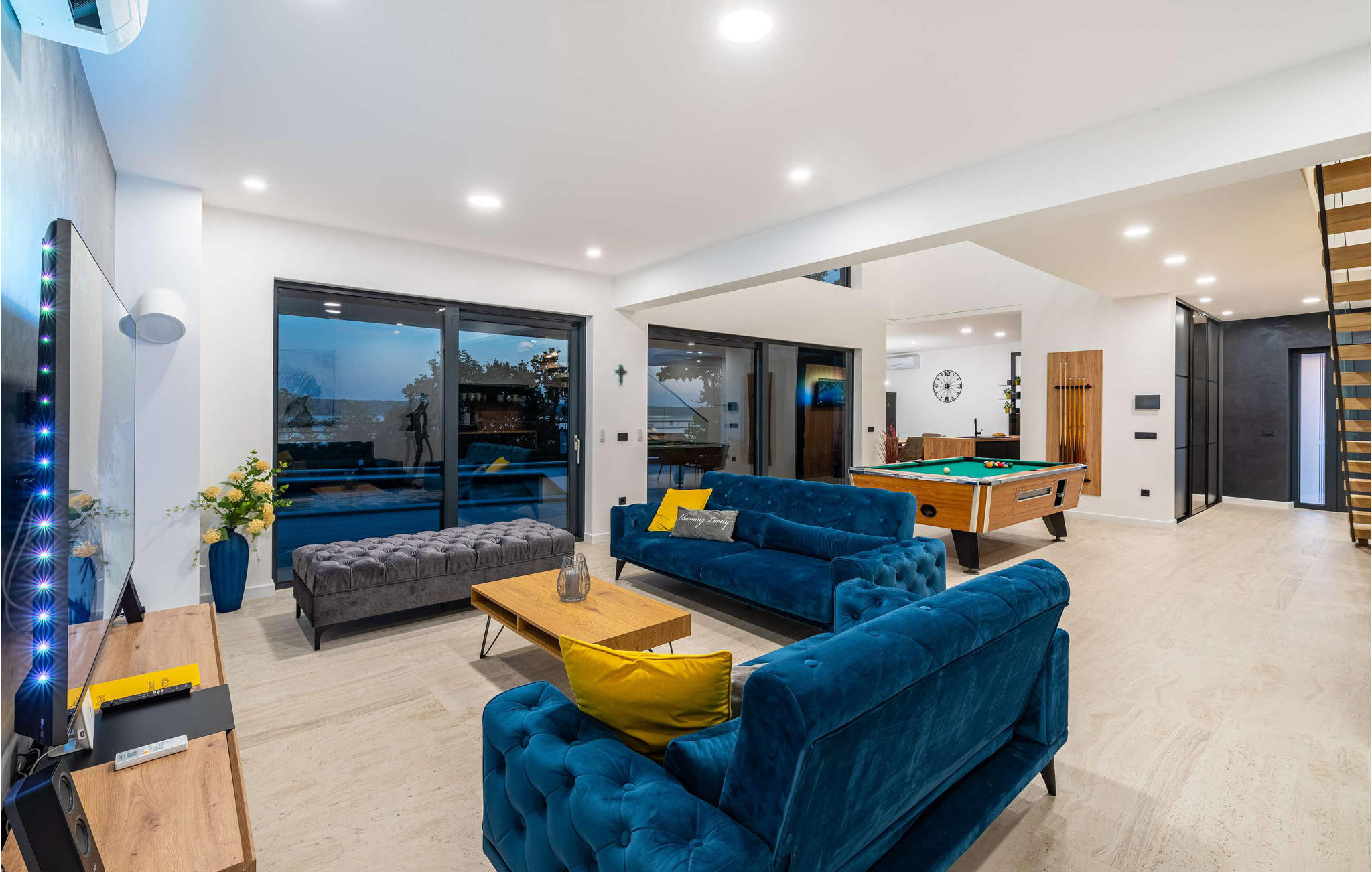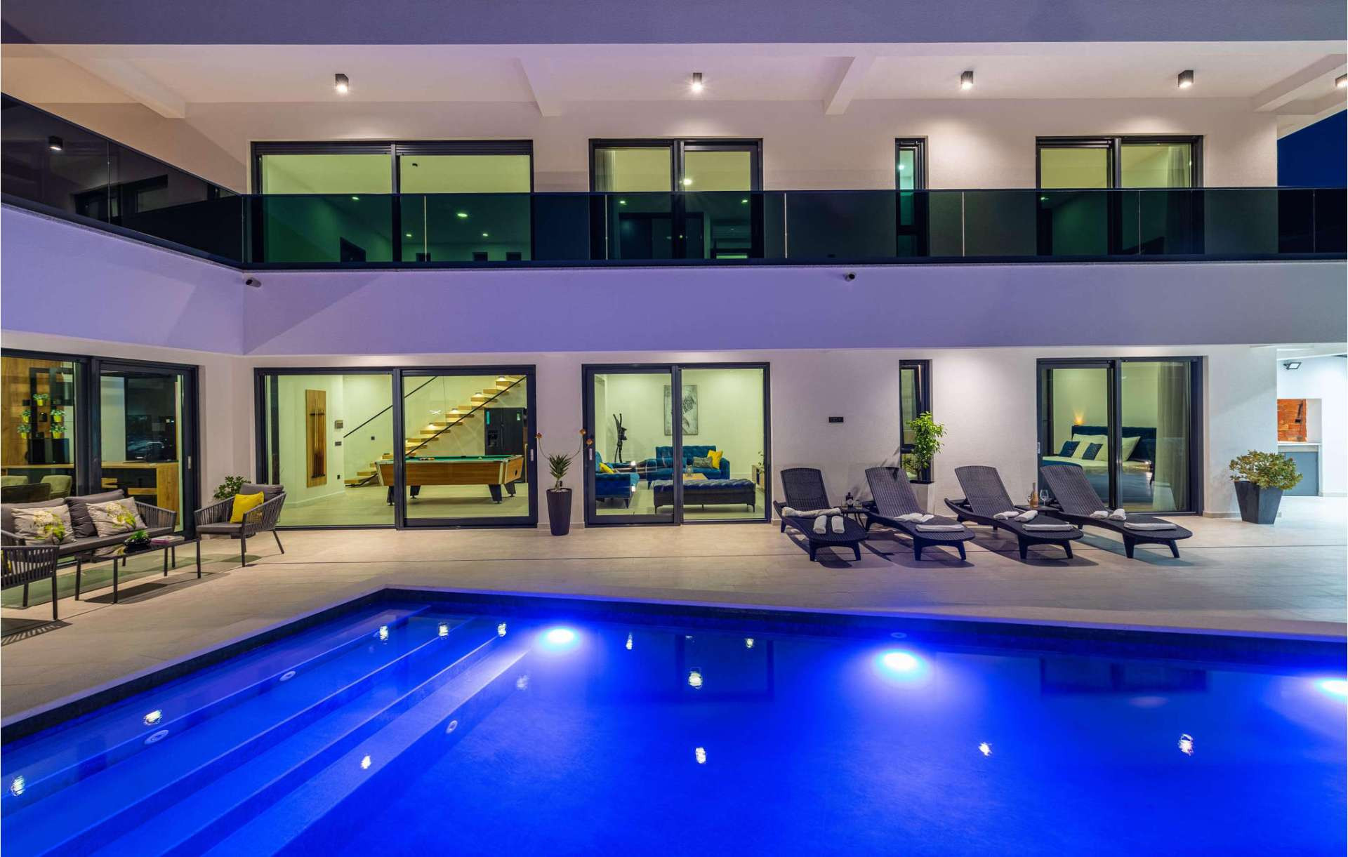 Villa Hill erstreckt sich über 260 m2 Wohnfläche auf einem 662 m2 großen Grundstück und bietet leichte Bewegungsfreiheit und einen ununterbrochenen Fluss dieses scheinbar endlosen Bereichs des eleganten, funktionalen und akribisch ausgearbeiteten Anwesens. Im Erdgeschoss der Villa befindet sich ein geräumiger, offener Wohn-, Ess- und Küchenbereich sowie ein Billardtisch und eine Spielkonsole für unterhaltsame Momente mit Freunden und Familie. Die Offenheit zum wunderschönen Poolbereich lässt Sie sich gleichzeitig drinnen und draußen fühlen.