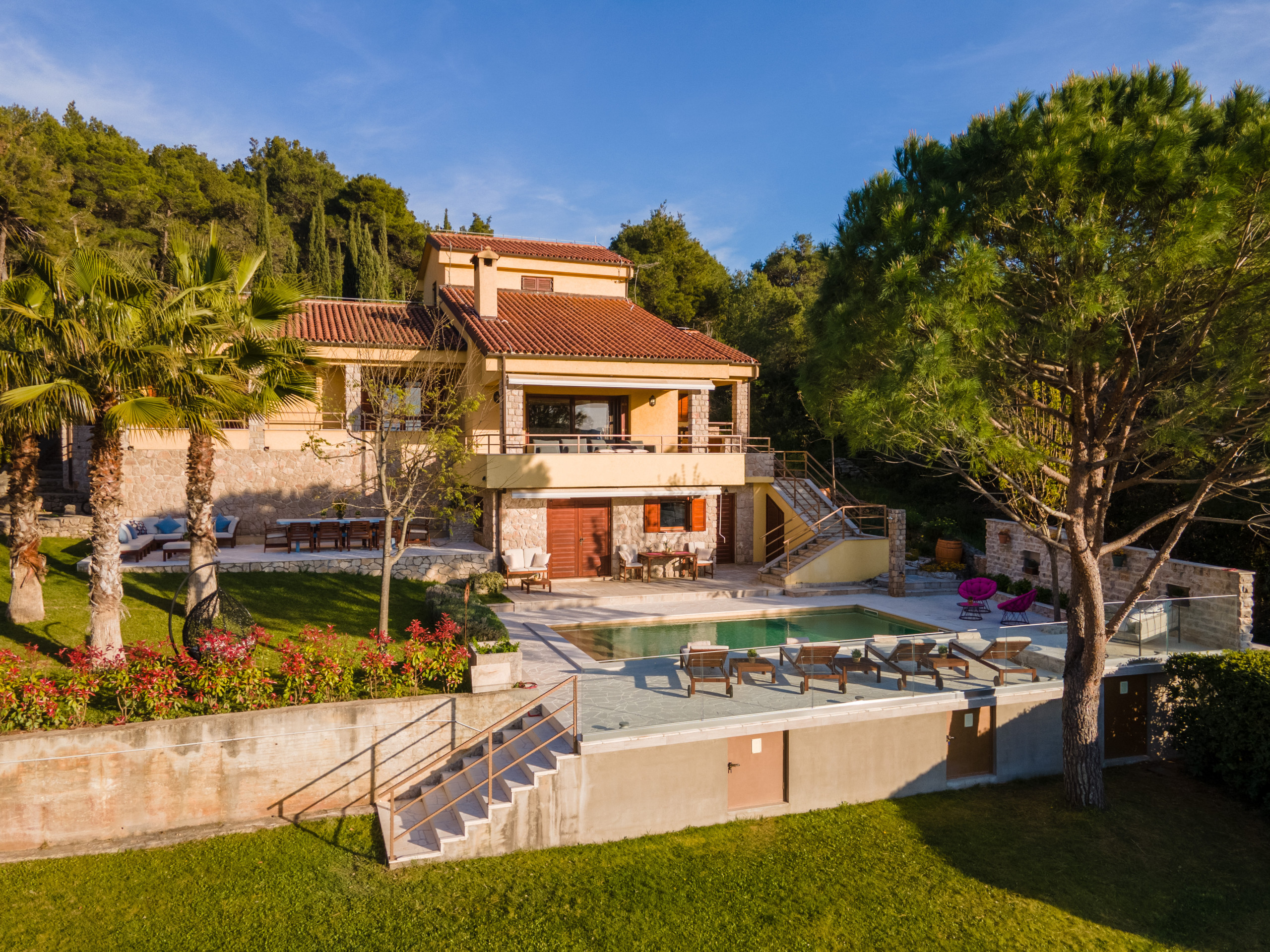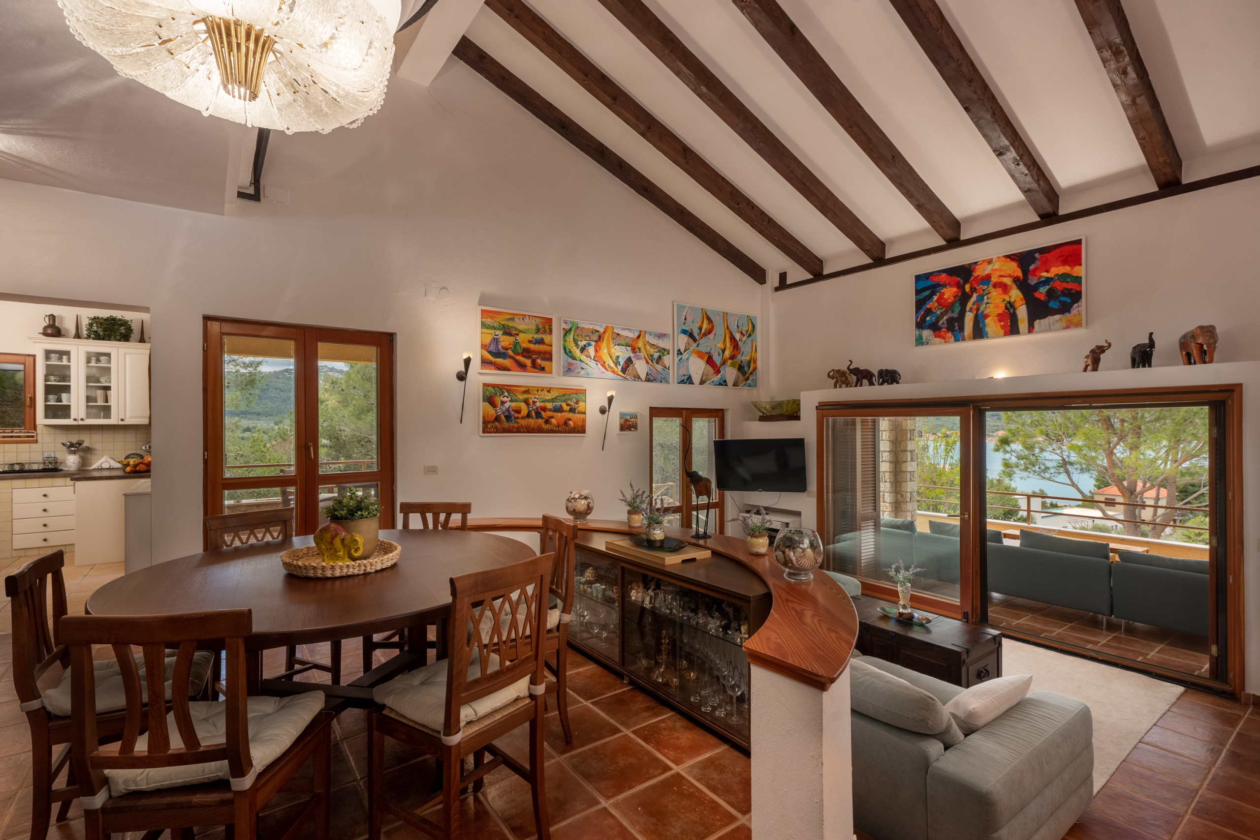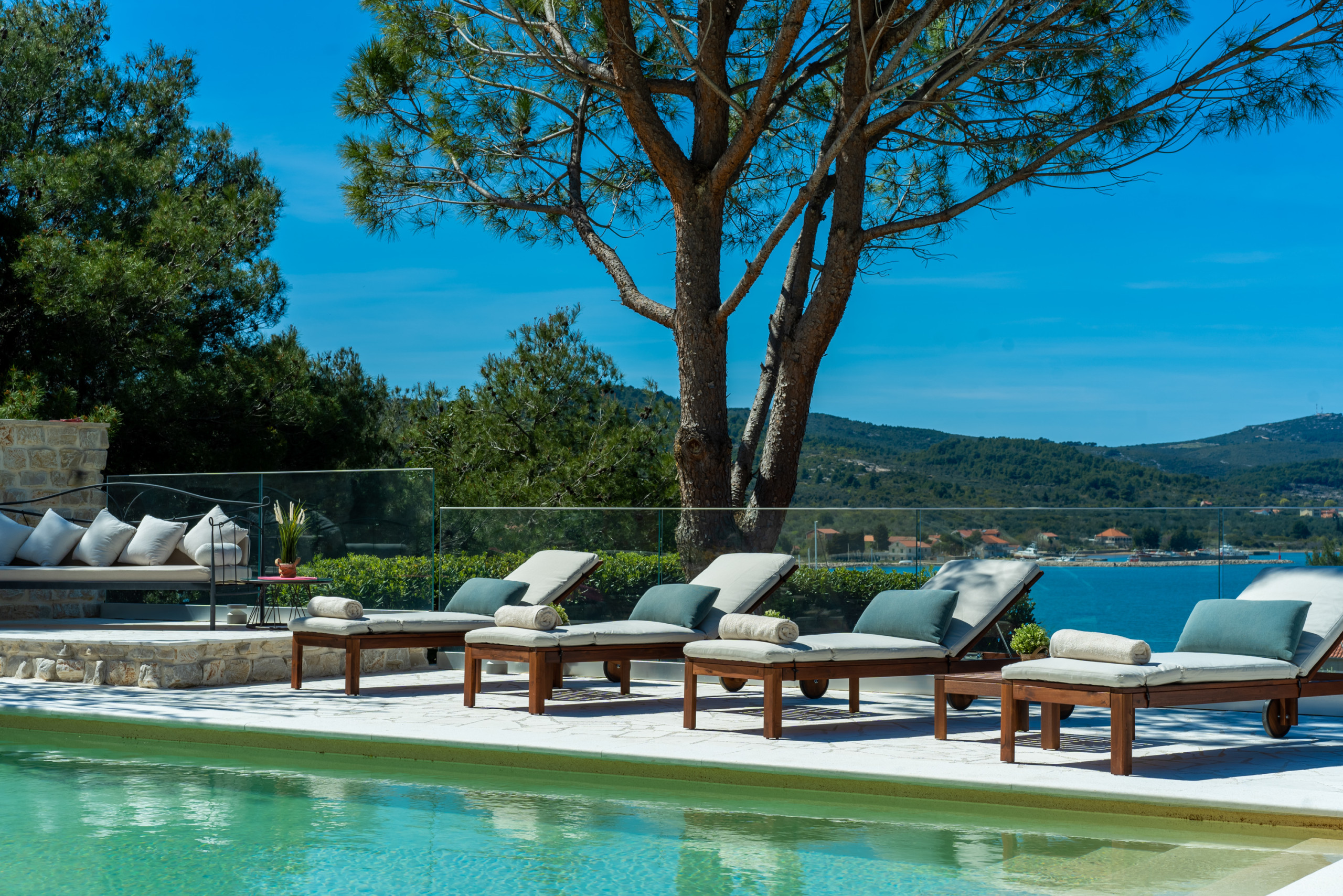 Mit 260 m² Wohnfläche bietet die Villa Platz für 6 bis 8 Personen. Drei voll klimatisierte Schlafzimmer, jeweils mit eigenem Bad en suite, sorgen für höchsten Komfort. Zwei Schlafzimmer verfügen über Doppelbetten, das dritte über zwei Einzelbetten, die bei Bedarf zusammengestellt werden können. Von den Zimmern im Erdgeschoss genießen Sie einen wunderschönen Meerblick. Auf der Galerie befindet sich zusätzlich ein Schlafsofa für zwei weitere Gäste – ideal für Familien oder Freundesgruppen. Das großzügige Wohnzimmer mit Kamin schafft auch in der kühleren Jahreszeit eine gemütliche Atmosphäre. Der Essbereich mit acht Sitzplätzen sowie die voll ausgestattete Küche laden zu gemeinsamen Genussmomenten ein. Ein besonderes Highlight ist die traditionelle dalmatinische Konoba – perfekt für die Zubereitung lokaler Spezialitäten und gesellige Abende bei einem guten Glas Wein.