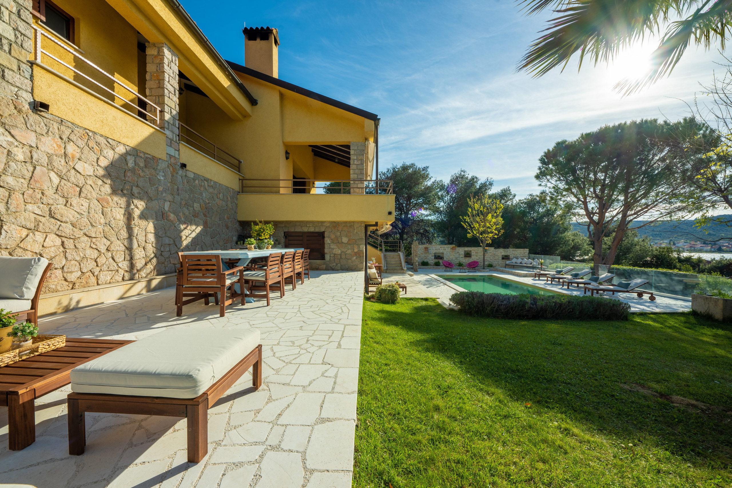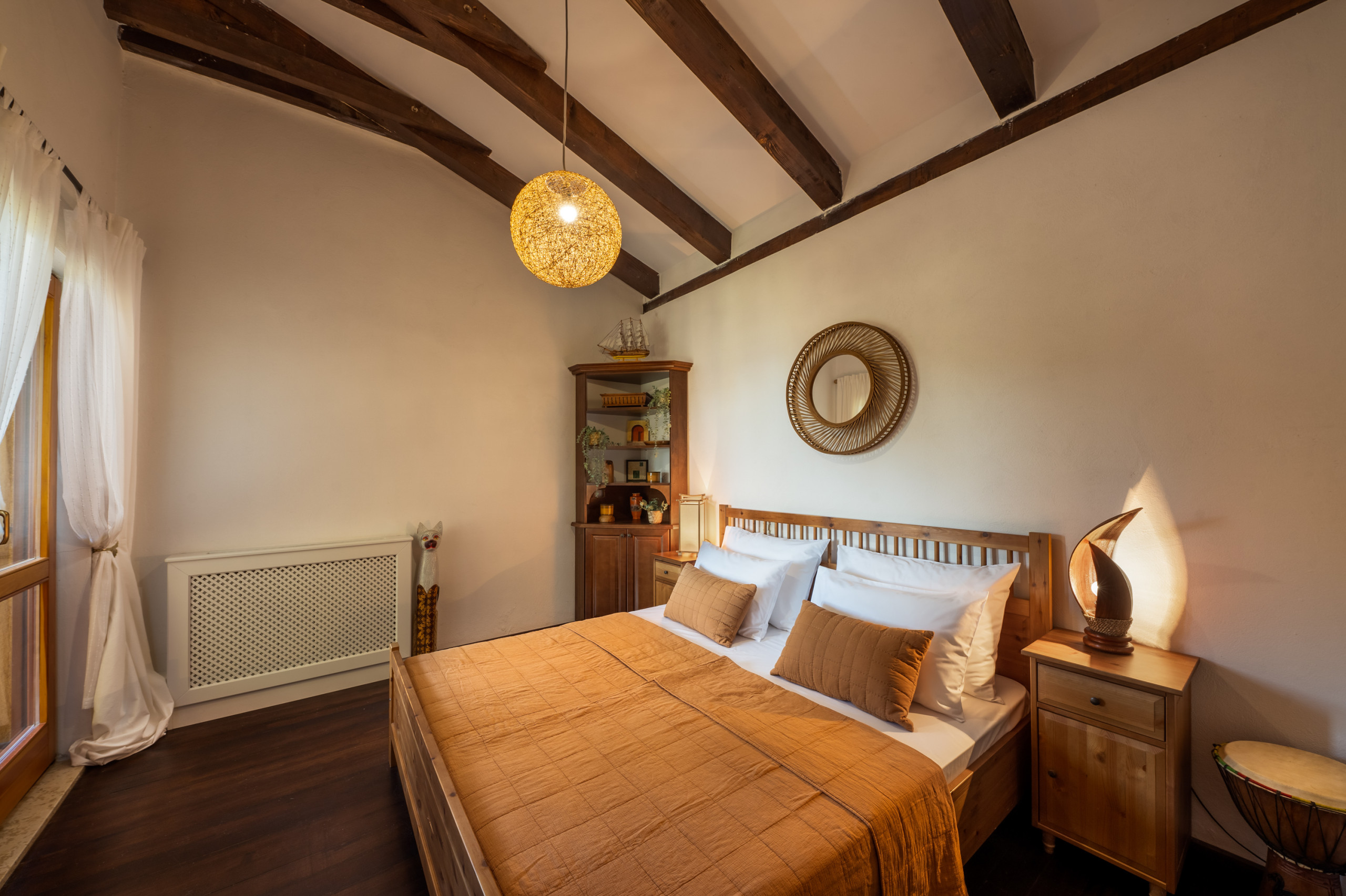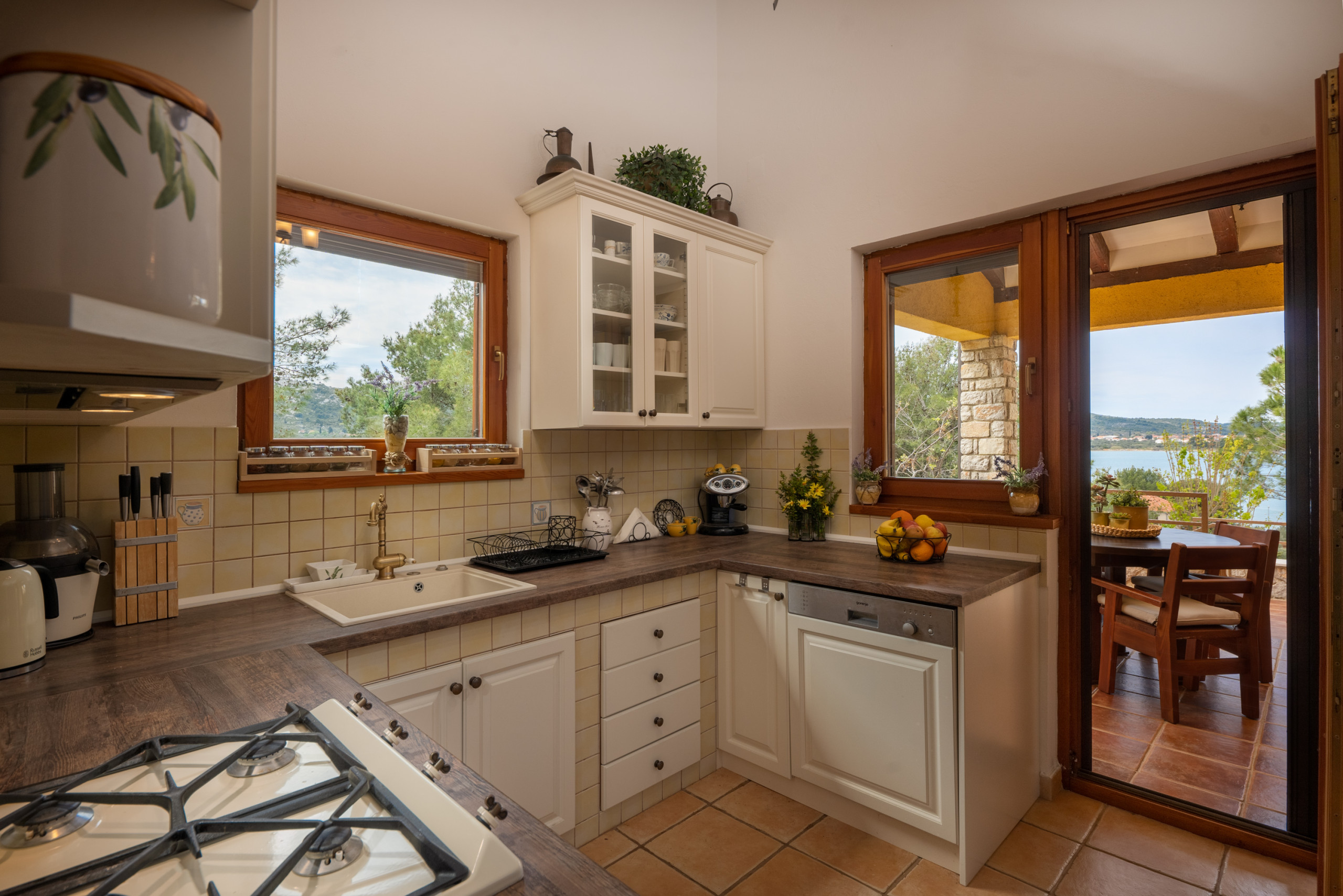 Mit 260 m² Wohnfläche bietet die Villa Platz für 6 bis 8 Personen. Drei voll klimatisierte Schlafzimmer, jeweils mit eigenem Bad en suite, sorgen für höchsten Komfort. Zwei Schlafzimmer verfügen über Doppelbetten, das dritte über zwei Einzelbetten, die bei Bedarf zusammengestellt werden können. Von den Zimmern im Erdgeschoss genießen Sie einen wunderschönen Meerblick. Auf der Galerie befindet sich zusätzlich ein Schlafsofa für zwei weitere Gäste – ideal für Familien oder Freundesgruppen. Das großzügige Wohnzimmer mit Kamin schafft auch in der kühleren Jahreszeit eine gemütliche Atmosphäre. Der Essbereich mit acht Sitzplätzen sowie die voll ausgestattete Küche laden zu gemeinsamen Genussmomenten ein. Ein besonderes Highlight ist die traditionelle dalmatinische Konoba – perfekt für die Zubereitung lokaler Spezialitäten und gesellige Abende bei einem guten Glas Wein.