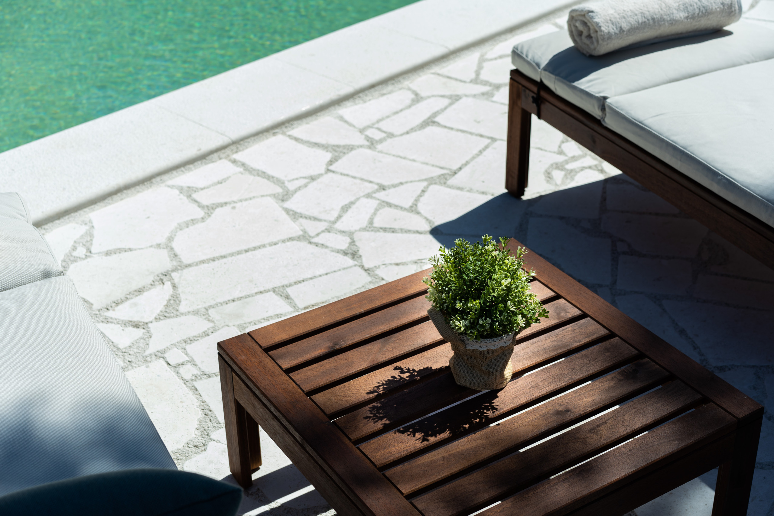 Im gepflegten Außenbereich erwartet Sie ein 48 m² großer beheizter Pool, der während der gesamten Saison zum Entspannen einlädt. Das Anwesen ist von Natursteinmauern umgeben und bietet somit ein hohes Maß an Privatsphäre. Drei private Parkplätze stehen innerhalb des Grundstücks zur Verfügung, zusätzliche Außenstellplätze bei Bedarf. Für Kinder gibt es einen großzügigen Spielbereich mit Schaukeln und Rutschen.