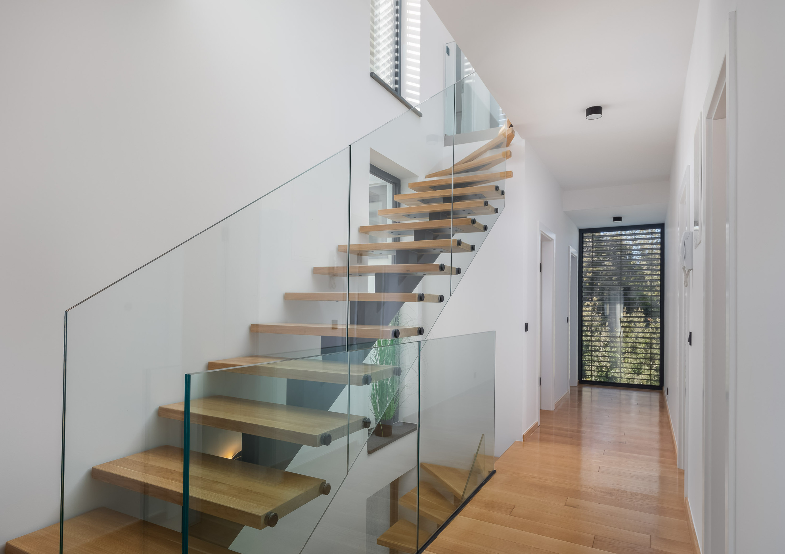 Im zweiten Stock befindet sich das Schlafzimmer mit eigenem Bad und Terrasse. Es verfügt außerdem über eine kleine, komplett ausgestattete Küchenzeile und zusätzliche Sanitäreinrichtungen. Im ersten Stock gibt es drei Zimmer, von denen eines mit einem privaten Bad ausgestattet ist.