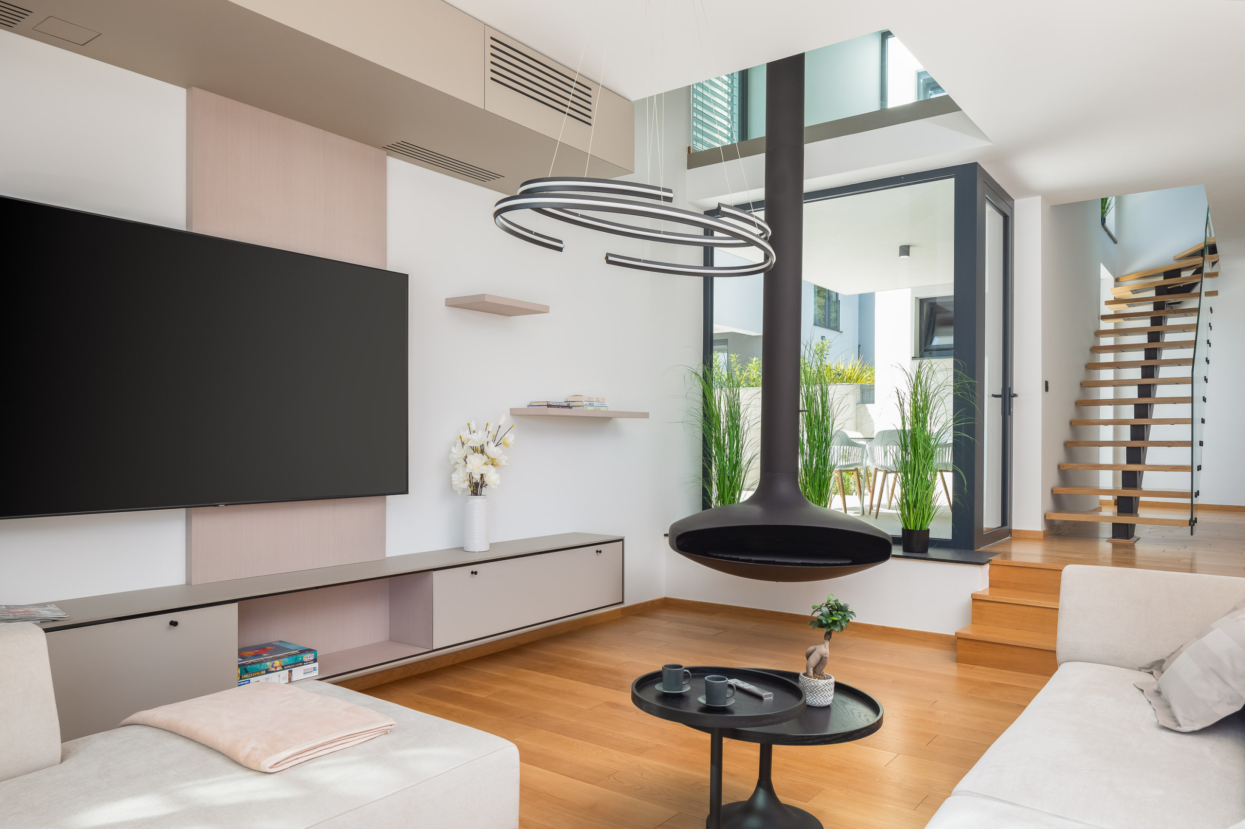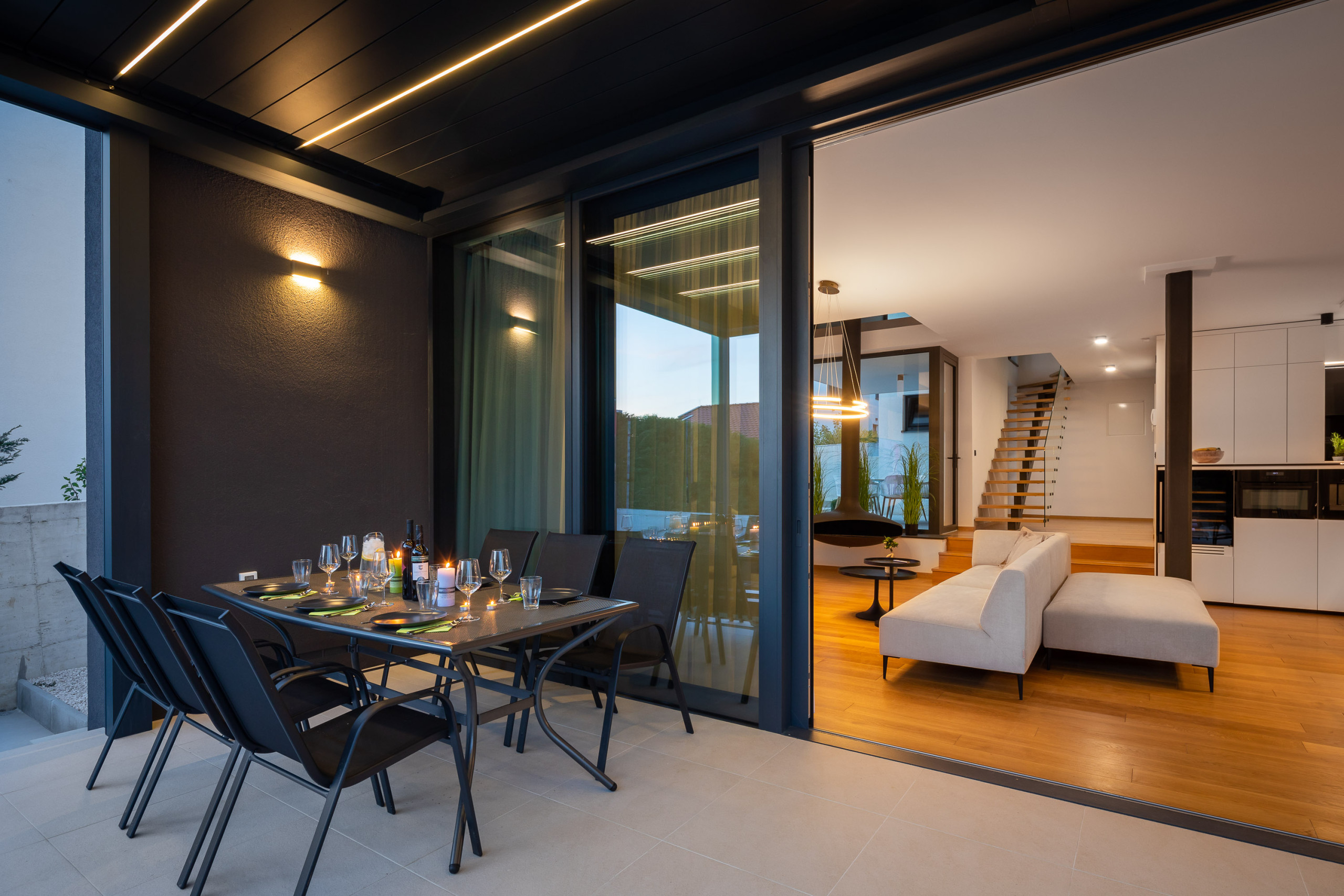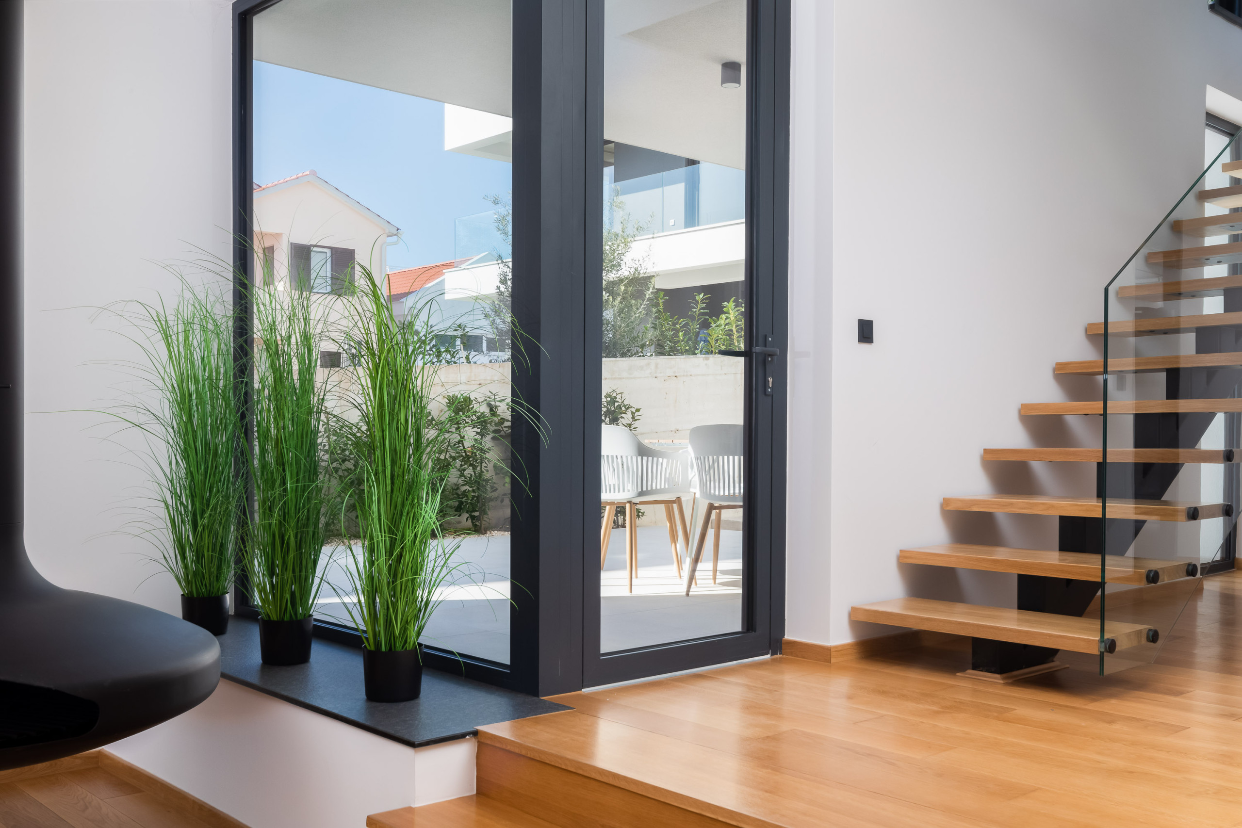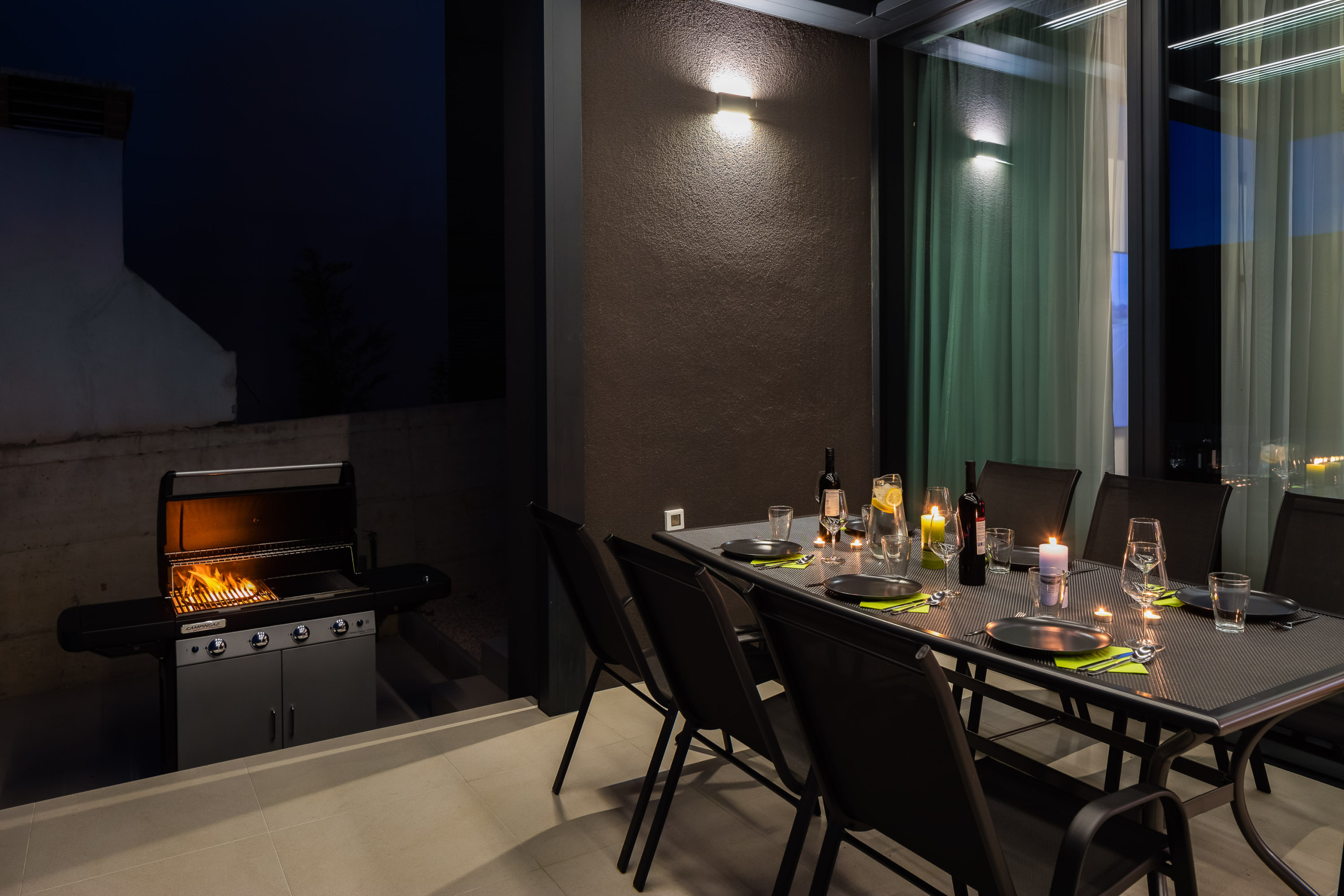 Die weitläufige Terrasse mit einem imposanten, beheizten Whirlpool von 26 m² und bequemen Sonnenliegen lädt Sie ein, sich zu entspannen und die ruhige mediterrane Atmosphäre zu genießen. Mit einem Außengrill ausgestattet, ist die Terrasse perfekt, um sich zu treffen und die frische Luft zu genießen.
