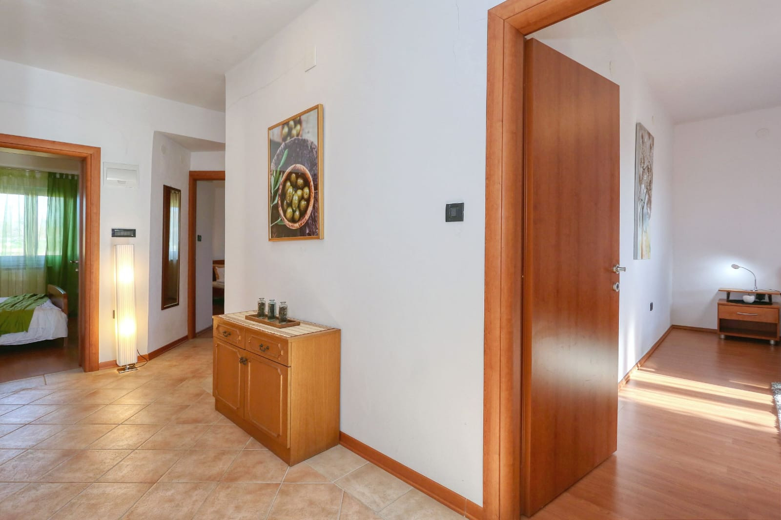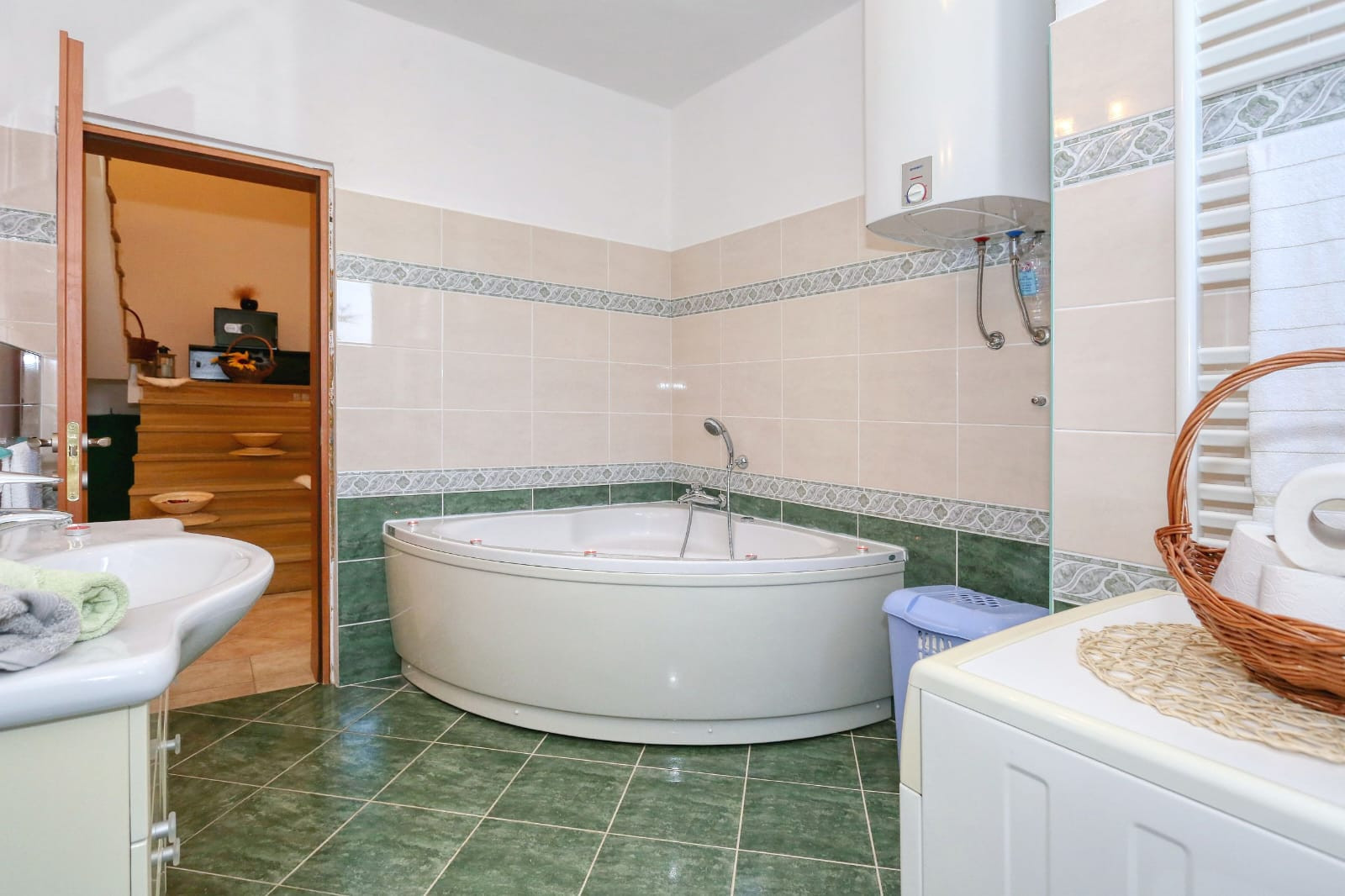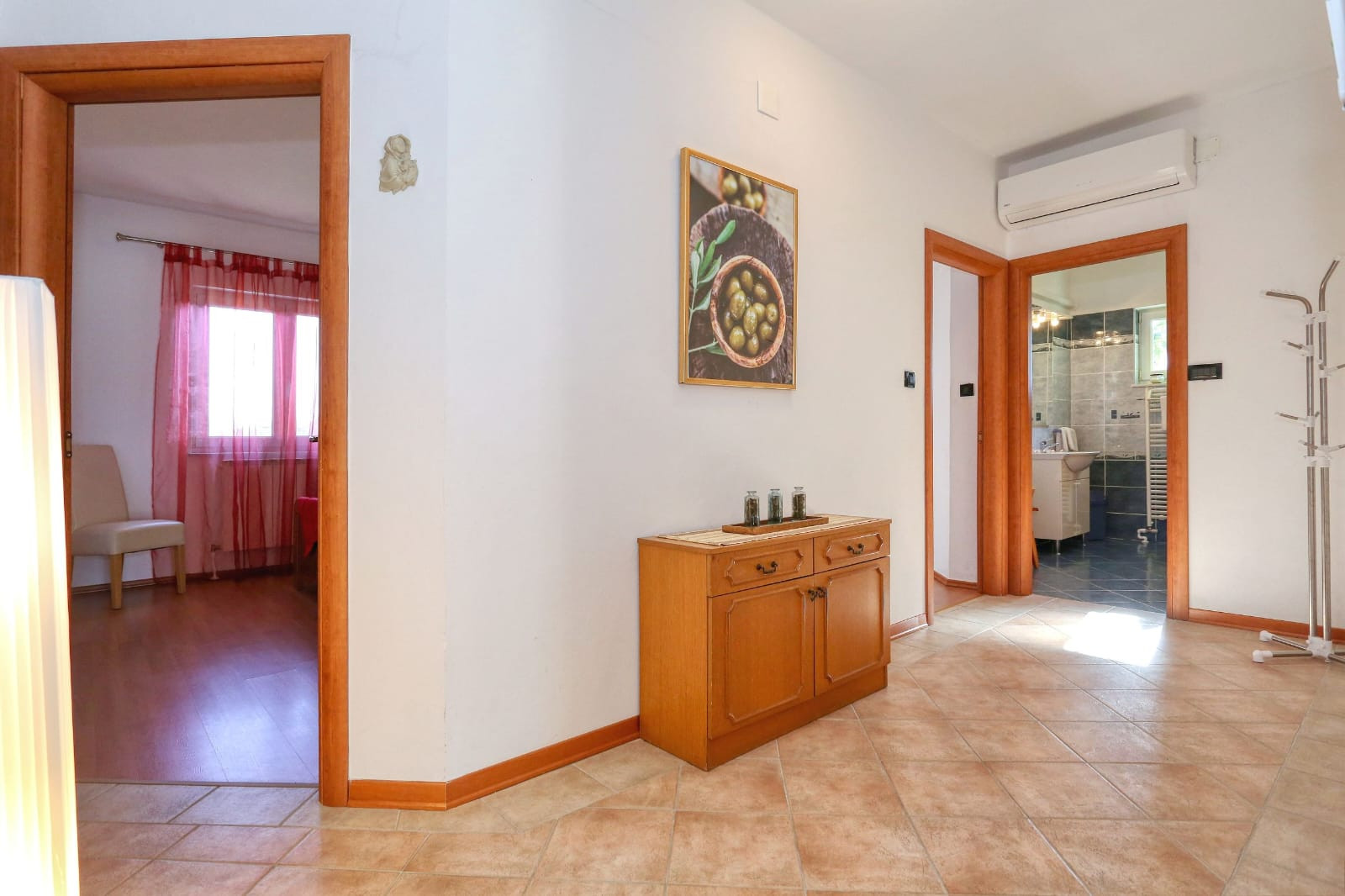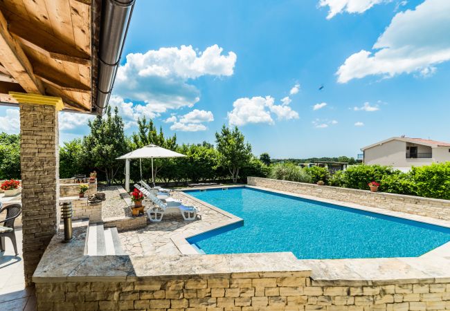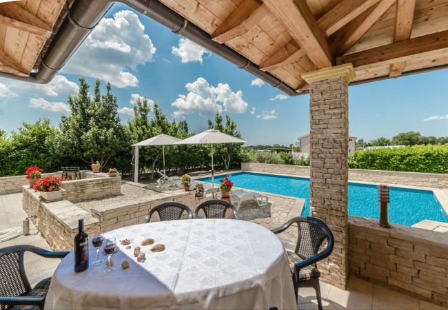 Der Innenbereich der Villa Ana erstreckt sich über 289 Quadratmeter und bietet Platz für 10 Gäste in fünf wunderschön eingerichteten, luftigen Schlafzimmern mit Doppelbetten. Ergänzend zu diesen Schlafzimmern gibt es drei Badezimmer – eines mit Badewanne und das andere mit belebenden Duschen – sowie eine separate Toilette. Die offene Fläche der Villa Ana beherbergt eine voll ausgestattete Küche, einen Essbereich und einen komfortablen Wohnbereich. Die mit allen wichtigen Utensilien und Geräten ausgestattete Küche bietet ausreichend Arbeitsfläche für kulinarische Unternehmungen. Ein charmantes Esszimmer mit einem Glastisch für 10 Personen lädt zum geselligen Beisammensein bei köstlichen Mahlzeiten ein, während der exquisite Wohnbereich mit Sofa und Sat-TV den idealen Rahmen für Entspannung und Unterhaltung bietet. Es gibt 5 Klimaanlagen