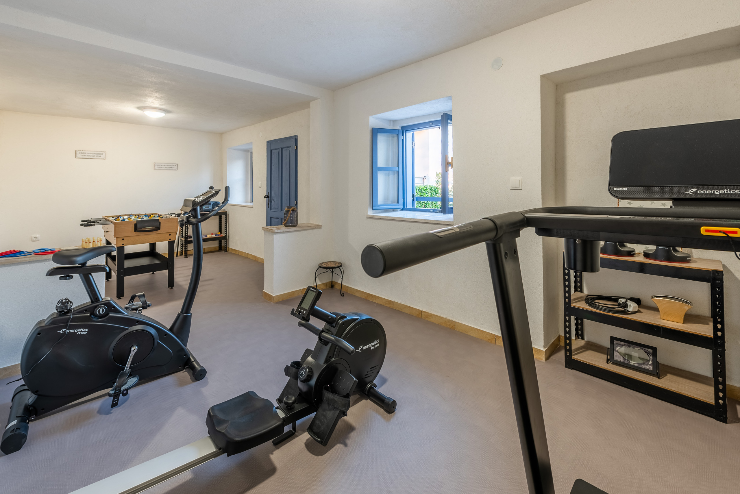 Die Küche ist vollständig ausgestattet mit allen notwendigen Geräten und Geschirr zur Zubereitung von Mahlzeiten, während verschiedene Unterhaltungsmöglichkeiten dafür sorgen, dass Ihre Zeit in der Villa mit Lachen und Spaß erfüllt ist. Mit Gesellschaftsspielen, 2 Fahrrädern, Netflix, Tischfußball, einem kleinen Billardtisch, Schach und einem Fitnessraum mit Laufband und Heimtrainer ist Spaß für jedes Alter garantiert.
