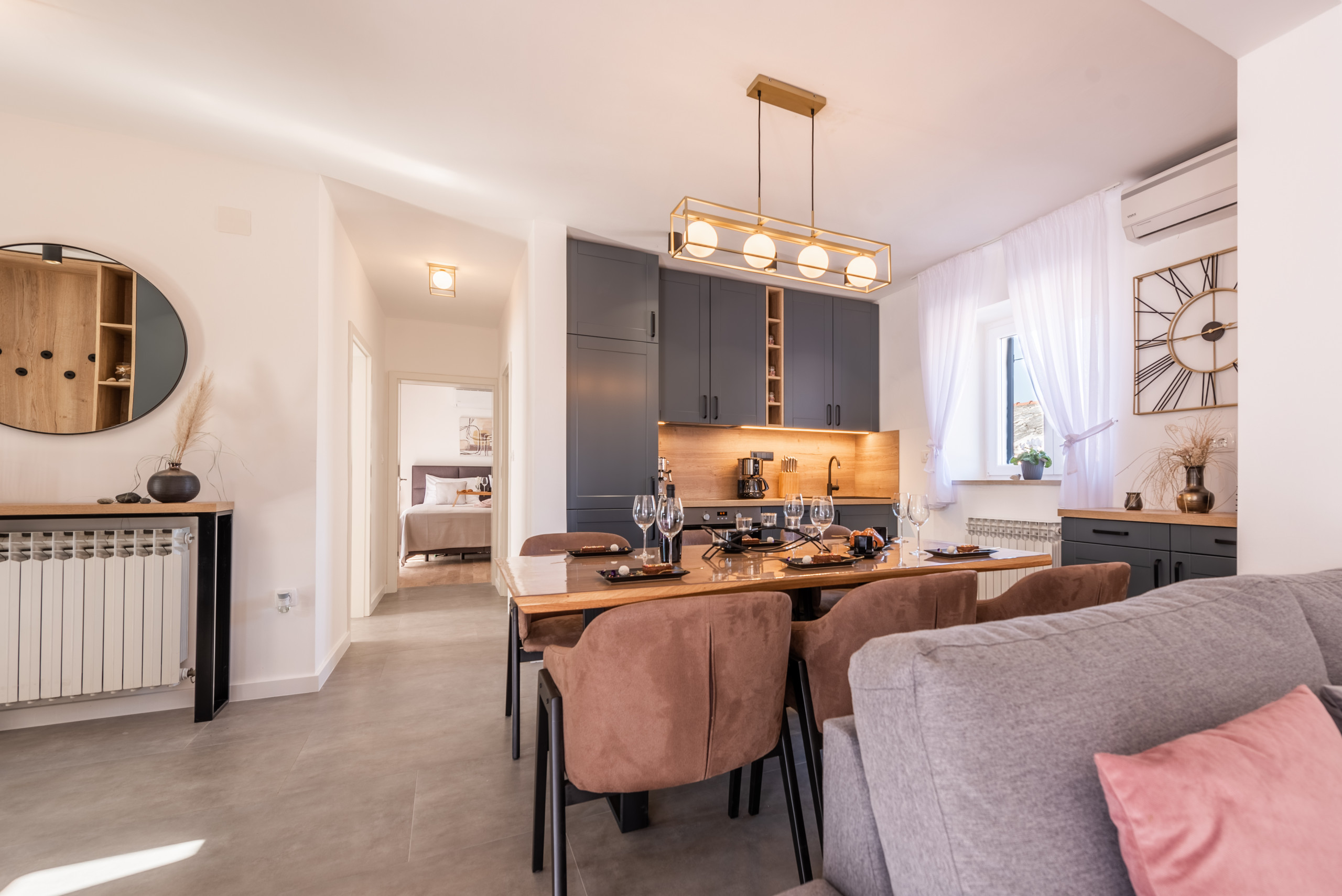 Jedes Schlafzimmer ist mit modernen Annehmlichkeiten wie Klimaanlage, Fernseher und Safe ausgestattet, um Ihren Aufenthalt so angenehm wie möglich zu gestalten. Die Villa verfügt über zwei luxuriöse Badezimmer mit Duschen, die sowohl Komfort als auch Funktionalität garantieren. Für völlige Entspannung steht ein beheizter Hydro-Massage-Pool zur Verfügung, ideal zum Entspannen in jeder Jahreszeit. Außerdem können Sie sich mit der Außendusche an der frischen Luft erfrischen, während der wunderschöne dalmatinische Weinkeller einen perfekten Raum bietet, um die authentische Atmosphäre zu genießen.