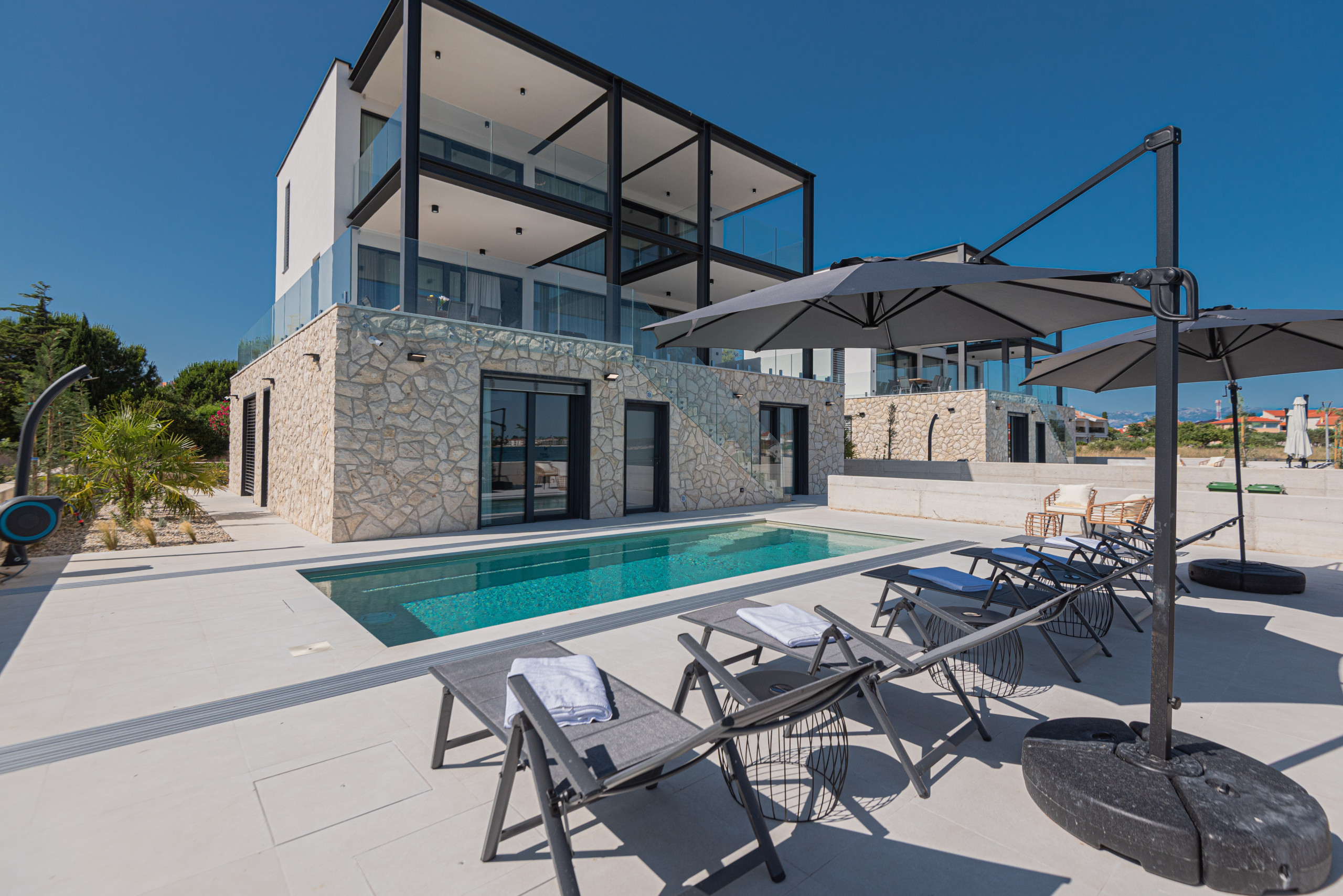 Die Villa Serena ist eine brandneue, exklusive Villa aus dem Jahr 2025 in atemberaubender Lage direkt am Meer in Privlaka – nur 10 Meter von der kristallklaren Adria entfernt. Geräumig und stilvoll eingerichtet, ist diese Villa die perfekte Wahl für einen Familienurlaub, einen erholsamen Kurzurlaub mit Freunden oder eine romantische Auszeit. Sie bietet absolute Privatsphäre, außergewöhnlichen Komfort und einen atemberaubenden Meerblick von fast jedem Zimmer aus.