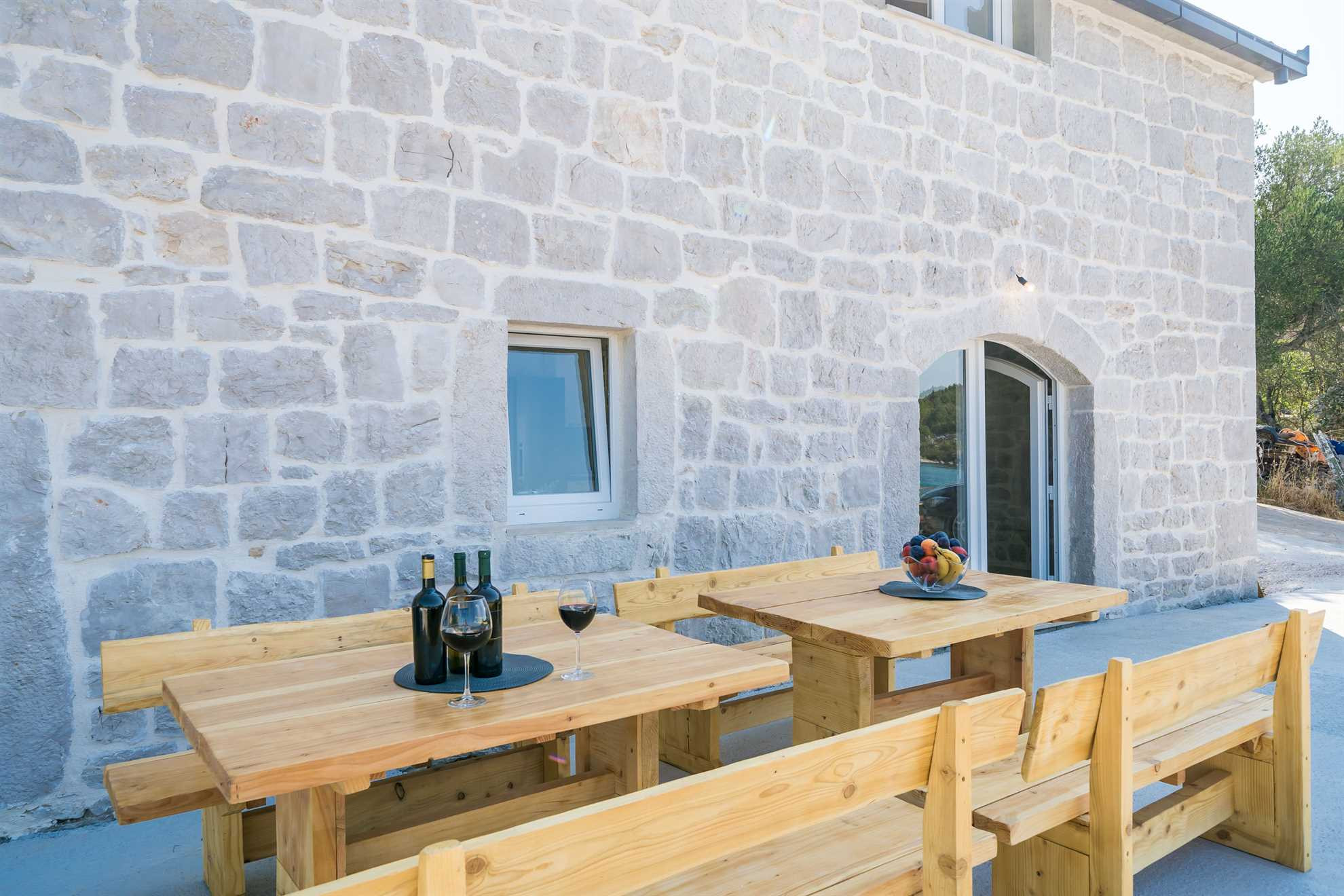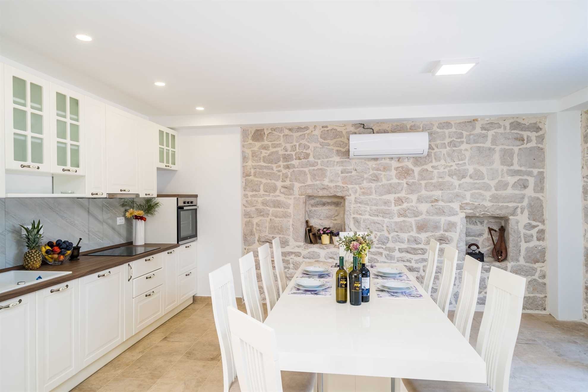 Diese außergewöhnliche Villa liegt direkt am Strand und wird Sie mit ihrer einzigartigen Kombination aus Geschichte, Komfort und perfekter Lage begeistern. Die 130 Jahre alte, traditionelle dalmatinische Olivenmühle wurde sorgfältig renoviert und in eine luxuriöse Steinvilla umgewandelt, die Platz für bis zu 10 Personen bietet.