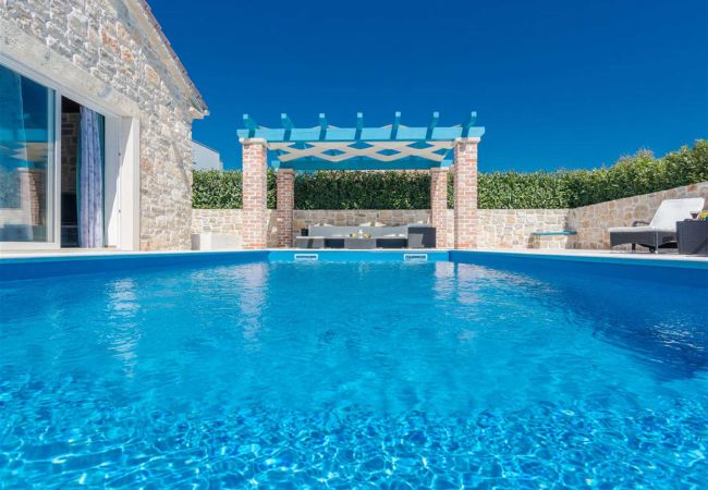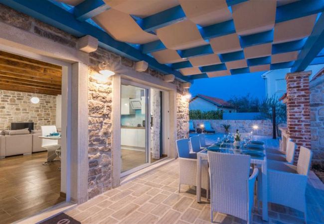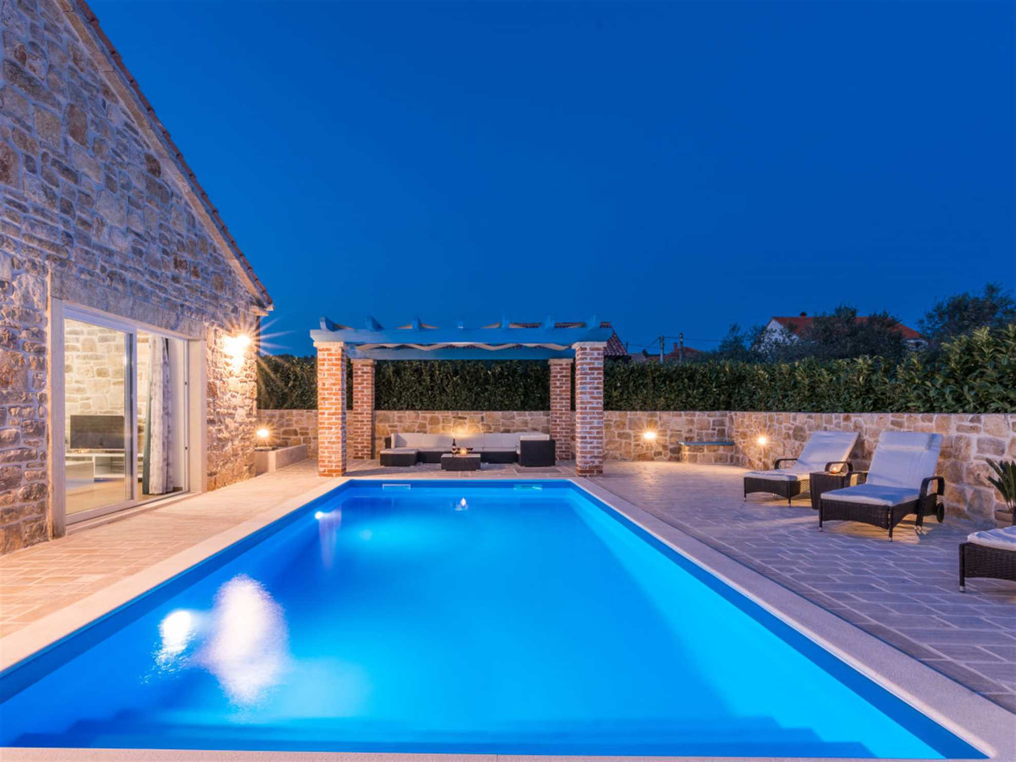 Diese charmante Steinvilla befindet sich in Sukošan in der Gespanschaft Zadar, nur einen kurzen Spaziergang vom Meer entfernt. Die im traditionellen Stil erbaute Villa besticht durch ihre wunderschöne Steinarchitektur, die ihr einen einzigartigen Charakter und ein authentisches mediterranes Flair verleiht. Auf 100 m² bietet sie zwei komfortable Doppelzimmer, zwei Badezimmer und einen offenen Wohnbereich mit voll ausgestatteter Küche, Essbereich und gemütlichem Wohnzimmer. Vom Wohnzimmer aus gelangt man direkt in den privaten Garten mit beheiztem Pool, der das ganze Jahr über zum Entspannen einlädt. Im Garten befindet sich außerdem ein schöner Außenkamin, der sich ideal für gesellige Abende oder die Zubereitung traditioneller dalmatinischer Gerichte eignet. Das gesamte Grundstück ist komplett eingezäunt und von einem wunderschön angelegten Garten mit leuchtenden Blumen und Olivenbäumen umgeben, der Ruhe, Privatsphäre und eine echte Urlaubsatmosphäre bietet. Gäste profitieren von kostenlosem WLAN und Privatparkplätzen. Ein kleines Haustier ist auf Anfrage willkommen.