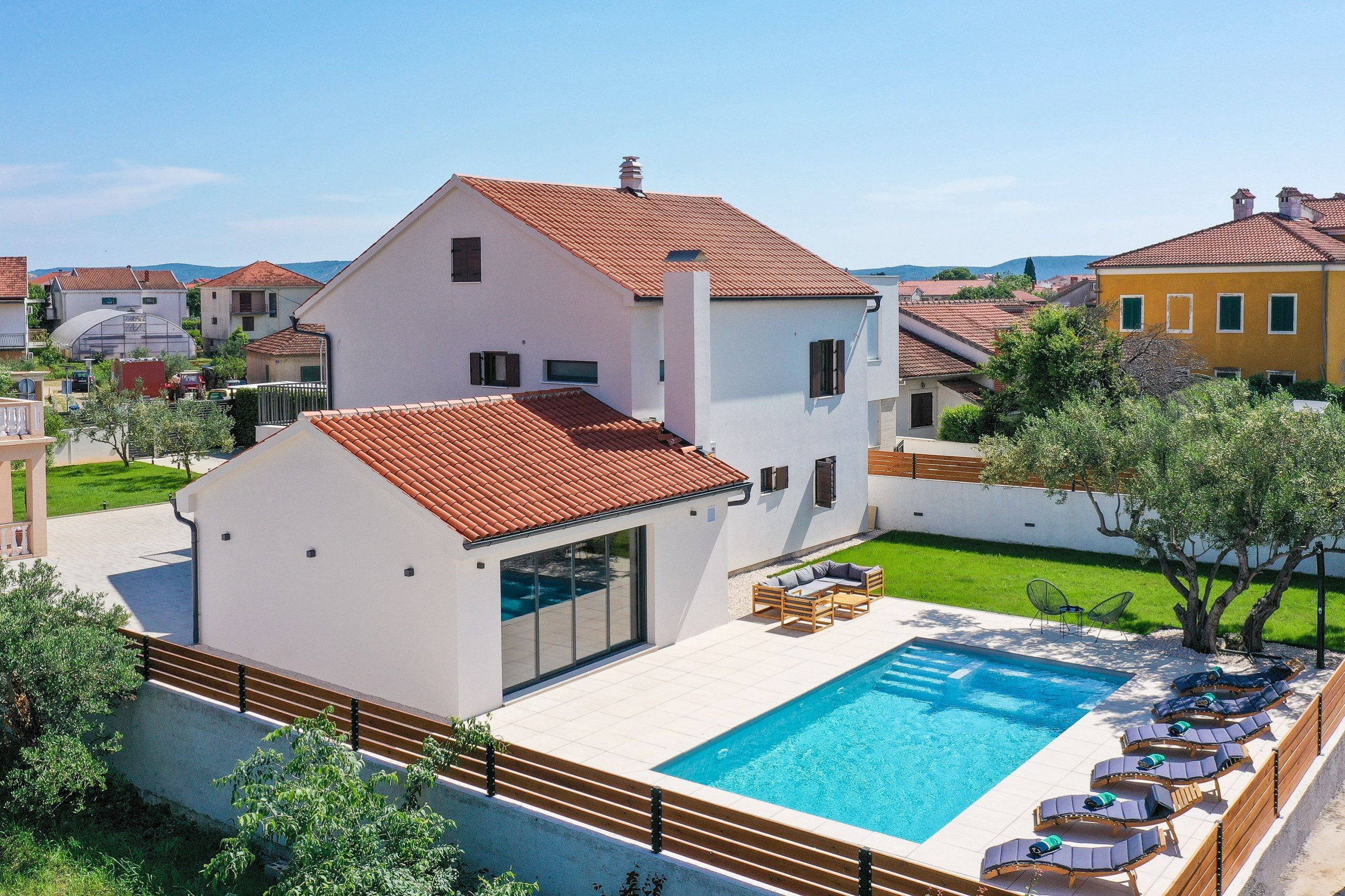 Zadar mit seiner reichen Geschichte, seinen Restaurants und Sehenswürdigkeiten ist nur 10 Autominuten entfernt. In der Nähe befinden sich außerdem zahlreiche Nationalparks – Kornati, Krka, Paklenica und die Plitvicer Seen. Hier können Sie zwischen absoluter Ruhe und Abenteuer wählen und jeden Moment des mediterranen Lebens genießen.