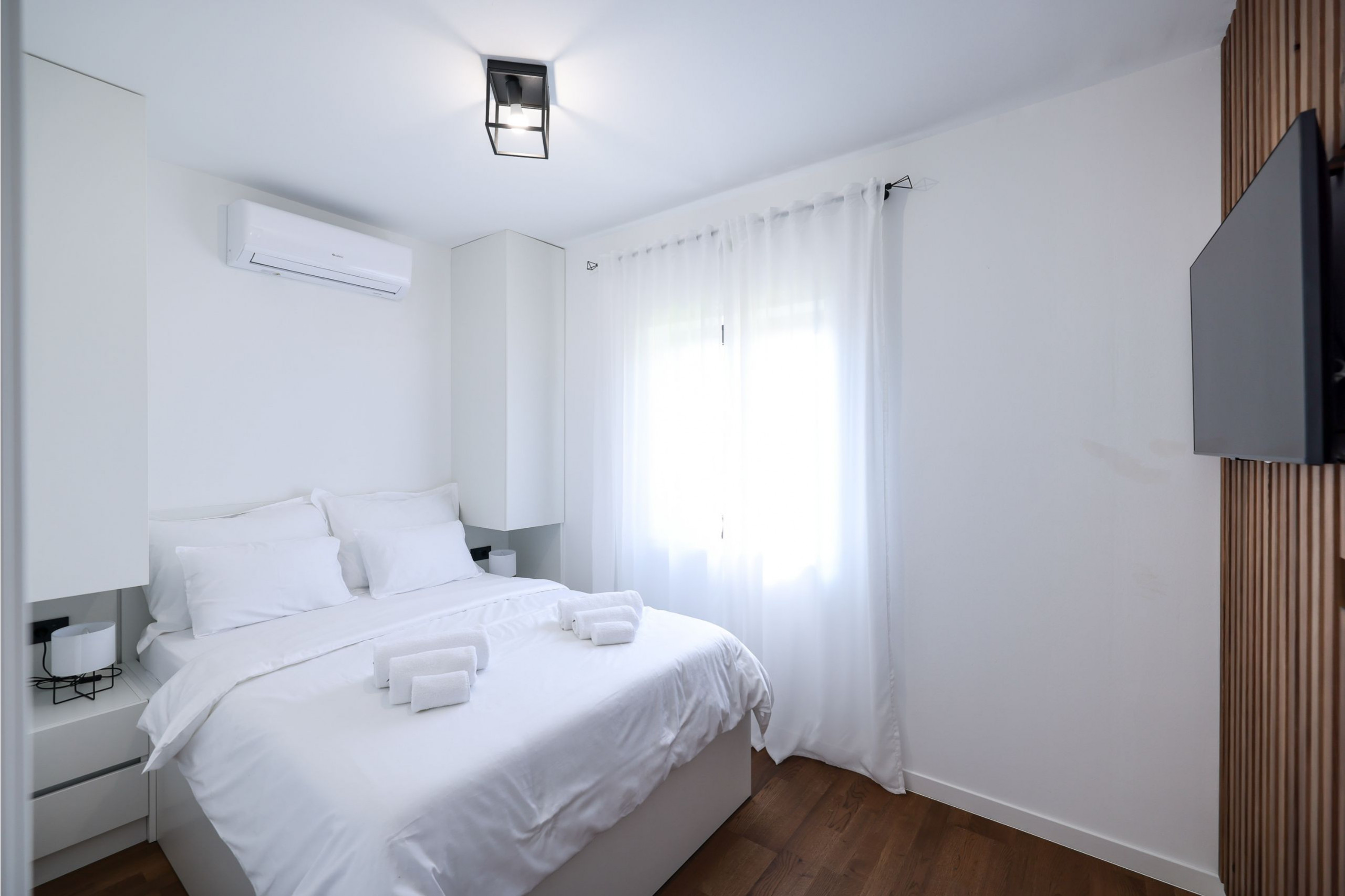 Gäste haben Zugang zu allen modernen Annehmlichkeiten, die für einen sorgenlosen und angenehmen Aufenthalt benötigt werden, einschließlich Geschirrspüler, Waschmaschine, Klimaanlage, Satelliten-TV und kostenlosem WLAN.