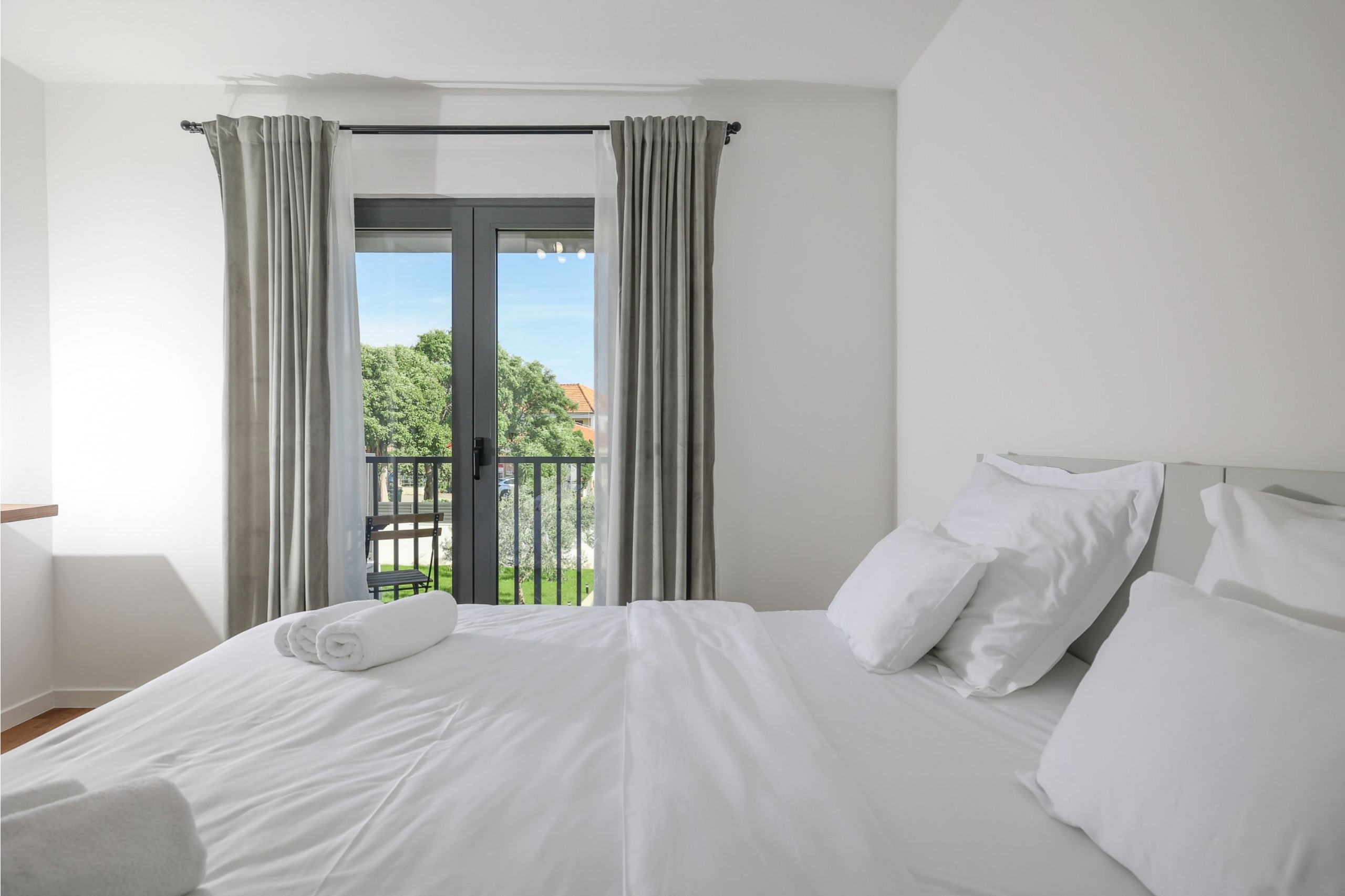 Auf der ersten Etage befinden sich zwei sehr geräumige Doppelzimmer mit extra großen Betten, jedes mit eigenem Bad, eines mit Dusche und eines mit Badewanne. Beide Schlafzimmer haben einen eigenen Balkon.