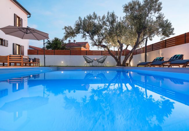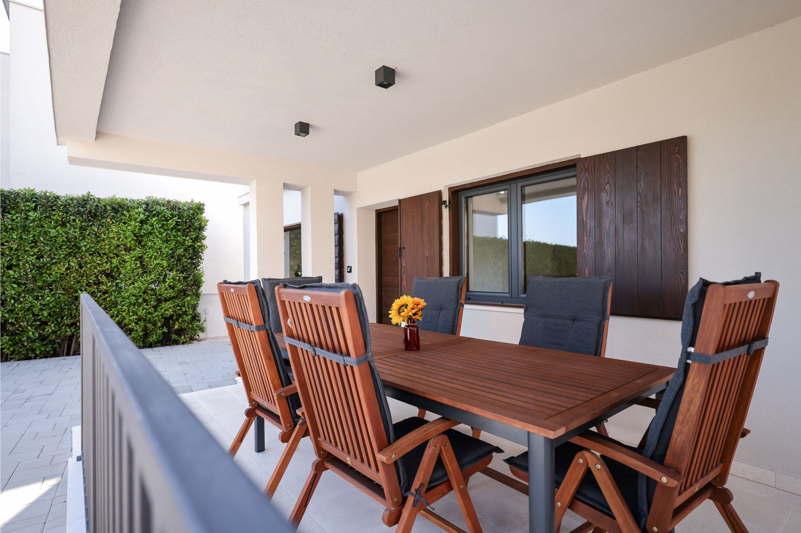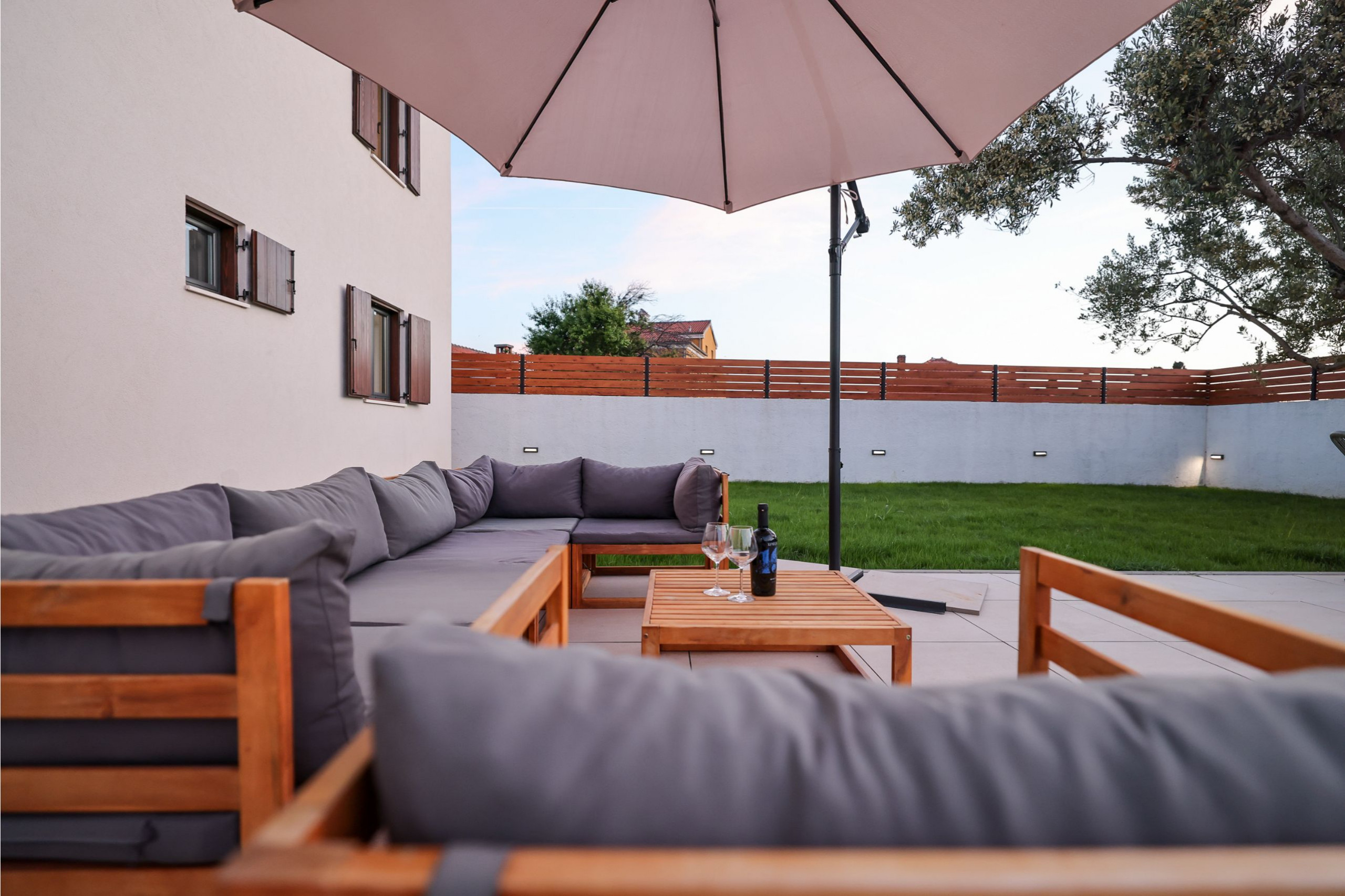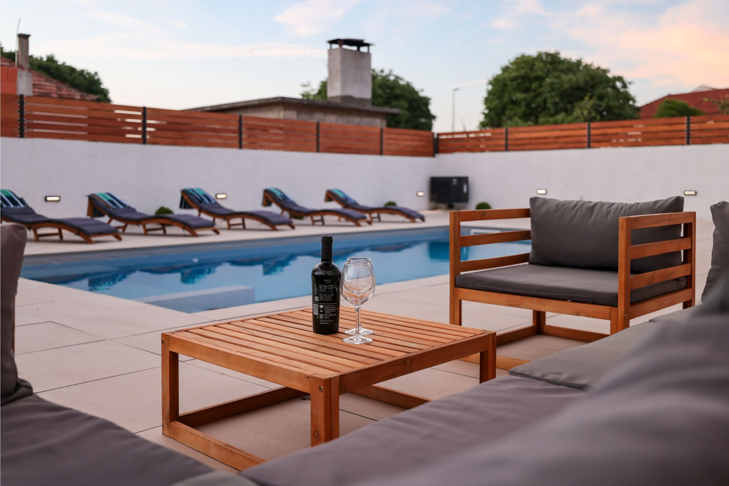 Der Außenbereich der Villa ist gleichermaßen einladend. Der Garten ist vollständig eingezäunt und bietet Privatsphäre und Sicherheit, insbesondere für Familien mit Kindern oder Haustieren. Im Herzen des Gartens befindet sich ein beheizter Swimmingpool (32 m²), der von Sonnenliegen umgeben ist. Es gibt auch eine Outdoor-Dusche neben dem Pool und eine überdachte Terrasse mit bequemen Outdoor-Möbeln - perfekt, um den Morgenkaffee zu genießen oder im Freien zu speisen. Ein Grillbereich steht Gästen zur Verfügung, die gerne im Freien kochen und essen.