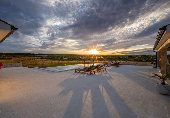 Der Außenbereich ist besonders einladend und bietet eine große Terrasse mit Bar und Blick auf den Pool. Zur Verfügung stehen ein Grill, ein Essbereich im Freien, ein beheizter Whirlpool sowie Sonnenliegen. Kinder können sich auf dem Spielplatz vergnügen, während Erwachsene Tischfußball spielen oder traditionelles dalmatinisches Boccia genießen.