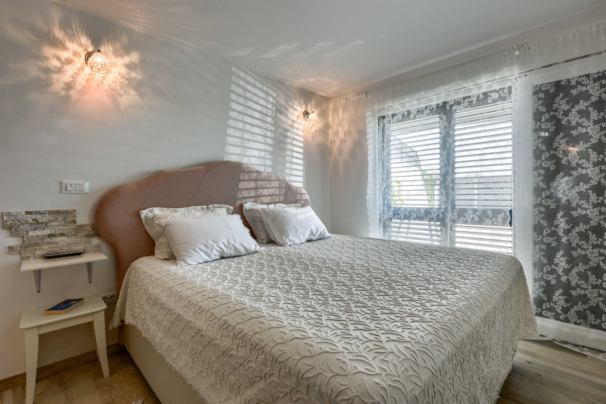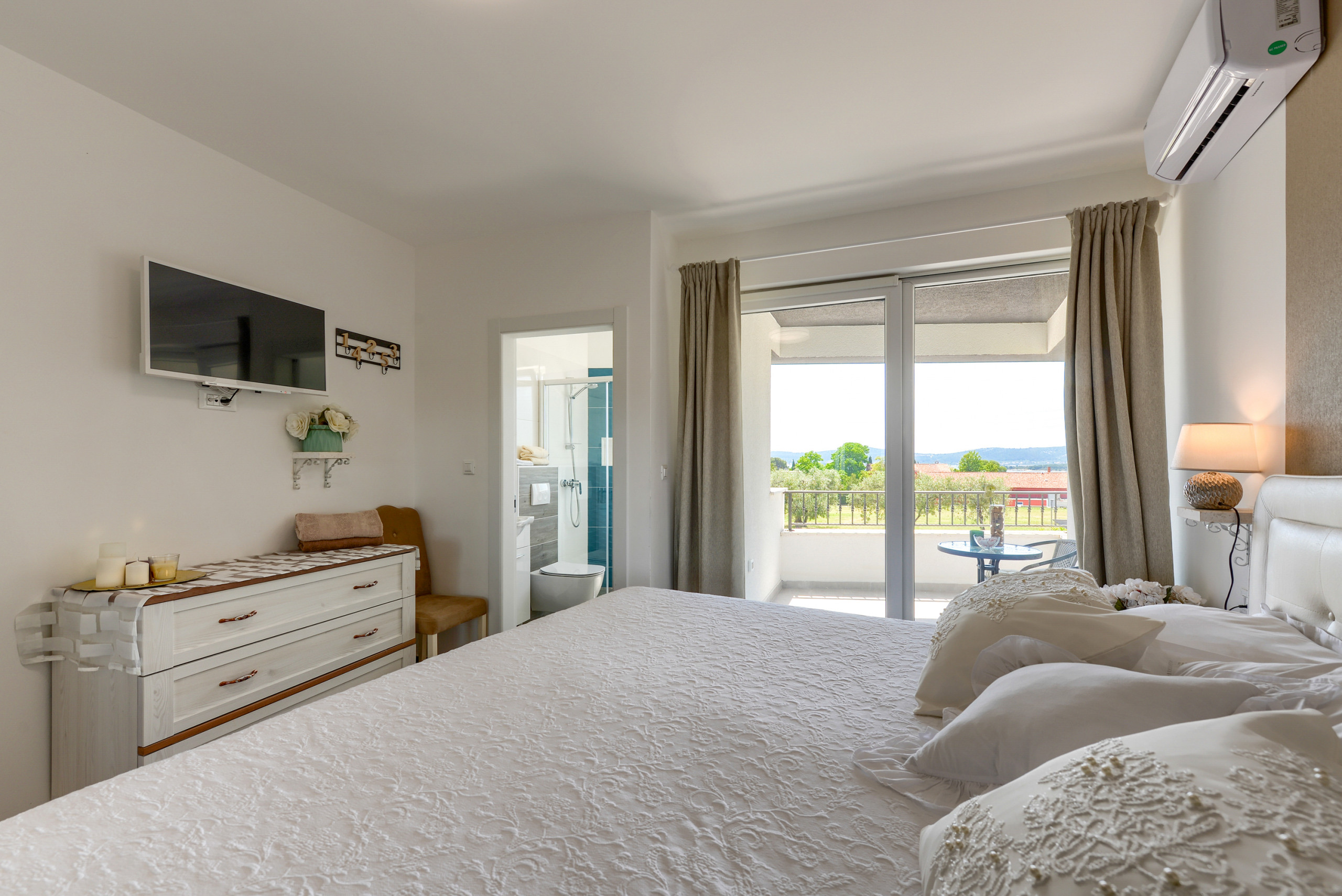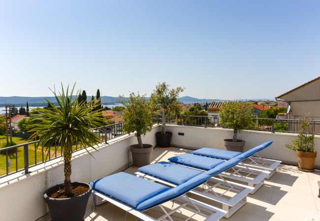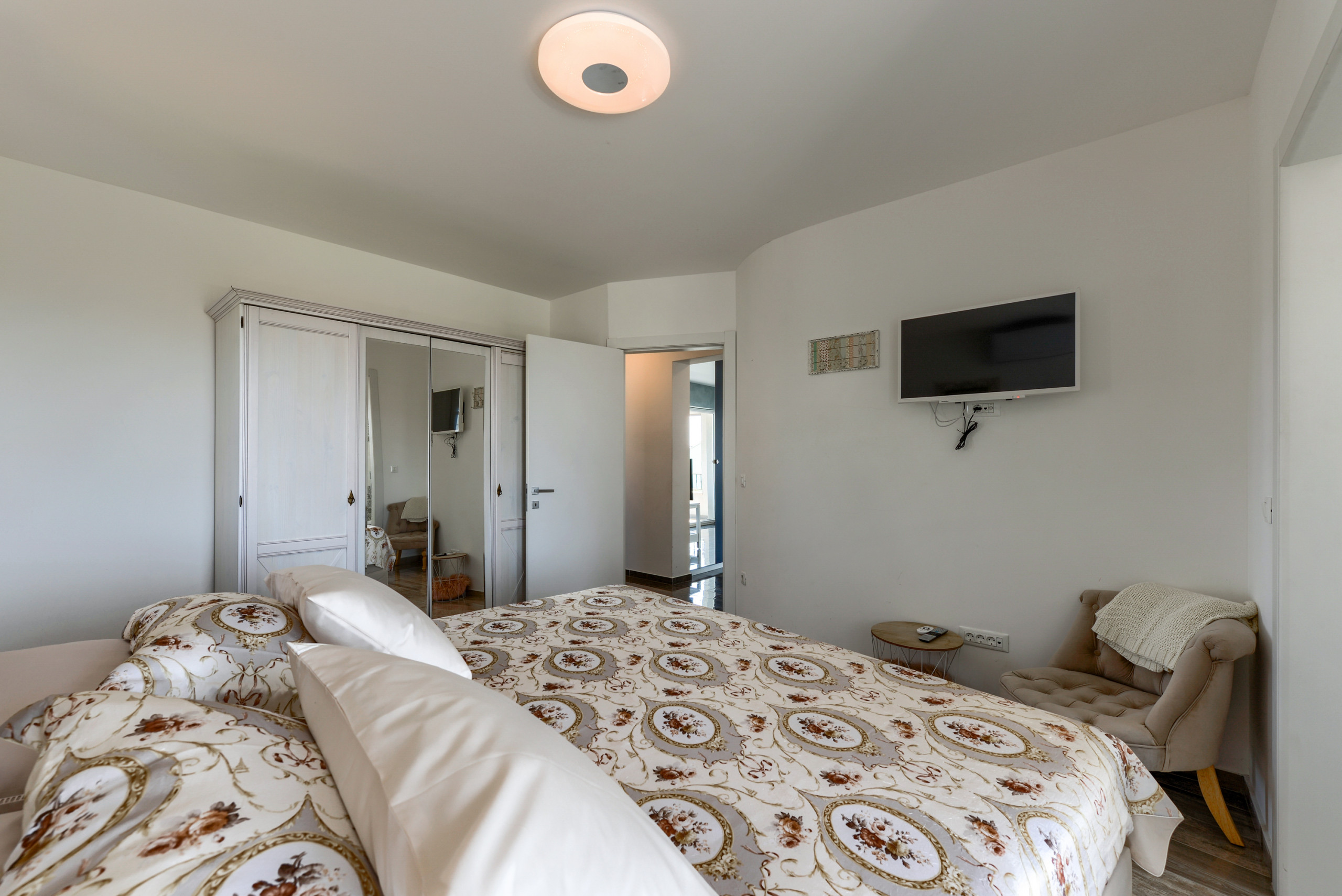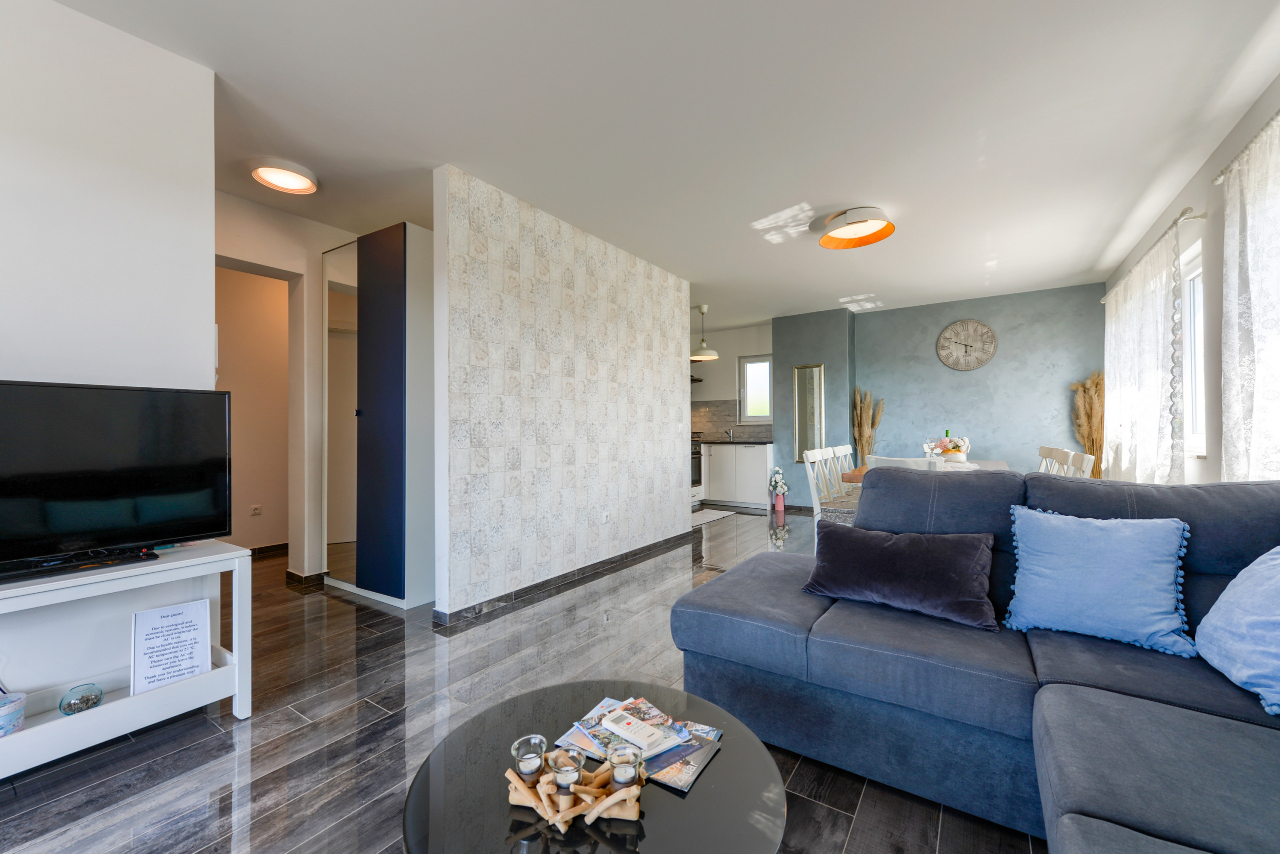 Auf der obersten Etage befindet sich eine schöne Dachterrasse mit Whirlpool, Meerblick, Loungebereich und Liegestühlen. uxuriöse Villa "Azuro" befindet sich in Sveti Filip i Jakov , nur 3 km von Biograd und 25 km südlich der historischen Stadt Zadar . Die neue und moderne Villa verfügt über insgesammt 6 Schlafzimmer sowie 6 Duschbäder, 3 offenen Wohnbereichen mit Esstischen, gut ausgestatteten Küchen sowie insgesammt 4 möblierten überdachten Balkonen mit herrlichem Meerblick.