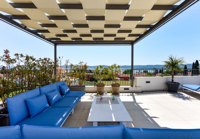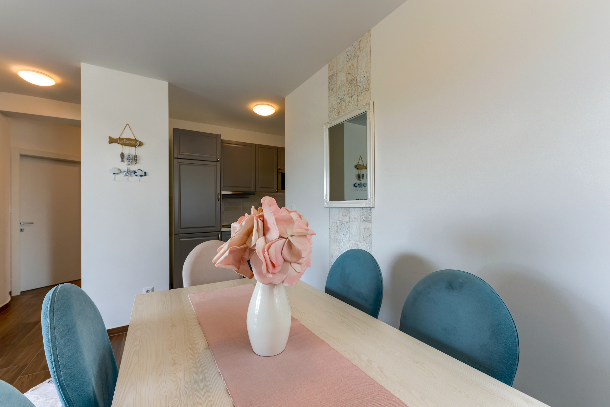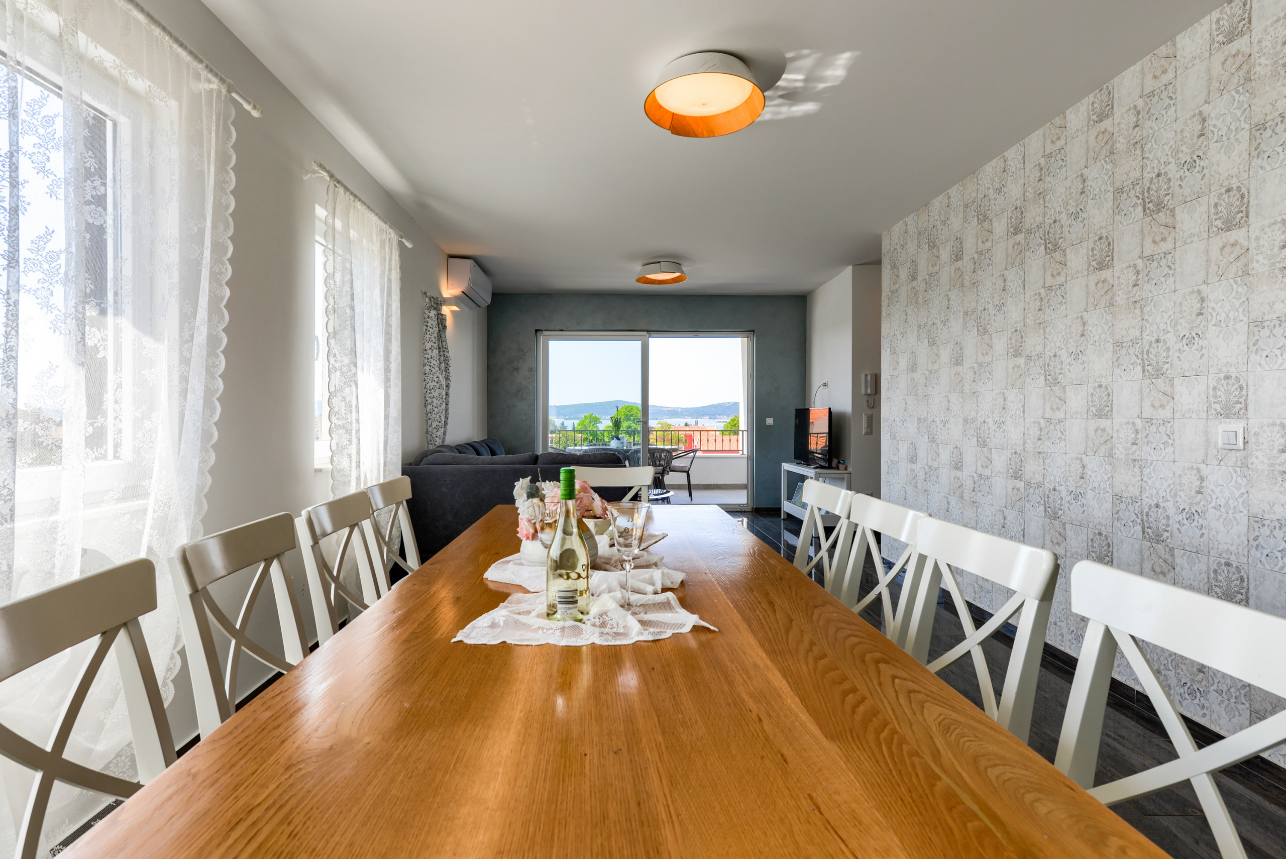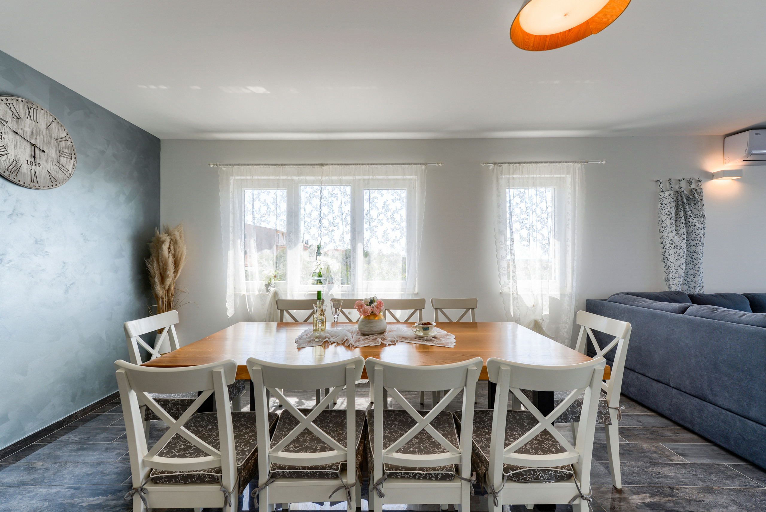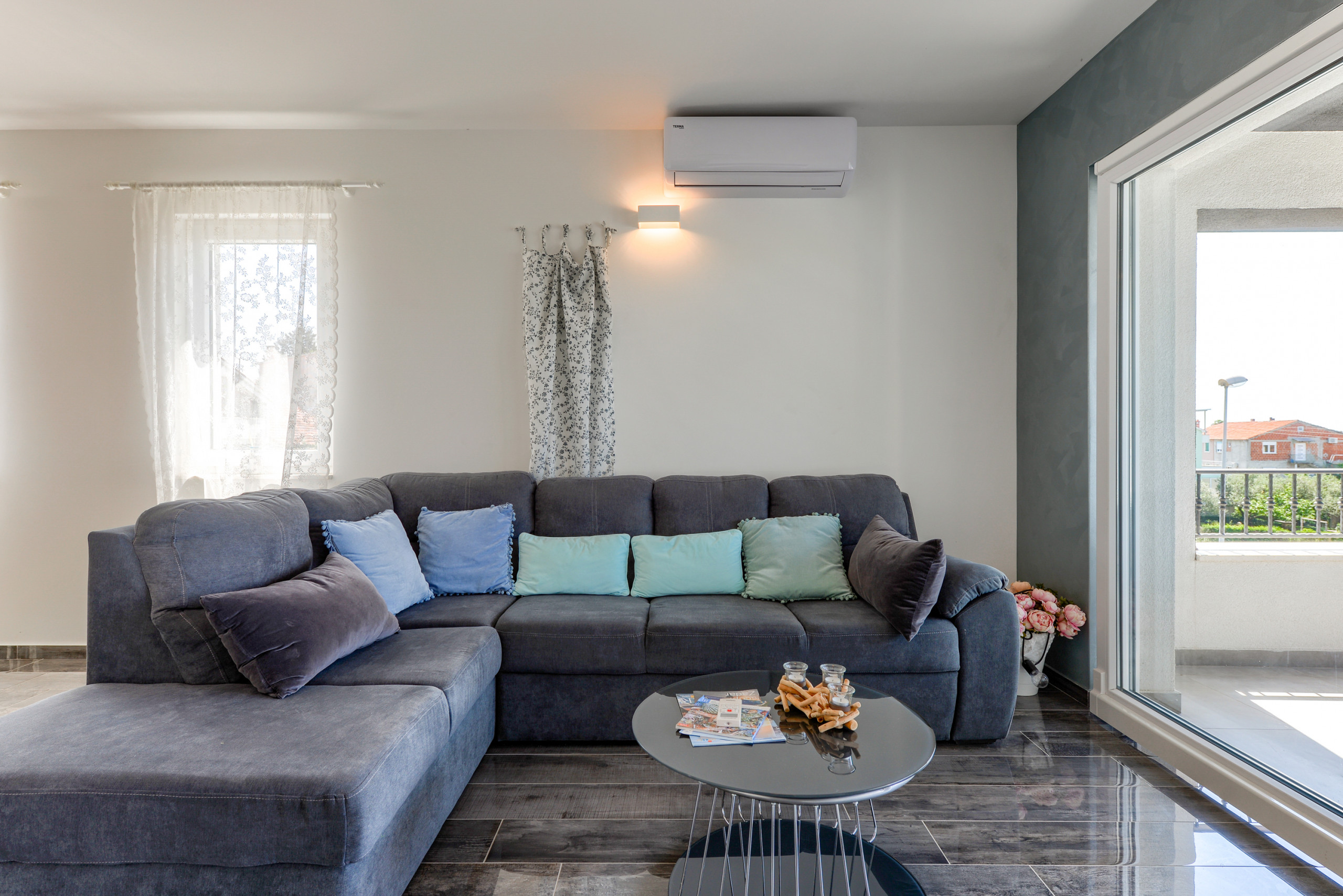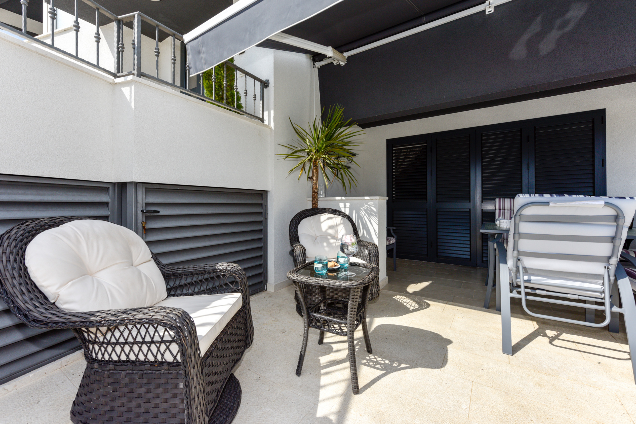 Auf der obersten Etage befindet sich eine schöne Dachterrasse mit Whirlpool, Meerblick, Loungebereich und Liegestühlen. uxuriöse Villa "Azuro" befindet sich in Sveti Filip i Jakov , nur 3 km von Biograd und 25 km südlich der historischen Stadt Zadar . Die neue und moderne Villa verfügt über insgesammt 6 Schlafzimmer sowie 6 Duschbäder, 3 offenen Wohnbereichen mit Esstischen, gut ausgestatteten Küchen sowie insgesammt 4 möblierten überdachten Balkonen mit herrlichem Meerblick.