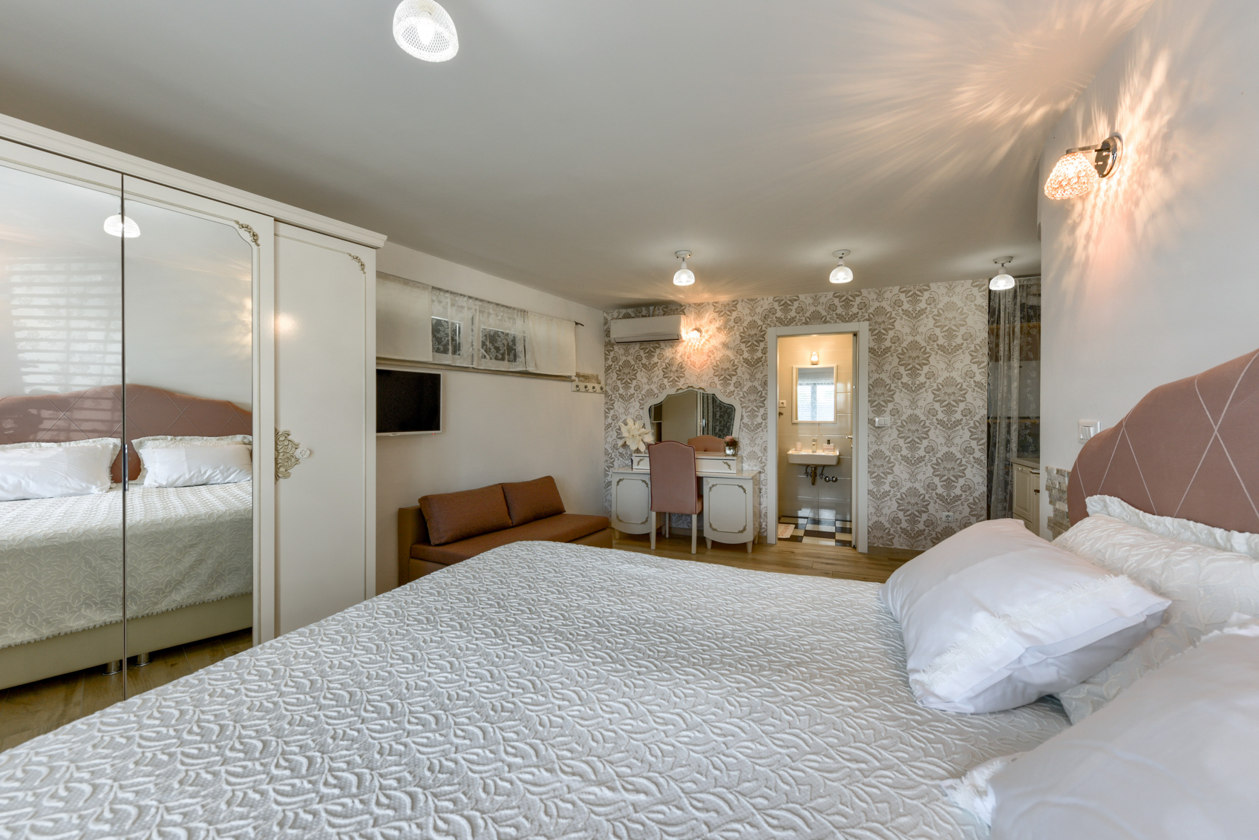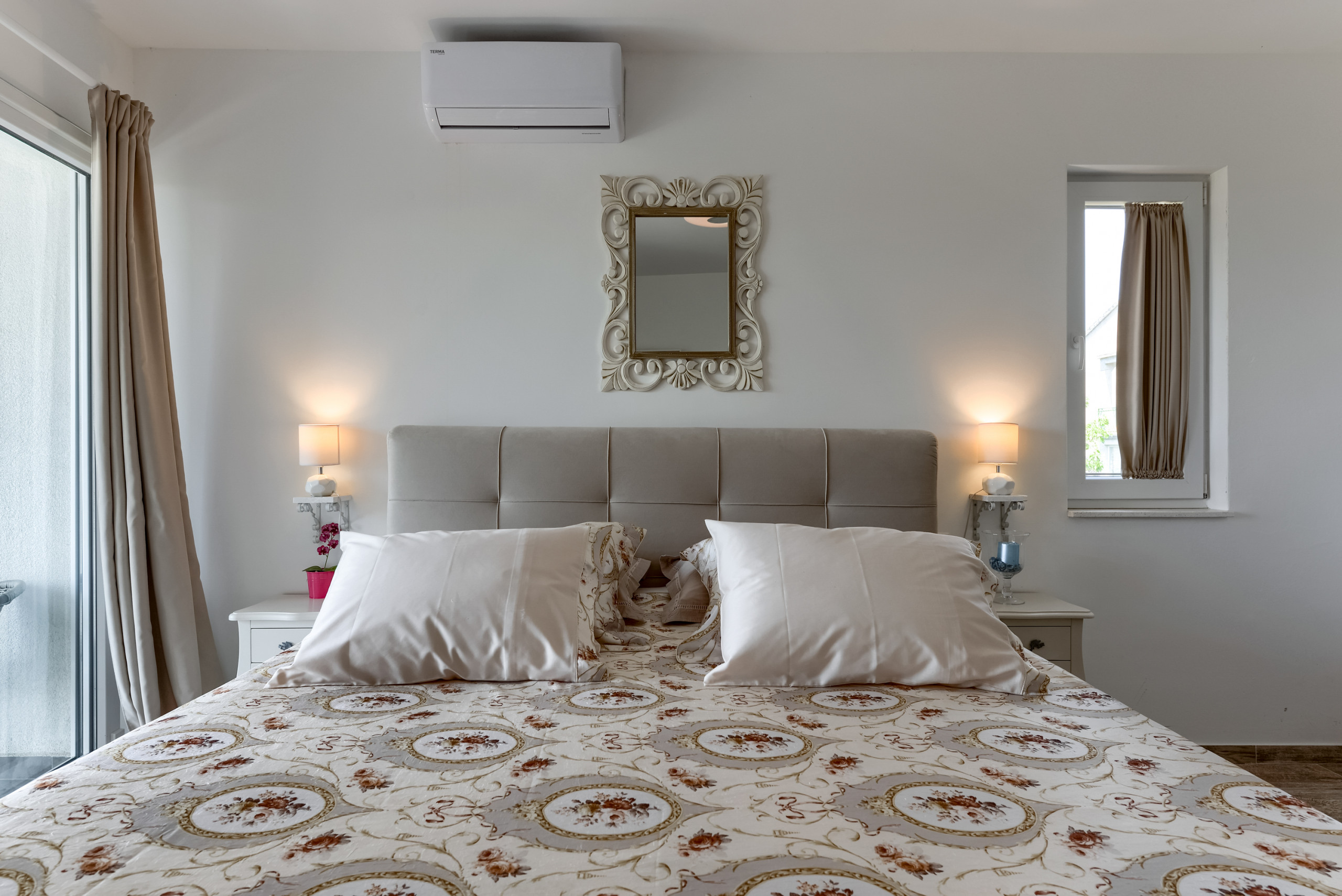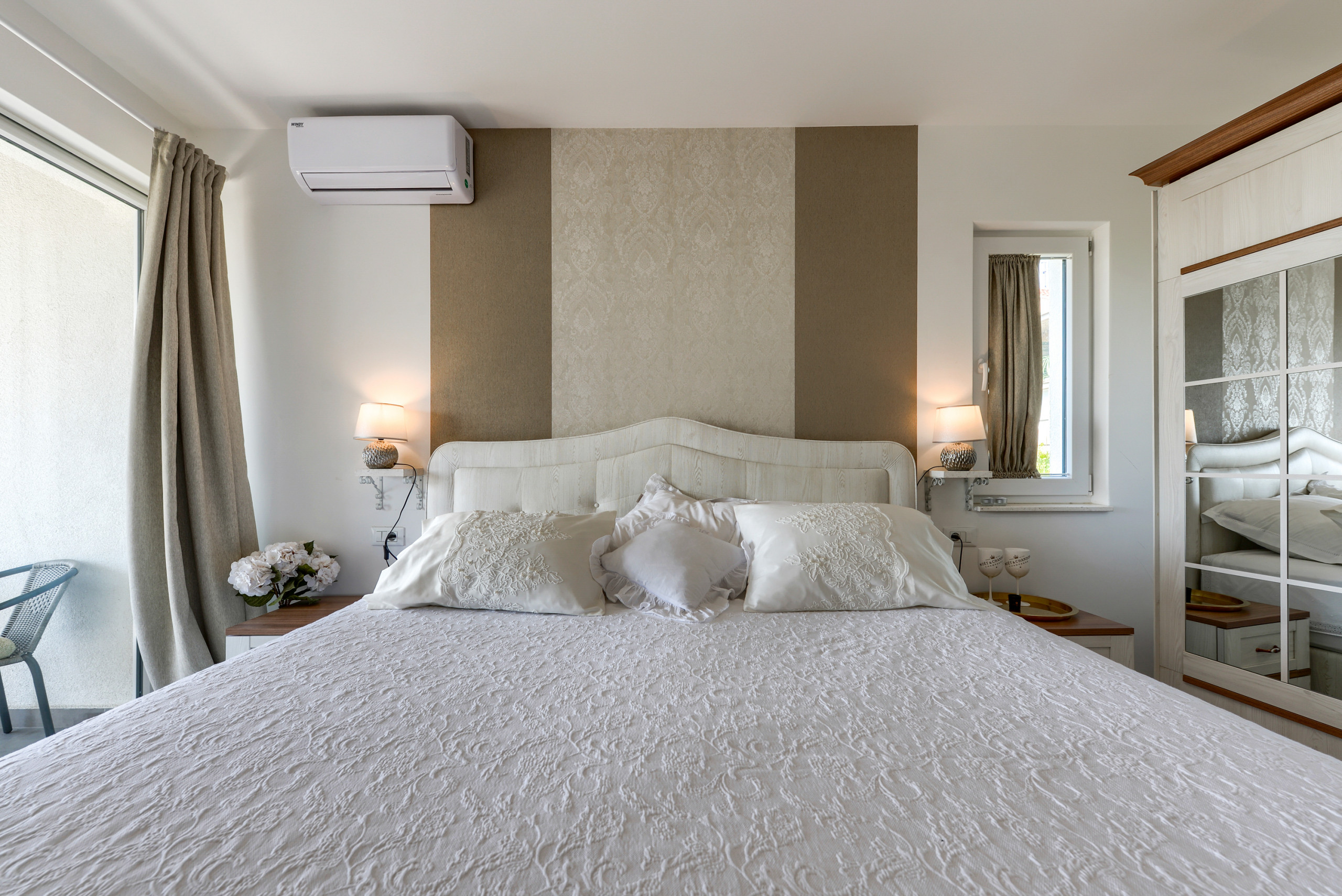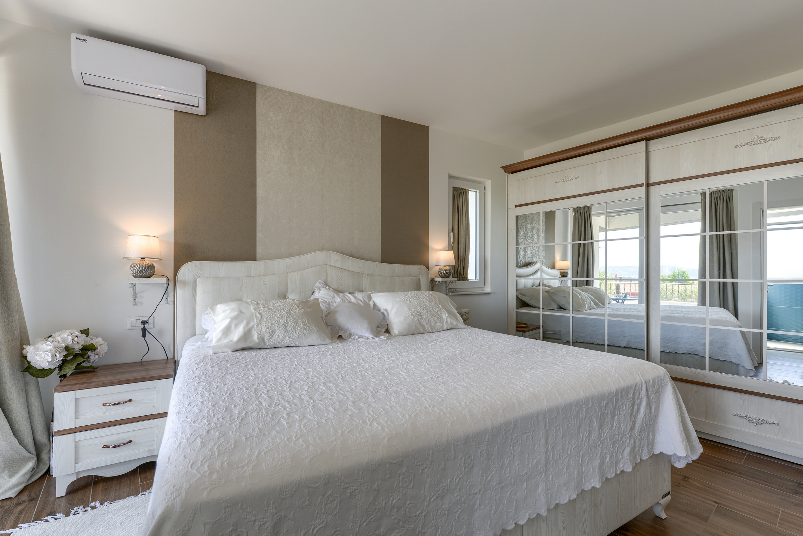 Alle Schlafzimmer sind mit Klimaanlage, Sat Tv ausgestattet und ist bestens für bis zu maximal 12 Personen geeignet. Für sich sind 2 grössere eigenständige Ferienwohnungen im 1 Stock und ein Studio Apartment im Erdgeschoss . Insgesammt für 12 Personen maximal geeignet. Auf der Dachterrasse finden Sie einem Whirlpool aus dem mann den Meeresblick geniessen kann,der ihren Aufenthalt zusätzlich aufwertet.