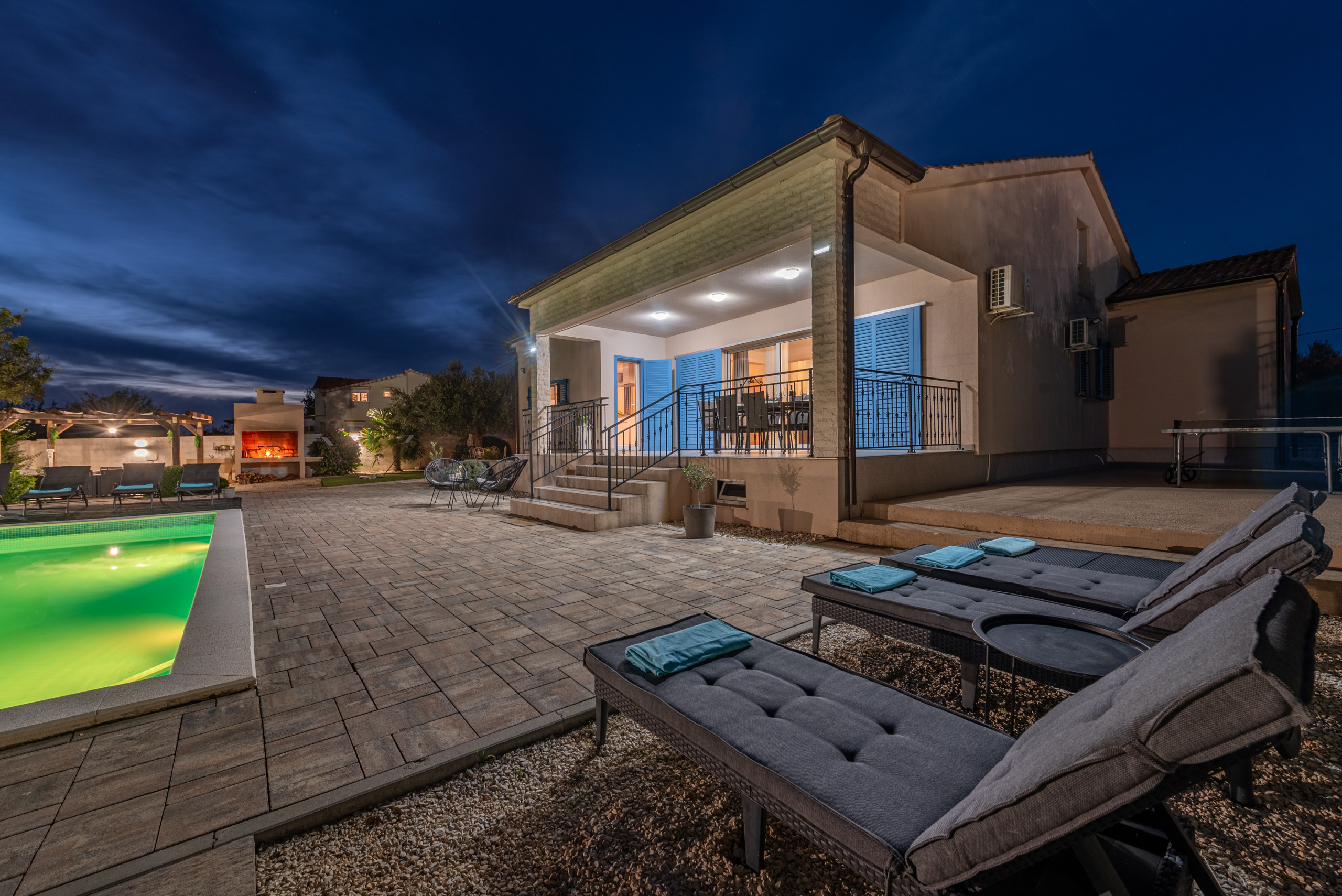 Die Villa Katarina befindet sich im ruhigen Ort Tinj in der Nähe von Benkovac, umgeben von viel Grün und absoluter Stille, und ist die ideale Wahl für einen erholsamen Urlaub fernab von Menschenmengen und Alltagsstress. Die Villa bietet Platz für bis zu 10 Gäste und vereint Komfort, Privatsphäre und modernes Design.