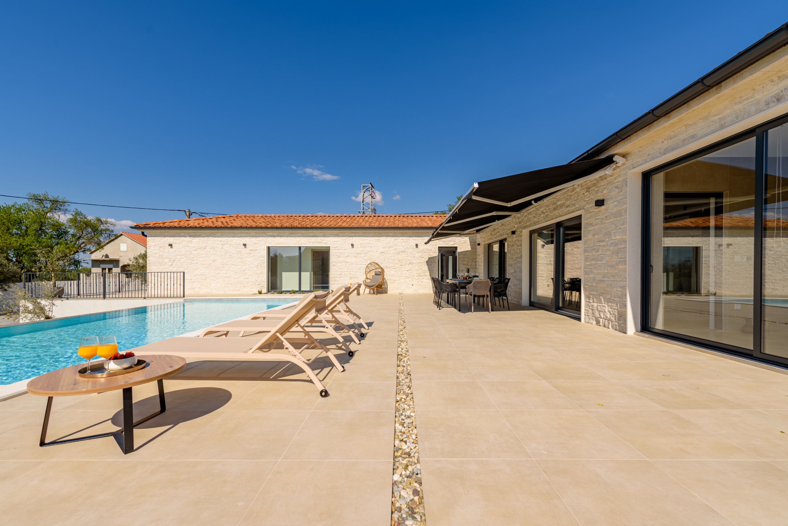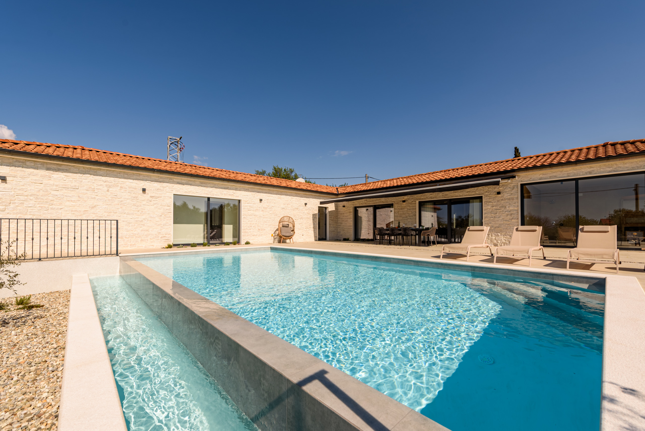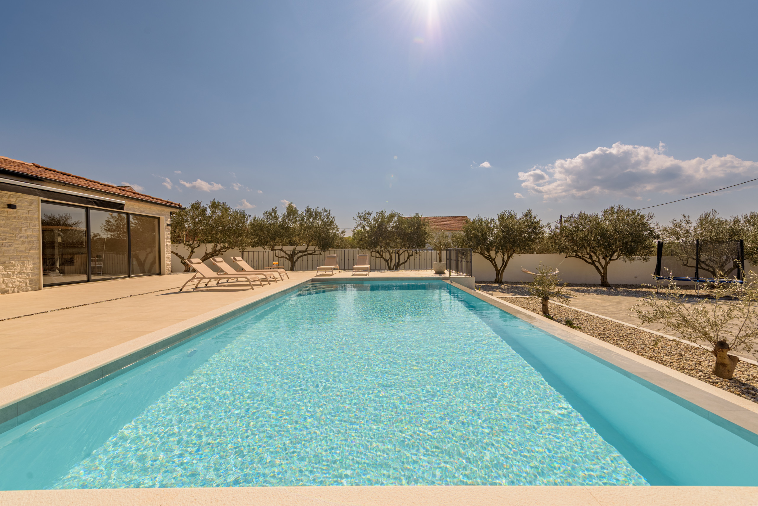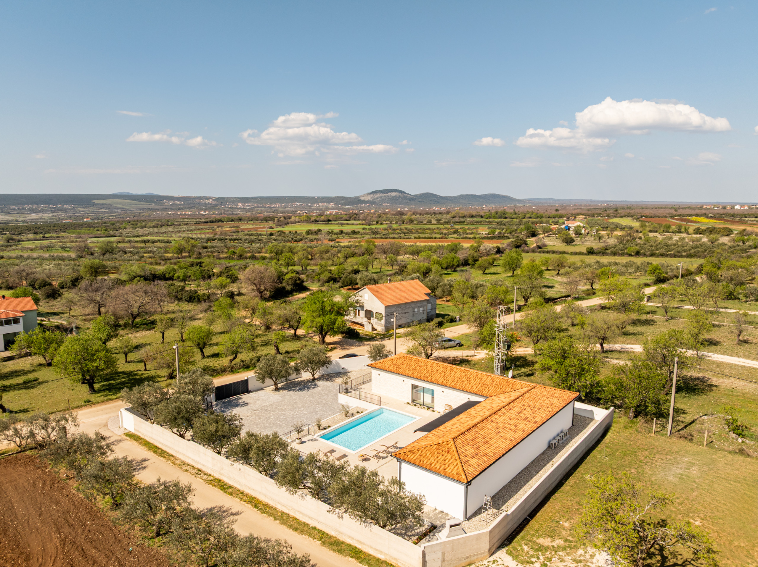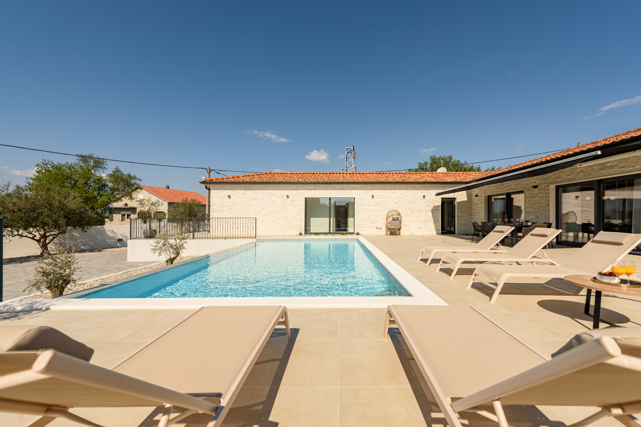 Casa Kamber befindet sich im ruhigen Dorf Tinj, nur eine kurze Fahrt von beliebten Urlaubszielen wie Biograd na Moru und Zadar entfernt. Diese moderne Villa mit privatem Swimmingpool und großzügiger Terrasse ist die perfekte Wahl für Gäste, die Komfort, Privatsphäre und einen erholsamen Urlaub inmitten der Natur suchen. Sie eignet sich ideal für Familien, Freundesgruppen oder Paare und bietet Platz für bis zu 8 Personen.