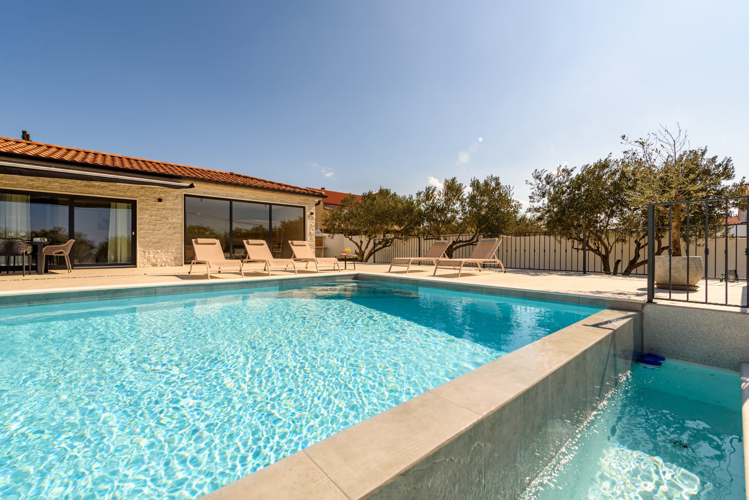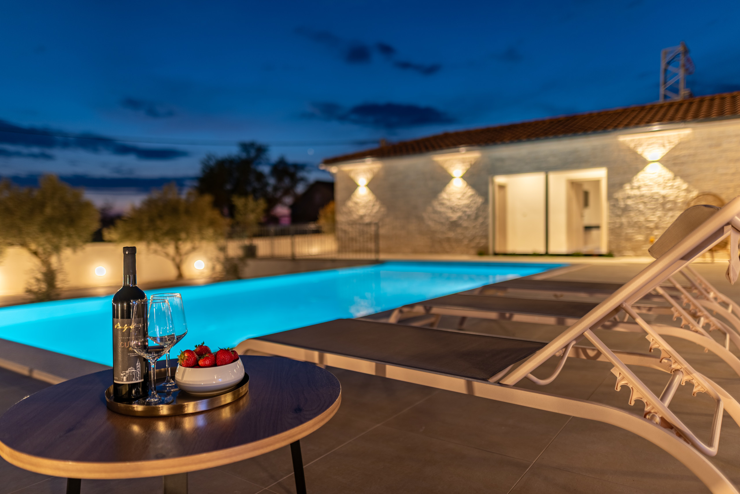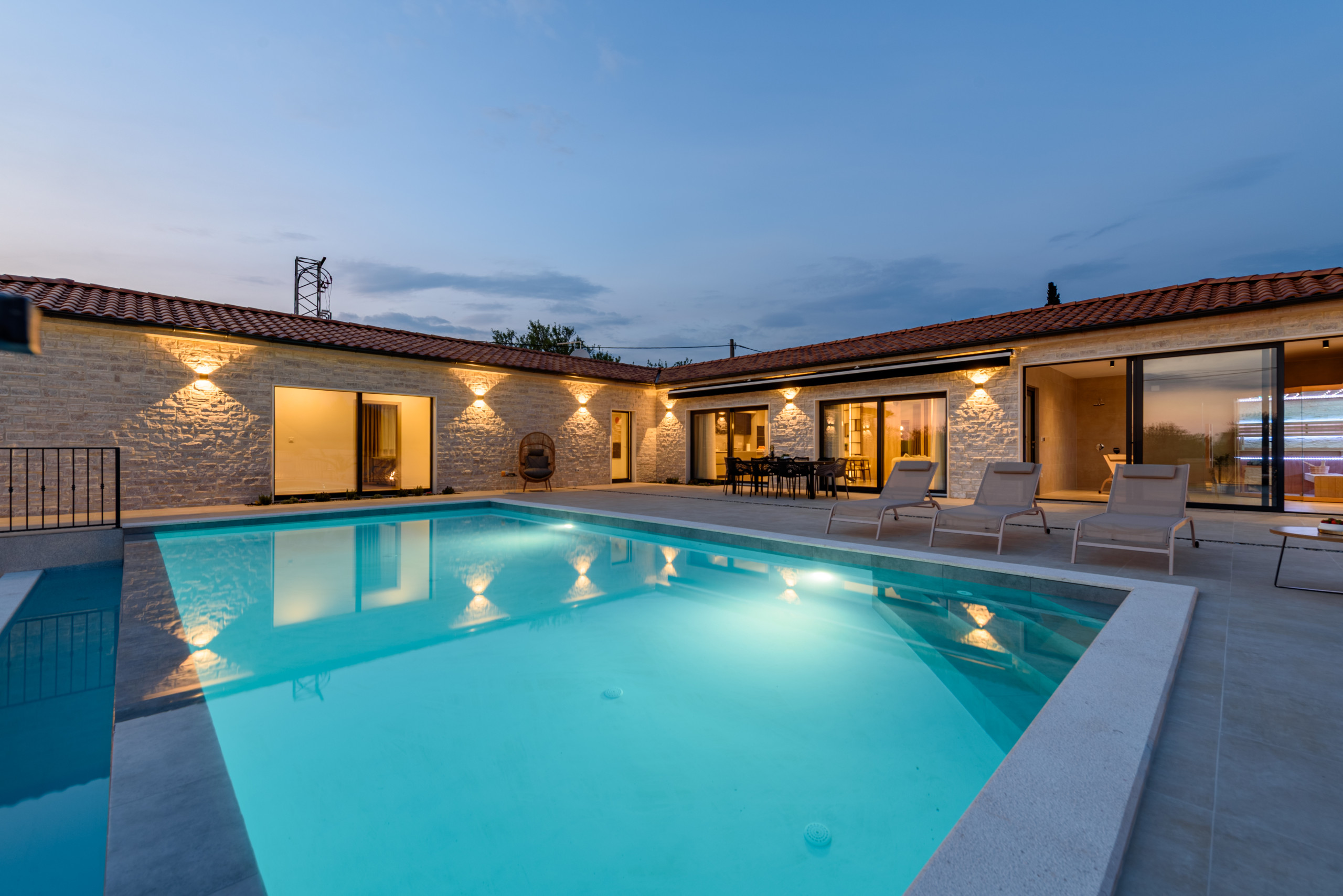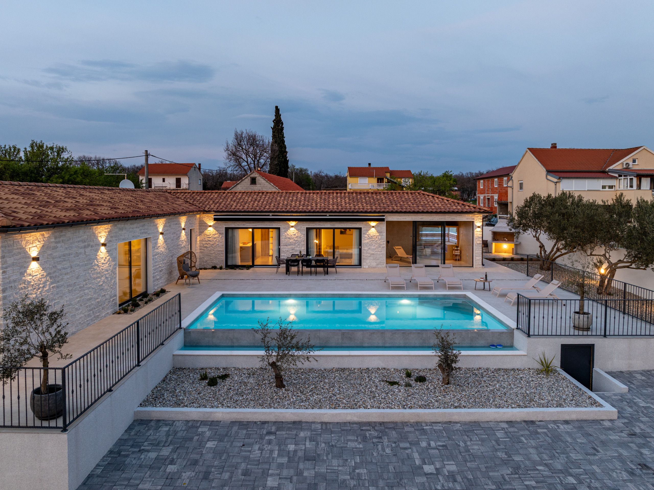 Casa Kamber befindet sich im ruhigen Dorf Tinj, nur eine kurze Fahrt von beliebten Urlaubszielen wie Biograd na Moru und Zadar entfernt. Diese moderne Villa mit privatem Swimmingpool und großzügiger Terrasse ist die perfekte Wahl für Gäste, die Komfort, Privatsphäre und einen erholsamen Urlaub inmitten der Natur suchen. Sie eignet sich ideal für Familien, Freundesgruppen oder Paare und bietet Platz für bis zu 8 Personen.
