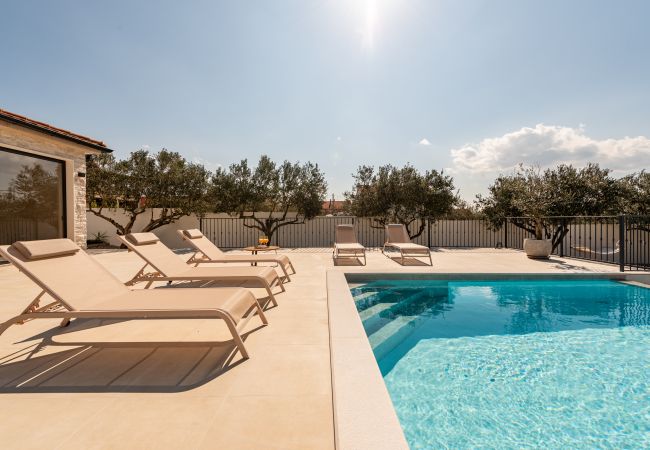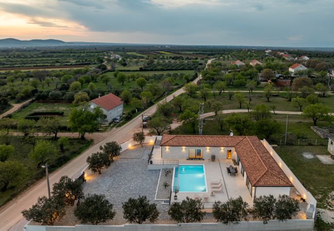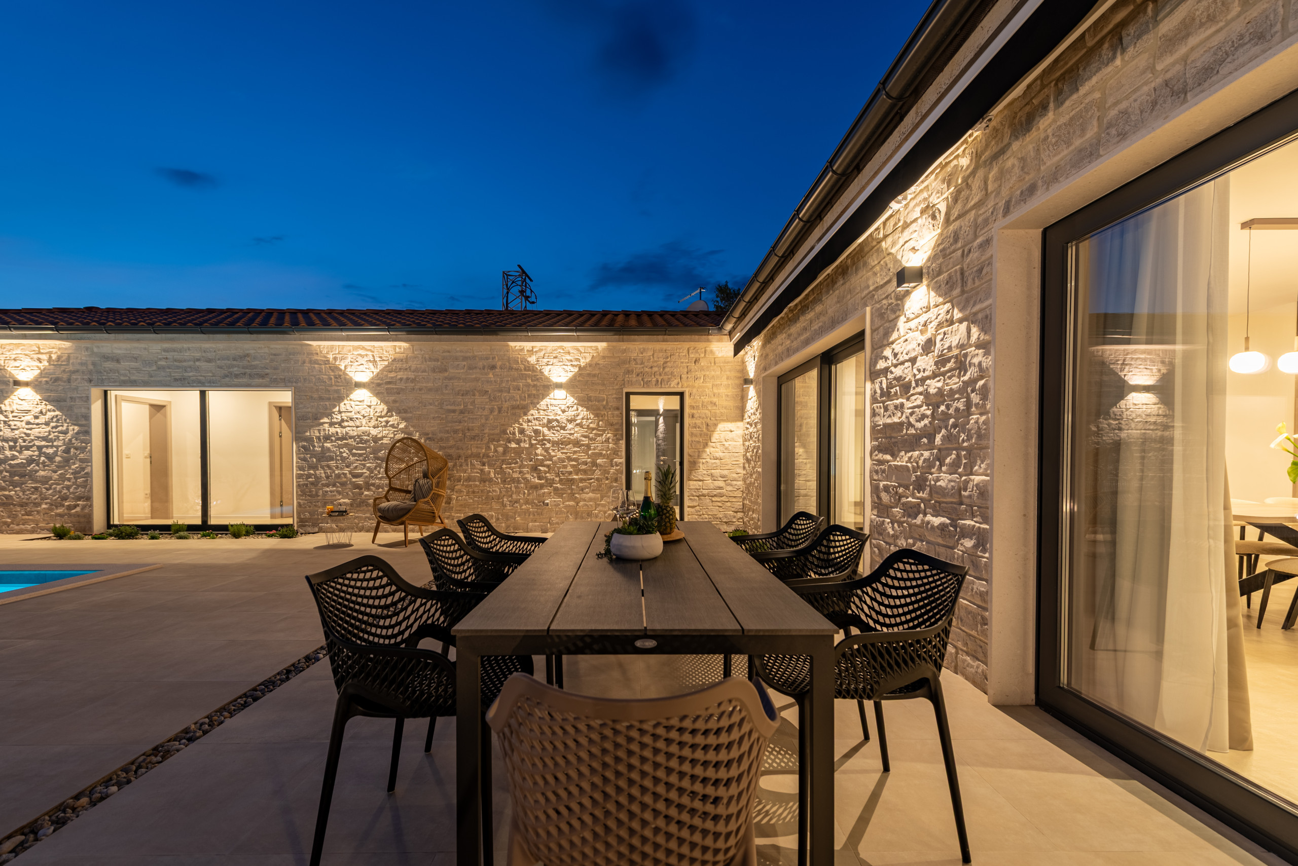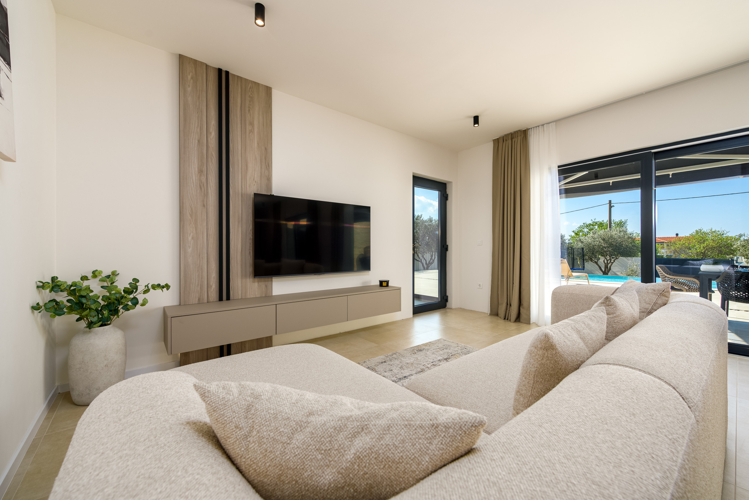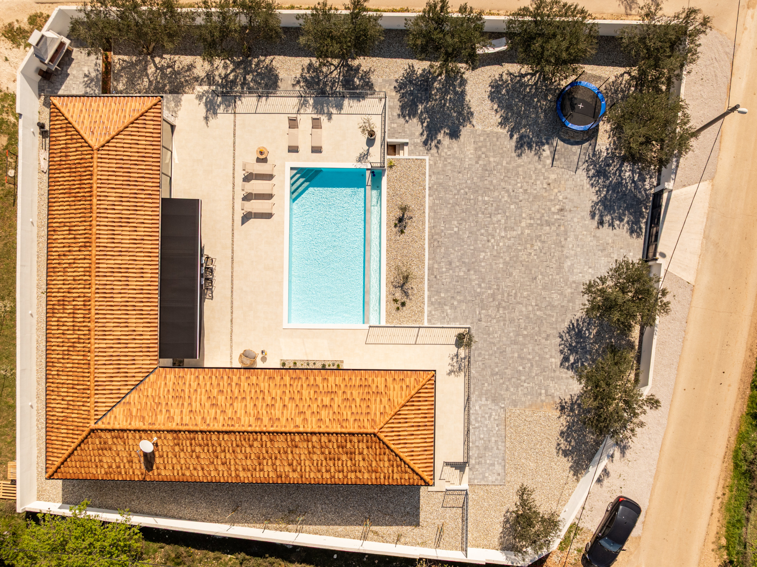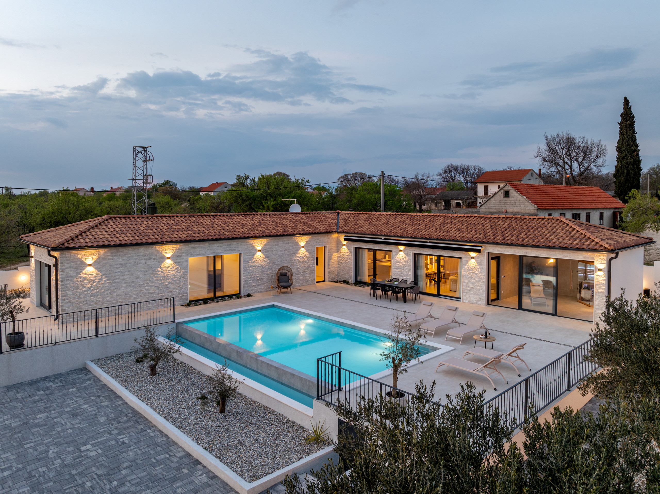 Casa Kamber befindet sich im ruhigen Dorf Tinj, nur eine kurze Fahrt von beliebten Urlaubszielen wie Biograd na Moru und Zadar entfernt. Diese moderne Villa mit privatem Swimmingpool und großzügiger Terrasse ist die perfekte Wahl für Gäste, die Komfort, Privatsphäre und einen erholsamen Urlaub inmitten der Natur suchen. Sie eignet sich ideal für Familien, Freundesgruppen oder Paare und bietet Platz für bis zu 8 Personen.