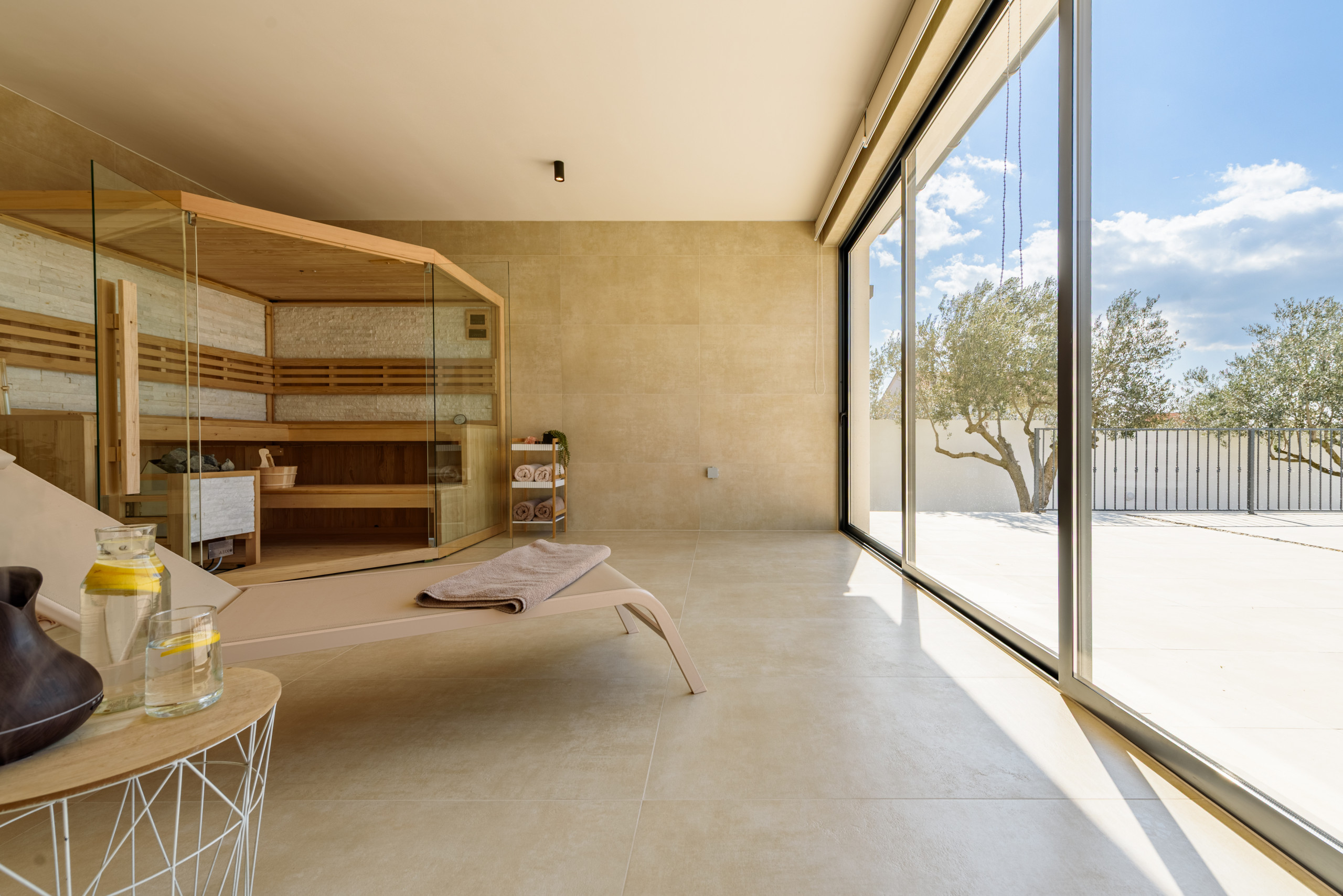 Den Gästen steht zudem eine Sauna mit zusätzlicher Dusche zur Verfügung. Die Villa ist komplett klimatisiert, jedes Zimmer verfügt über eine eigene Klimaanlage und einen Fernseher, und Mückengitter sorgen für zusätzlichen Komfort an warmen Sommerabenden.