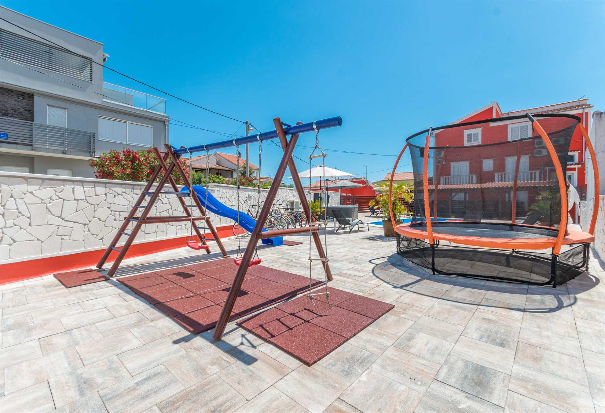 Die Villa Ancora bietet außerdem zahlreiche Unterhaltungsmöglichkeiten für alle Generationen: Den Gästen stehen der bereits erwähnte Billardtisch, Darts und ein Trampolin zur Verfügung, während sich die jüngsten Gäste auf dem Kinderspielplatz austoben können. Aktivurlauber können die Umgebung mit dem Fahrrad erkunden, da Turanj und seine Umgebung über gut ausgebaute Radwege entlang der Küste verfügen. Hochwertige Fahrräder können gegen Aufpreis gemietet werden (Barzahlung nach Vereinbarung mit dem Eigentümer).