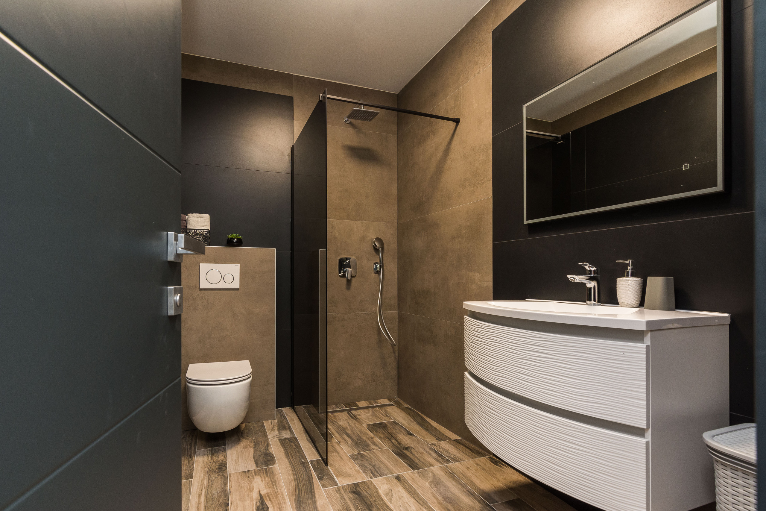 Im Erdgeschoss befinden sich ein geräumiges, offenes Wohnzimmer, ein Esszimmer und eine voll ausgestattete Küche sowie ein Fitnessraum. Der Fitnessraum verfügt über ein Laufband, ein stationäres Fahrrad und Gewichte. Ein Gäste-WC befindet sich ebenfalls im Erdgeschoss.