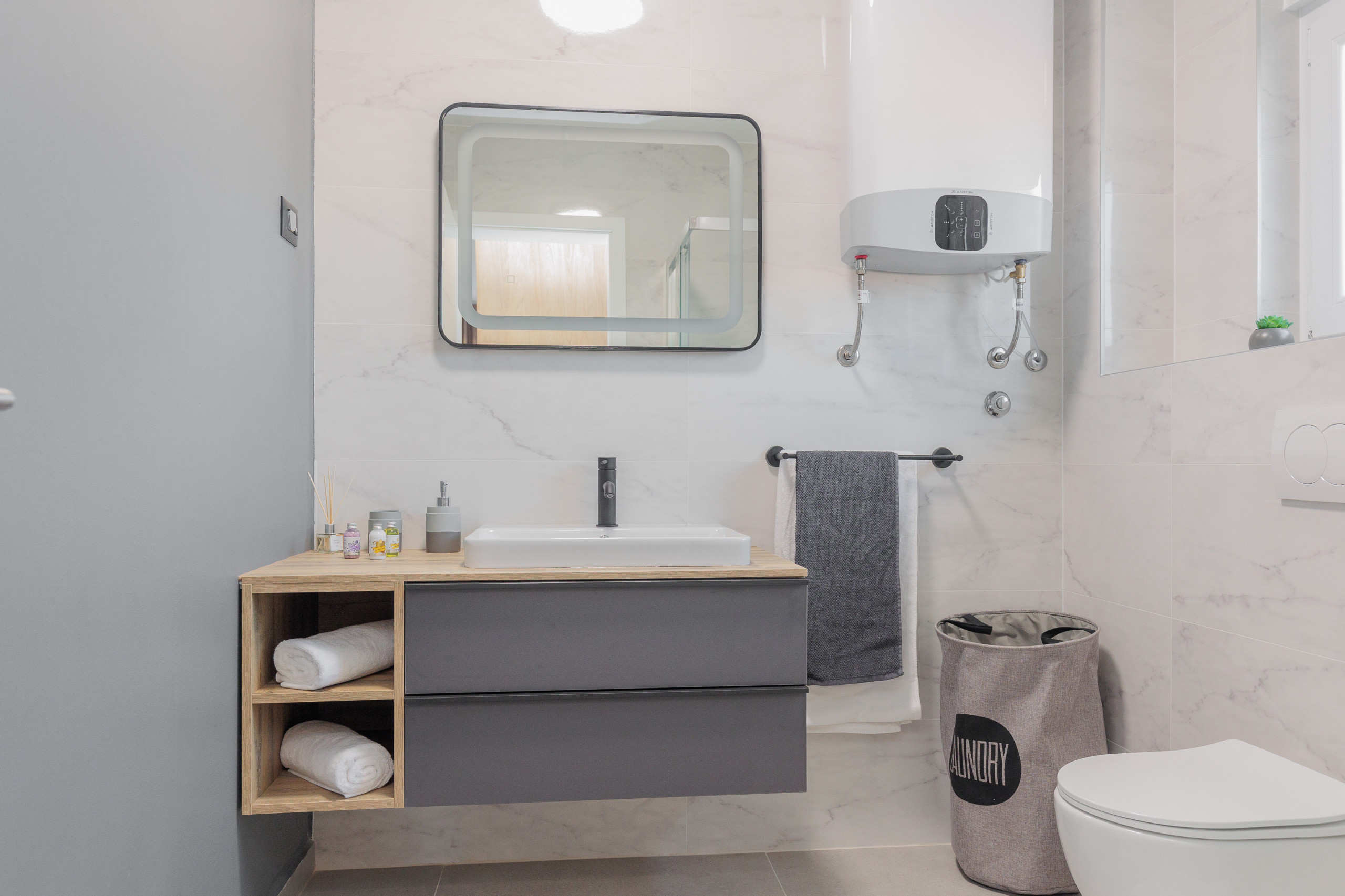 Das Erdgeschoss verfügt über eine geräumige, voll ausgestattete Küche mit allen notwendigen Geräten, einschließlich Geschirrspüler, Ofen, Mikrowelle und Kaffeemaschine. Die Küche ist mit dem Wohnzimmer verbunden, das einen großen Fernseher hat, und der Raum ist perfekt für Entspannung und gemeinsame Momente gestaltet. Die Villa verfügt über 4 Schlafzimmer, von denen 3 ein eigenes Badezimmer und Klimaanlage haben, was Privatsphäre und Komfort für alle Gäste sicherstellt. Die Villa bietet kostenloses WLAN, privaten Parkplatz und eine Terrasse mit Bergblick, die die perfekte Umgebung zum Entspannen und Genießen der Privatsphäre schafft. Der Außenbereich umfasst einen beheizten Pool, Sonnenliegen, eine Außendusche und einen Grill, perfekt für Mahlzeiten im Freien.