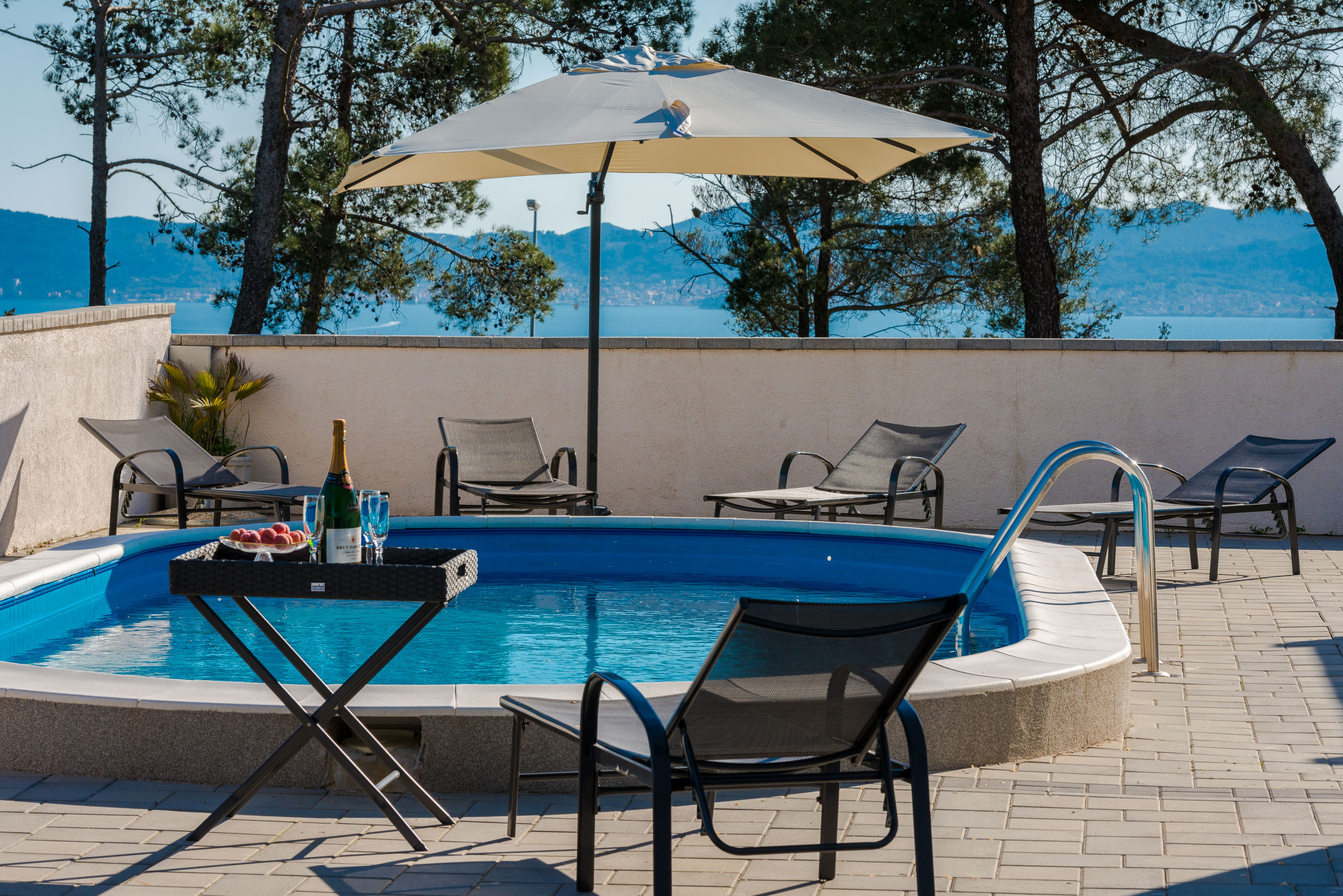 Das Äußere der Villa ist als privates Ruheoase für Entspannung und Erholung gestaltet, mit einem Infinity-Pool von 10 x 5 m mit Salzwasser, Heizung und Gegenstromanlage, einer Outdoor-Dusche und einer geräumigen Terrasse für Outdoor-Dining und Zusammenkünfte. Ein multifunktionaler Sportplatz ermöglicht Tennis oder Basketball, während der Gasgrill den mediterranen Lebensstil noch weiter unterstreicht. Das gesamte Grundstück umfasst 2.500 m² und bietet unglaubliche Panoramablicke auf die Stadt Zadar und die Adria von fast jedem Raum aus, wodurch Villa Odeona die ideale Kombination aus Luxus, Privatsphäre und ultimativem Genuss darstellt.