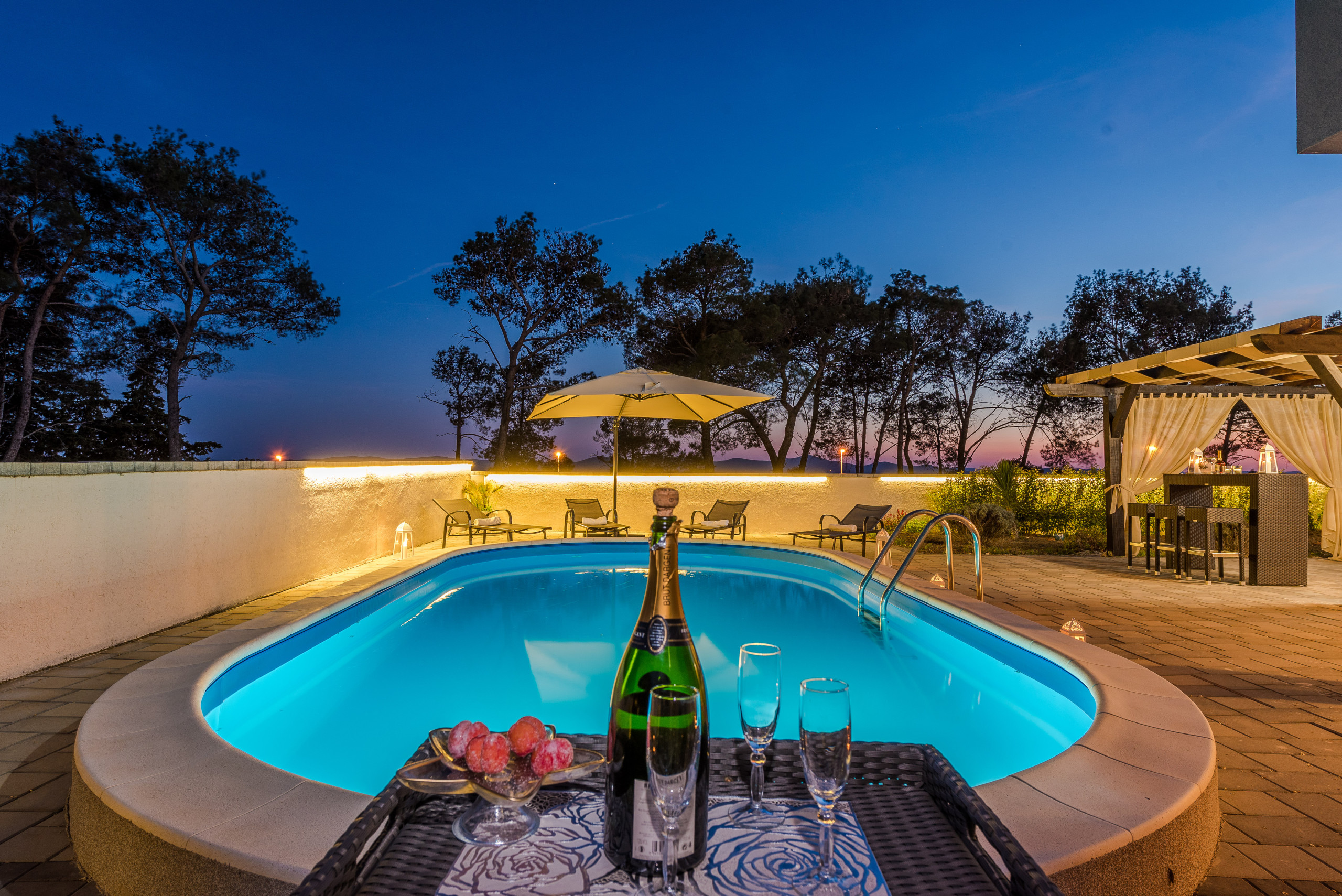 Villa Odeona in Zadar repräsentiert den Gipfel des Luxus, der ausgeklügelten Gestaltung und des Komforts, mit einer Wohnfläche von 500 m² und einem sorgfältig eingerichteten Interieur mit hochwertigen modernen Designermöbeln. Das Erdgeschoss bietet eine geräumige, vollständig ausgestattete Küche mit modernen Geräten, einen eleganten Essbereich für große Familien- oder Freundestreffen, ein Wohnzimmer mit TV und Premium-Soundsystem sowie einen Billardbereich, der perfekt für Unterhaltung und Entspannung ist. Es gibt auch eine separate Gäste-Toilette, die die Funktionalität des Raumes ergänzt.