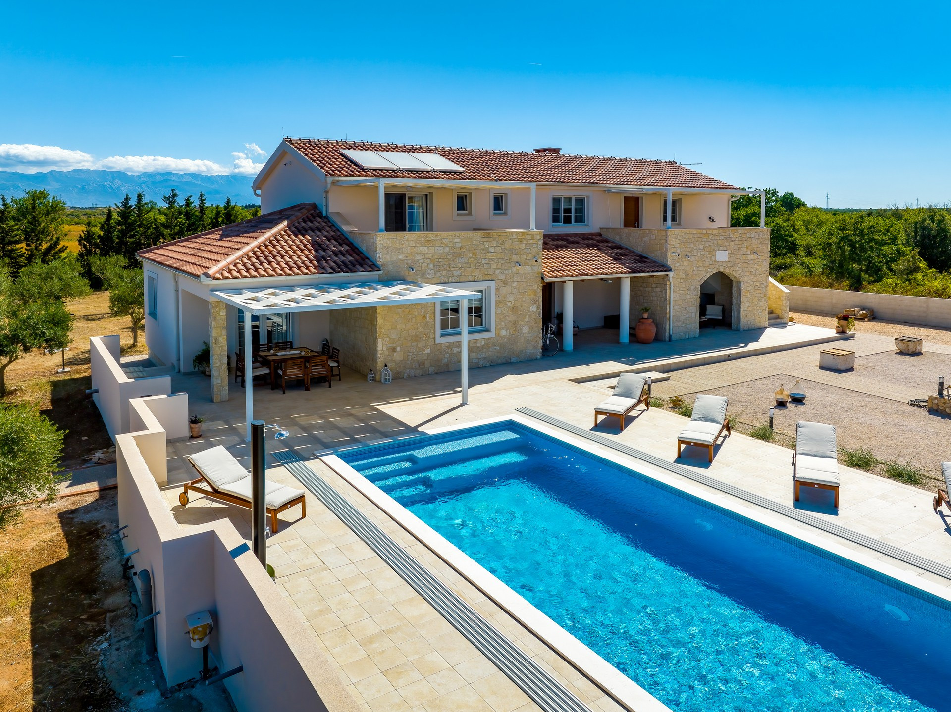 Dieses schöne Ferienhaus mit Swimmingpool befindet sich in Zaton nur wenige Kilometer von der sehenswerten Altstadt der dalmatinischen Stadt Zadar enfernt.
